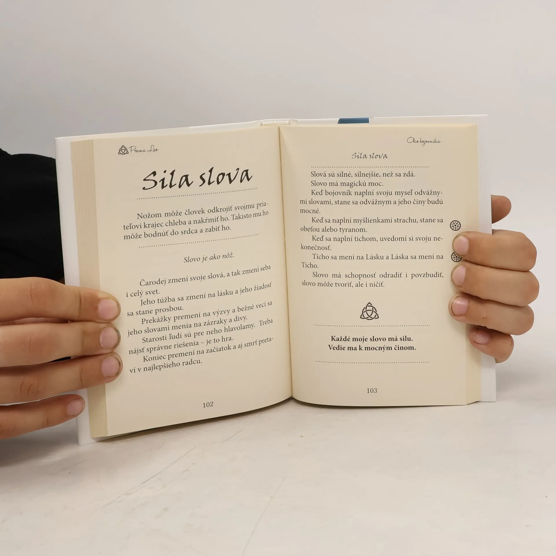 Kniha zachytáva toltécku predstavu bojovníka, staré učenie šamanov, ktoré sa v súčasnosti stáva čoraz populárnejším vďaka svojej jednoduchosti. Toto učenie nevytvára dogmy ani sväté pravdy, ale vyzýva každého, aby spochybňoval zaužívané názory a dôveroval sebe. Nebojte sa byť sami sebou! Ste si skutočne istí, že viete, čo je život? Oko bojovníka neobhajuje žiadnu zaručenú pravdu, ale ponúka iný pohľad na svet a inšpiráciu. Pri čítaní otvorte svoje srdce a vnímajte, čo vám hovorí vaše vnútro. Čítajte medzi riadkami a nespoliehajte sa na vonkajšie slová. Spoliehajte sa na vlastnú intuíciu a kráčajte vlastnou cestou. Nebuďte súčasťou stáda, ste originál! Každá strana predstavuje samostatnú myšlienku, a tak môže slúžiť ako nevyčerpateľný zdroj inšpirácie na ceste za sebapoznaním. Pravdu netreba hľadať v slovách, ale v sebe. Nech je Ticho vašim učiteľom a Oko bojovníka sprievodcom. Cesta za šťastím a slobodou je individuálna; kráčajte po ceste, ktorá má srdce. Buďte prítomní a bdelí. Objavte v sebe kompas a nestratíte sa. Človek má na výber: žiť ako obyčajný človek alebo sa rozhodnúť žiť ako bojovník. Iná voľba neexistuje.