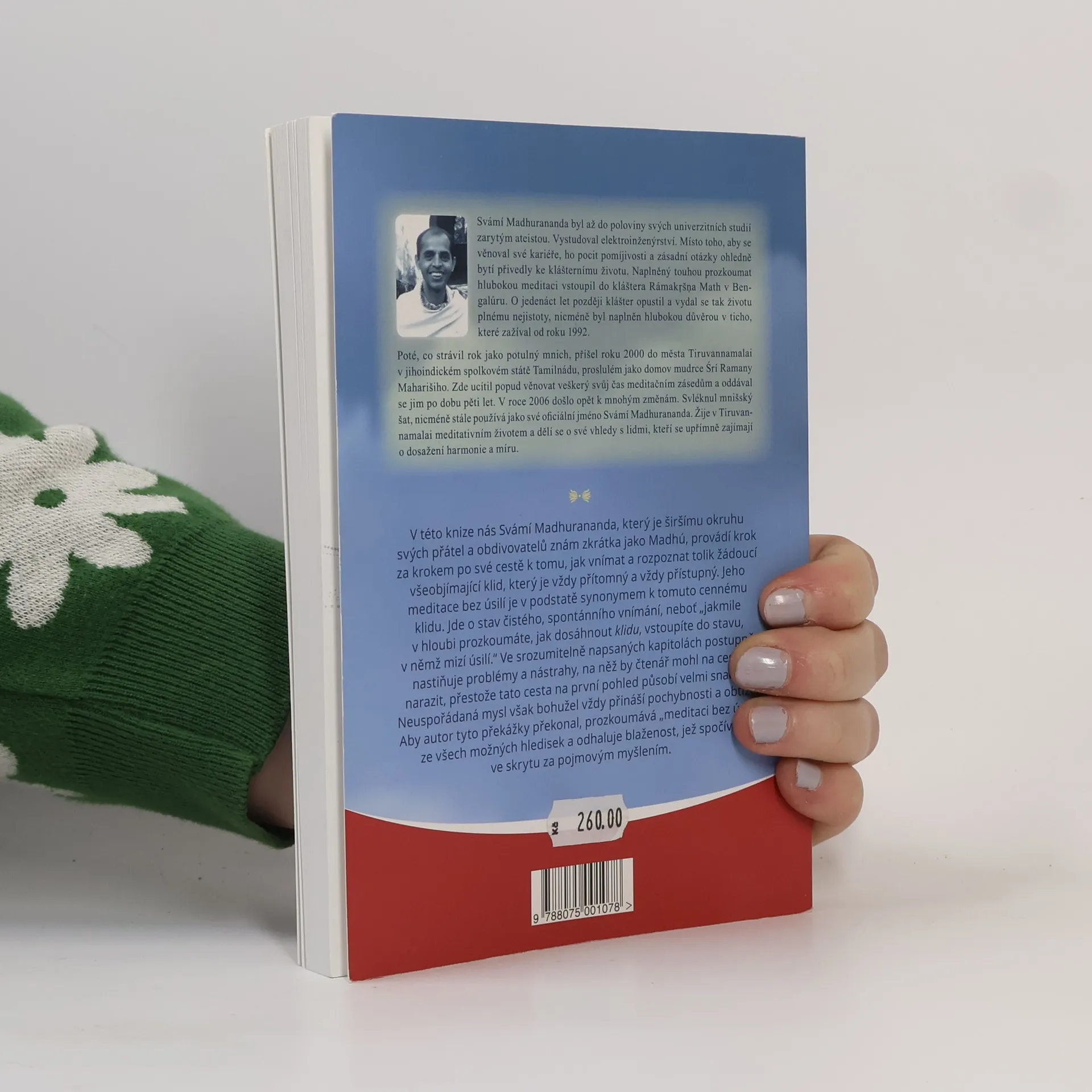 S lehkostí k míru a štěstí. V této knize nás Svámí Madhurananda, který je širšímu okruhu svých přátel a obdivovatelů znám zkrátka jako Madhú, provádí krok za krokem po své cestě k tomu, jak vnímat a rozpoznat tolik žádoucí všeobjímající klid, který je vždy přítomný a vždy přístupný. Jeho meditace bez úsilí je v podstatě synonymem k tomuto cennému klidu. Jde o stav čistého, spontánního vnímání, neboť „jakmile v hloubi prozkoumáte, jak dosáhnout klidu, vstoupíte do stavu, v němž mizí úsilí.“ Ve srozumitelně napsaných kapitolách postupně nastiňuje problémy a nástrahy, na něž by čtenář mohl na cestě narazit, přestože tato cesta na první pohled působí velmi snadně. Neuspořádaná mysl však bohužel vždy přináší pochybnosti a obtíže. Aby autor tyto překážky překonal, prozkoumává „meditaci bez úsilí“ ze všech možných hledisek a odhaluje blaženost, jež spočívá ve skrytu za pojmovým myšlením.