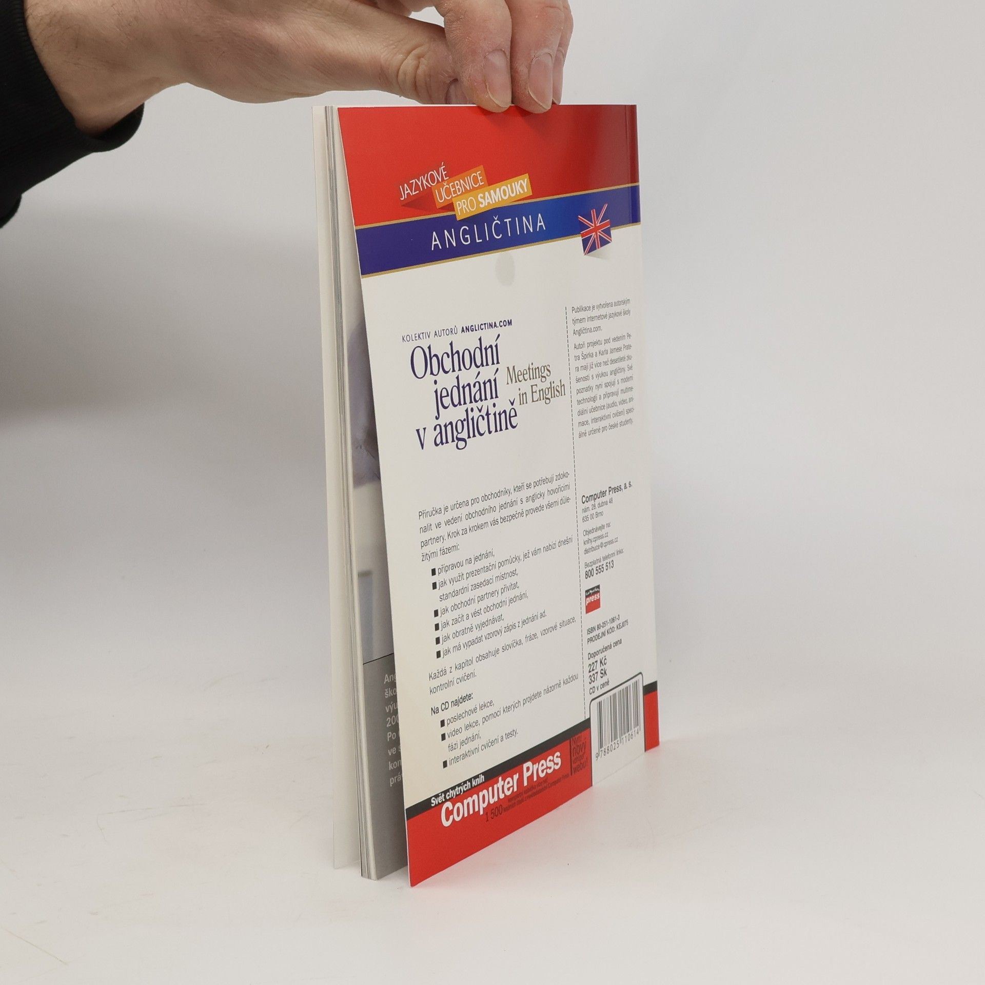 Příručka je určena pro obchodníky, kteří se potřebují zdokonalit ve vedení obchodního jednání s anglicky hovořícími partnery. Krok za krokem vás bezpečně provede všemi důležitými fázemi: - přípravou na jednání, - jak využít prezentační pomůcky, jež vám nabízí dnešní standardní zasedací místnost, - jak obchodní partnery přivítat, - jak začít a vést obchodní jednání, - jak obratně vyjednávat, - jak má vypadat vzorový zápis z jednání ad. Každá z kapitol obsahuje slovíčka, fráze, vzorové situace, kontrolní cvičení. - poslechové lekce, - video lekce, pomocí kterých projdete názorně každou fázi jednání, - interaktivní cvičení a testy.