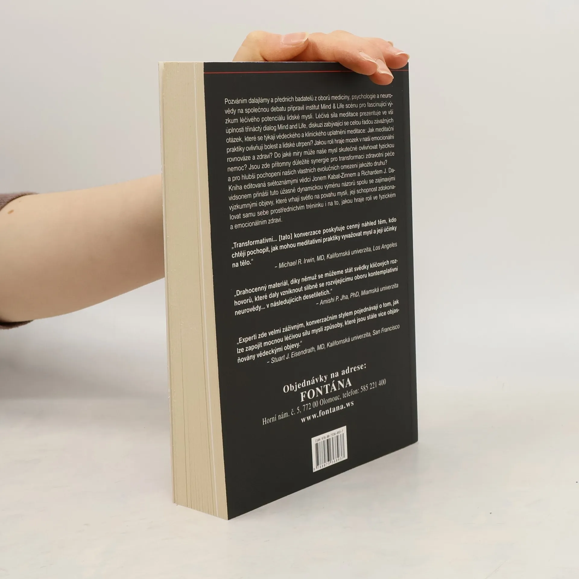 Pozváním dalajlámy a předních badatelů z oborů medicíny, psychologie a neurovědy na společnou debatu připravil institut Mind and Life scénu pro fascinující výzkum léčivého potenciílu lidské mysli. Léčivá síla meditace prezentuje ve vší úplnosti třináctý dialog Mind and Life, diskuzi zabývající se celou řadou závažných otázek, které se týkají vědeckého a klinického uplatnení meditace: Jak meditační praktiky ovlivňují bolest a lidské utrpení? Jakou roli hraje mozek v naší emocionální rovnováze a zdraví? Do jaké míry může naše mysl skutečne ovlivňovat fyzickou nemoc? Kniha editovaná světoznámými vědci Jonem Kabat-Zinnem a Richardem j. Davidsonem přináší tuto úžasně dynamickou výměnu názorů spolu se zajímavými výzkumnými objevy, které vrhají světlo na povahu mysli, její schopnost zdokonalovat samu sebe prostřednictvím tréninku i na to, jakou hraje roli ve fyzickém a emocionálním zdraví.