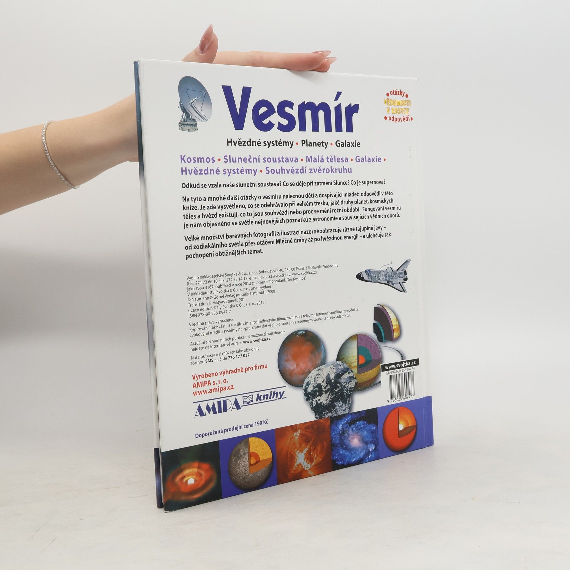 Encyklopedie pro děti zaměřená na Vesmír, zabývající se mnoha tématy, např. planety, galaxie, hvězdné systémy, apod. Kniha je doplněna mnoha barevnými fotografiemi a ilustracemi pro větší názornost.
