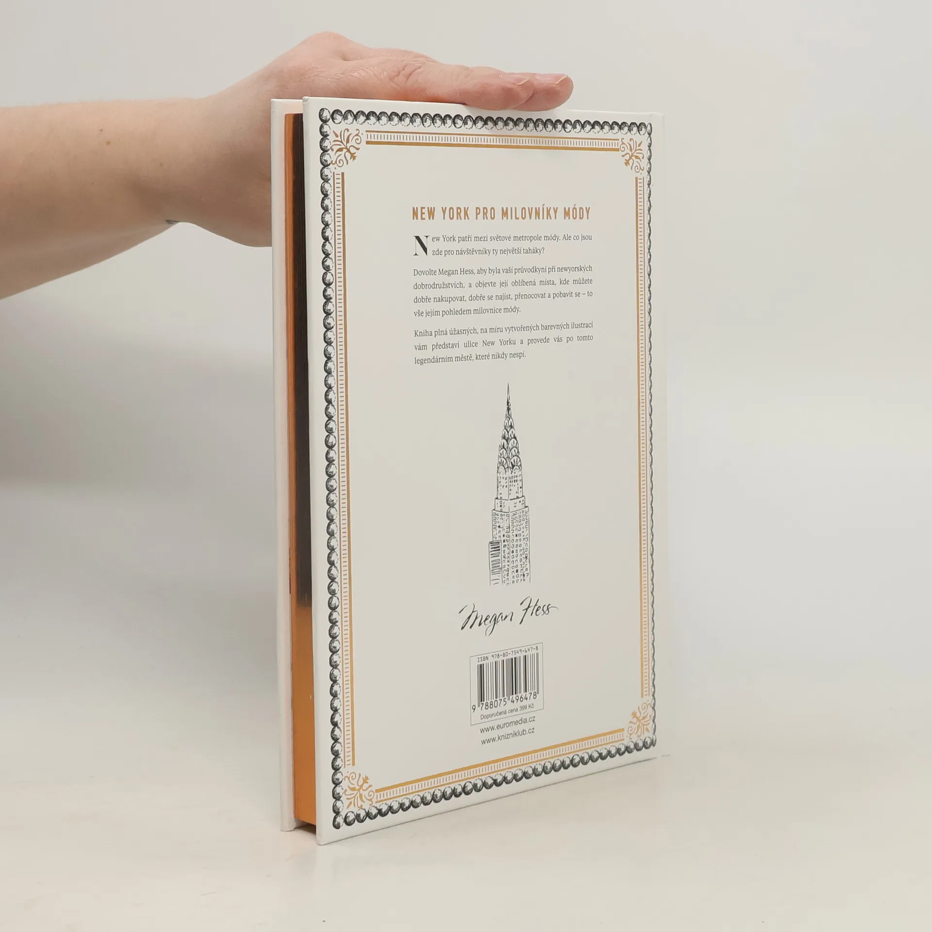 Nechte se provést New Yorkem, jedním z nejrespektovanějších módních měst světa. Mezinárodně uznávaná ilustrátorka Megan Hess vám ukáže svá oblíbená místa na nakupování, zábavu, a odpočinek. Nechybí ani restaurace, kde si po celém dni procházení můžete dát něco dobrého. Vše je ilustrováno autorčiným jedinečným elegantním stylem. Od nepřekonatelných výhledů z Empire State Building až po proslavené dortíčky z Magnolia Bakery, tato kniha je nutností pro každého milovníka módy.