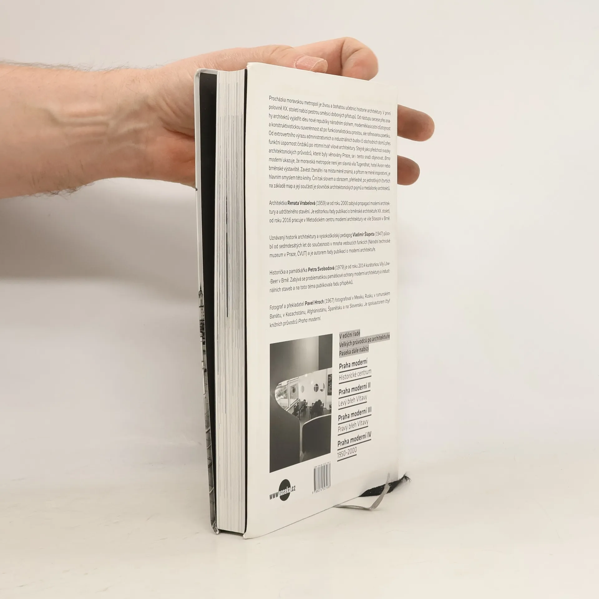 Velký průvodce po architektuře 1890–1948. Publikace, jež navazuje na úspěšnou řadu průvodců Praha moderní, představí slovem a obrazem přes sto významných staveb, jež v moravské metropoli vznikly od nástupu secese přes hledání národního stylu za první republiky, modernistické výboje spjaté zejména s funkcionalismem až po fašistickou a komunistickou totalitu, která dosavadní stavební vývoj na dlouhou dobu přerušila. Výběr objektů, prezentovaných ve svém současném stavu na fotografiích Pavla Hrocha, vytváří představu o jednotlivých obdobích, vývoji technologií a estetických názorů a politických a hospodářských proměnách. Průvodce je rozdělen do kapitol podle městských čtvrtí a zahrnuje rovněž mapky s vyznačenými objekty.