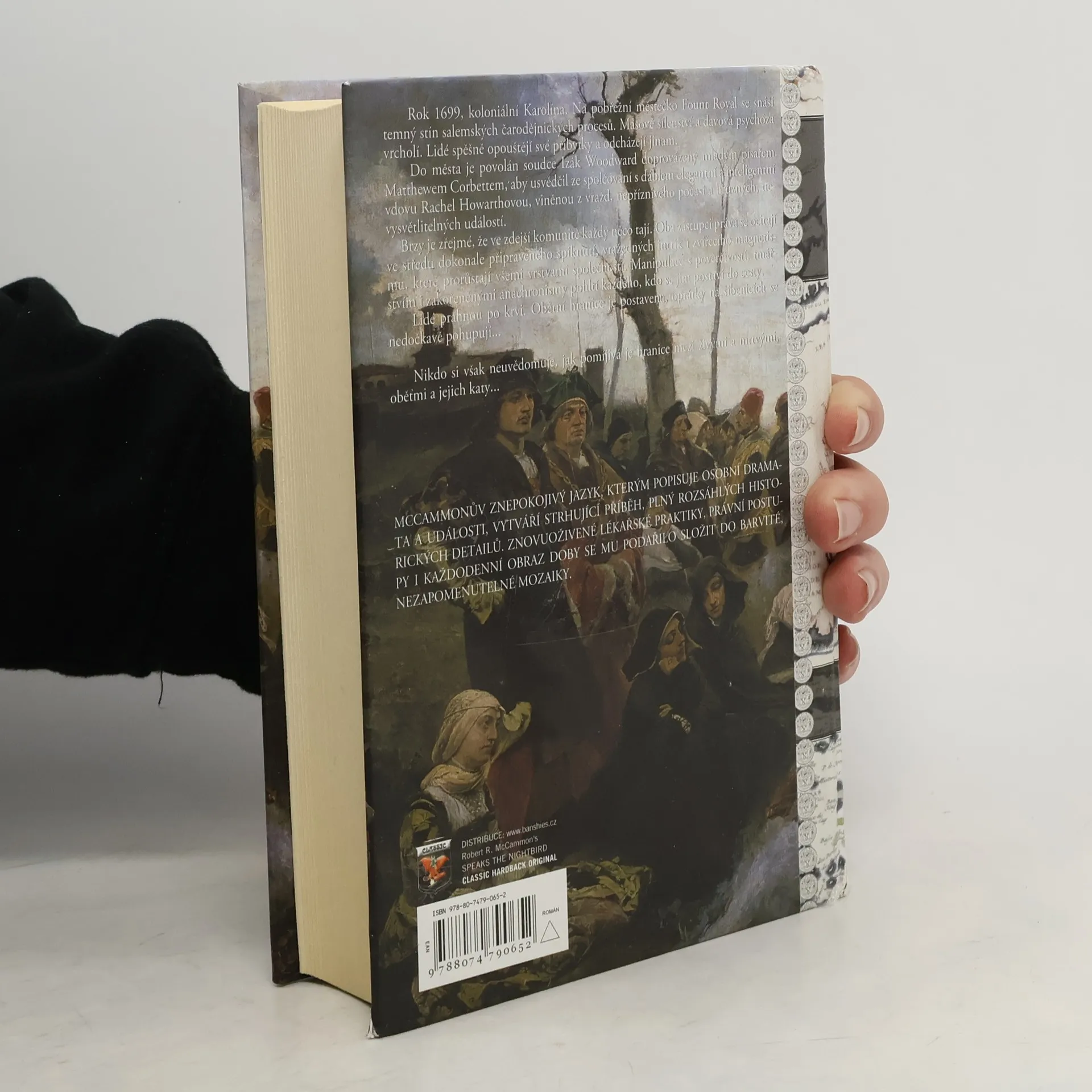 Rok 1699, koloniální Karolína. Na pobřežní městečko Fount Royal se snáší temný stín salemských čarodějnických procesů. Masové šílenství a davová psychóza vrcholí. Lidé spěšně opouštějí své příbytky a odcházejí jinam. Do města je povolán soudce Izák Woodward doprovázený mladým písařem Matthewem Corbettem, aby usvědčil ze spolčování s ďáblem elegantní a inteligentní vdovu Rachel Howarthovou, viněnou z vražd, nepříznivého počasí a hrůzných, nevysvětlitelných událostí. Brzy je zřejmé, že ve zdejší komunitě každý něco tají. Oba zástupci práva se ocitají ve středu dokonale připraveného spiknutí, vražedných intrik i zvířecího magnetismu, které prorůstají všemi vrstvami společnosti. Manipulace s pověrčivostí, tmářstvím i zakořeněnými anachronismy pohltí každého, kdo se jim postaví do cesty. Lidé prahnou po krvi. Obětní hranice je postavena, oprátky na šibenicích se nedočkavě pohupují... Nikdo si však neuvědomuje, jak pomíjivá je hranice mezi živými a mrtvými, oběťmi a jejich katy...