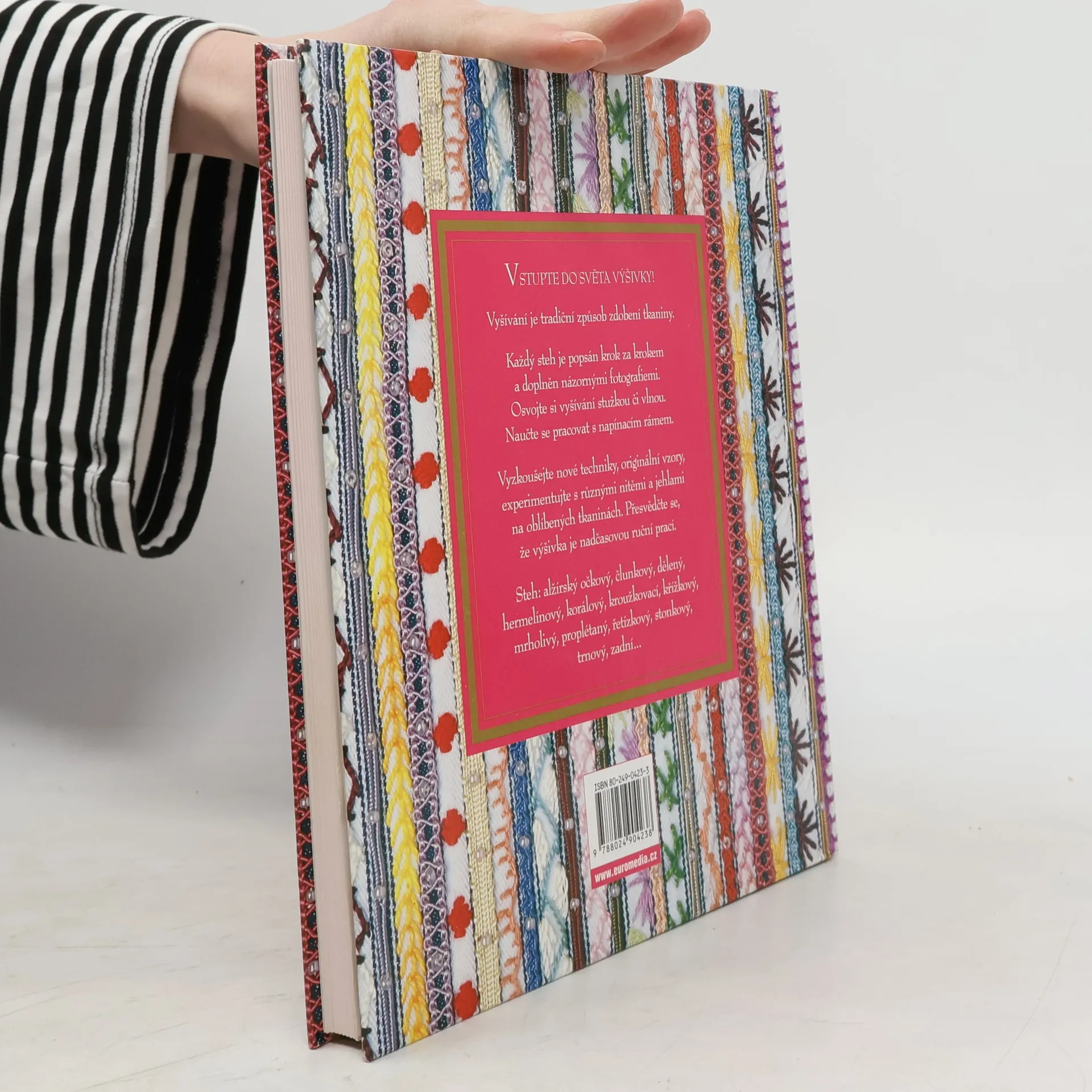 Vstupujete do světa výšivky! Vyšívání je tradiční způsob zdobení tkaniny. Každý steh je popsán krok za krokem a doplněn názornými fotografiemi. Osvojte si vyšívání stužkou či vlnou. Naučte se pracovat s napínacím rámem. Vyzkoušejte nové techniky, originální vzory, experimentujte s různými nitěmi a jehlami na oblíbených tkaninách. Přesvědčte se, že výšivka je nadčasovou ruční prací. Steh: alžírský očkový, člunkový, dělený, hermelínový, korálový, kroužkovací, křížkový, mrholivý, proplétaný, řetízkový, stonkový, trnový, zadní...