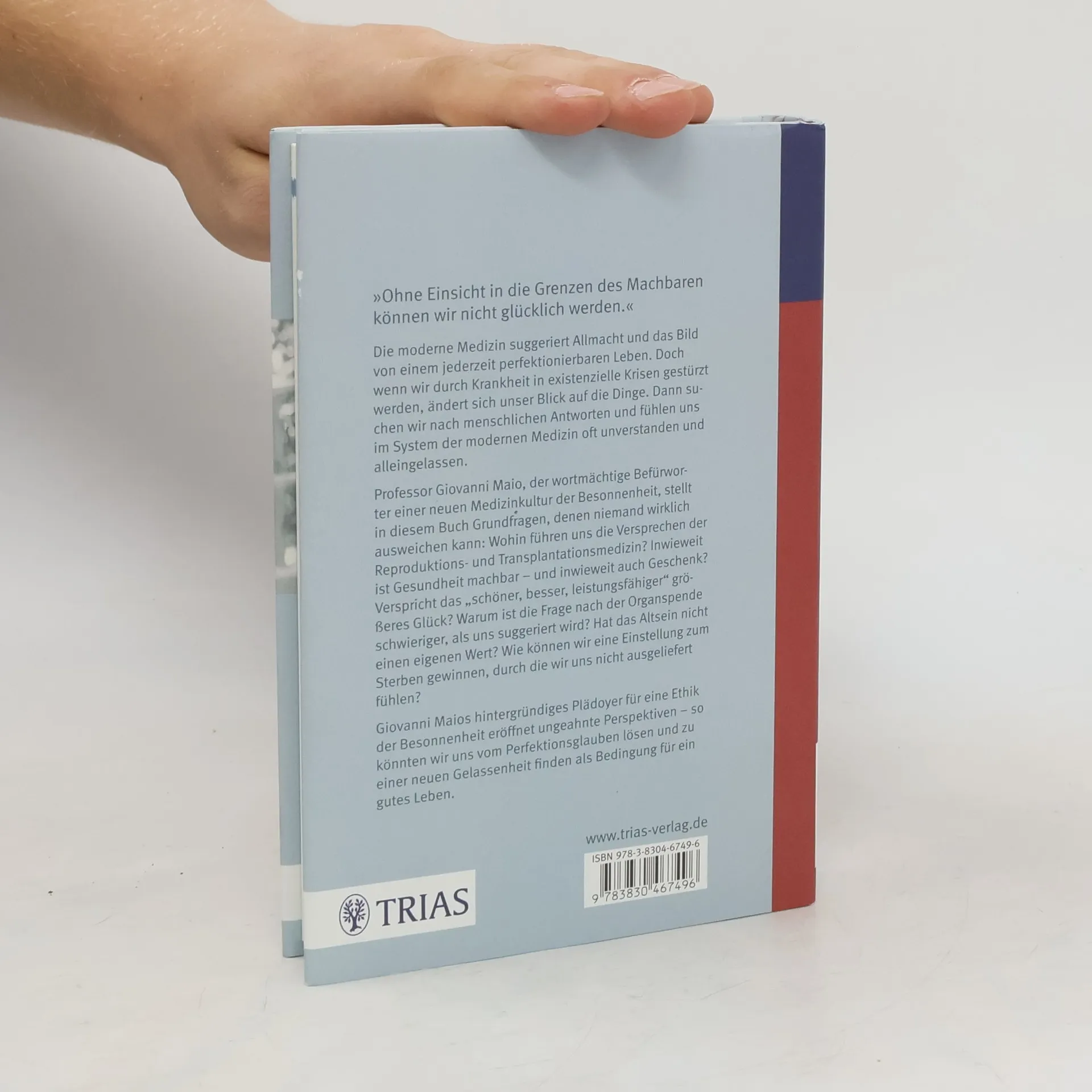 „Ohne Einsicht in die Grenzen des Machbaren können wir nicht glücklich werden.“ Die moderne Medizin vermittelt oft ein Bild von Allmacht und einem perfektionierbaren Leben. Doch in Zeiten von Krankheit, die uns in existenzielle Krisen stürzen, verändert sich unser Blick. Wir suchen nach menschlichen Antworten und fühlen uns im medizinischen System oft unverstanden. Professor Giovanni Maio, ein Befürworter einer neuen Medizinkultur der Besonnenheit, stellt grundlegende Fragen: Wohin führen die Versprechen der Reproduktions- und Transplantationsmedizin? Ist Gesundheit machbar oder ein Geschenk? Bringt das Streben nach „schöner, besser, leistungsfähiger“ wirklich mehr Glück? Warum ist die Organspende eine komplexere Frage, als oft angenommen? Hat das Altsein nicht seinen eigenen Wert? Wie können wir eine Haltung zum Sterben entwickeln, die uns nicht hilflos macht? Maios Plädoyer für eine Ethik der Besonnenheit eröffnet neue Perspektiven und ermutigt uns, den Perfektionsglauben abzulegen und Gelassenheit als Grundlage für ein gutes Leben zu finden. Er ist Professor für Medizinethik an der Albert-Ludwigs-Universität Freiburg und kritisiert die Machbarkeitsvorstellungen der technisierten Medizin.