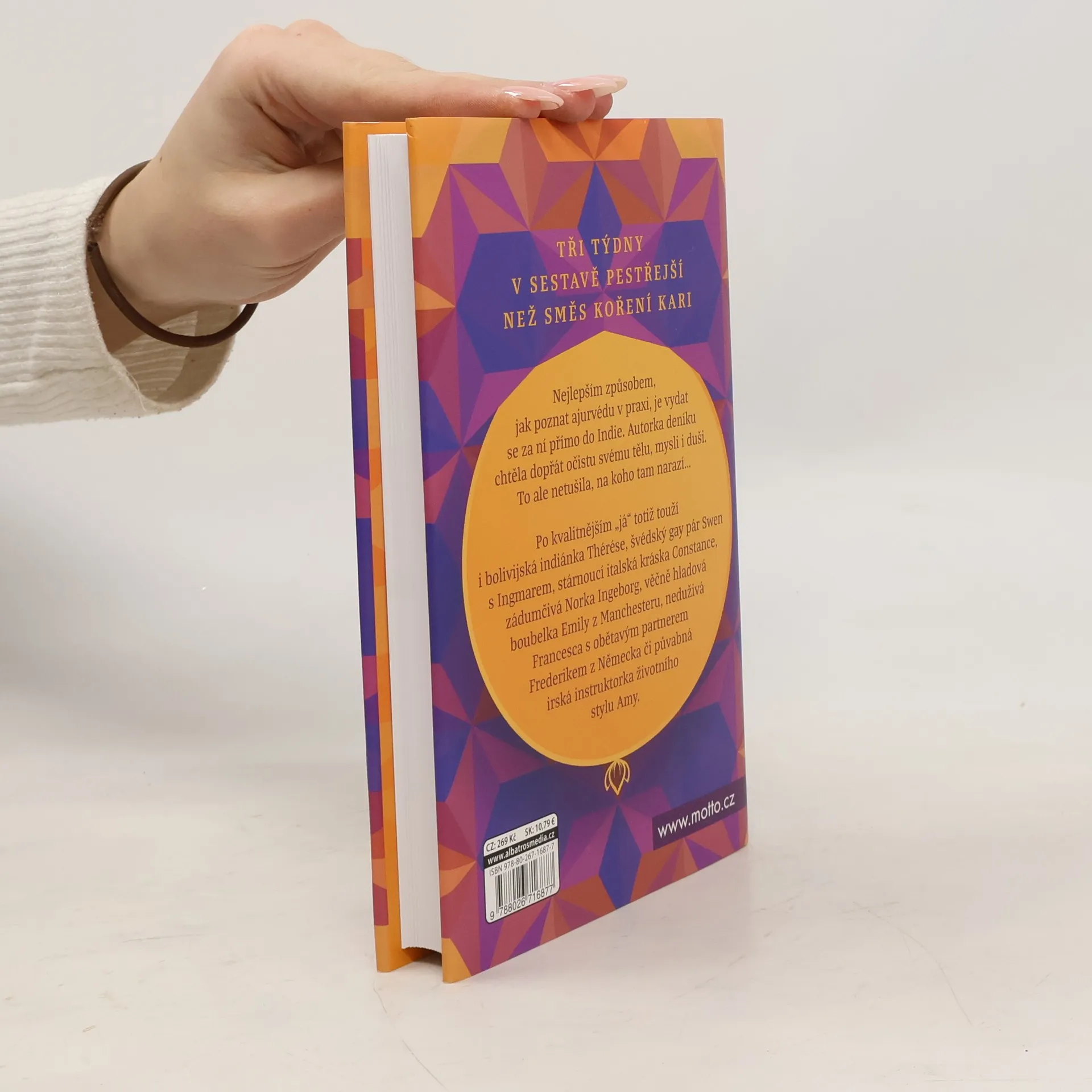 Tři týdny v sestavě pestřejší než směs koření kari. Mívala jsem pocit knedlíku v krku, což mě přivedlo k rozhodnutí uskutečnit sen a objevit ajurvédu v její indické kolébce. Chtěla jsem proniknout do tohoto tisíci lety ověřeného systému a jeho praktického přístupu k člověku. Jedno zimní ráno jsem se sbalila, rozloučila se s chápajícím manželem Hádžem a vyrazila na Kudle Beach do ajurvédského centra, kam předtím česká noha nevkročila. Nebyla jsem sama; po kvalitnějším „já“ toužila i bolivijská indiánka Thérése, švédský pár Swen a Ingmar, italská kráska Constance, norská Ingeborg, boubelka Emily z Manchesteru, neduživá Francesca s partnerem Frederikem a irská instruktorka Amy. Někteří z nás byli nadšení jogíni, jiní dobrodruzi či hledači pravdy. Společně jsme se vydali na cestu, abychom objevili moudrost, kterou nám čas přinesl. Zažili jsme šokující, naplňující a objevné okamžiky, trápili se i smáli. I když to nebylo vždy snadné, odjížděli jsme s pocitem, že jsme posunuli své životy k větší harmonii. Nezapomeňte, že život je o trávení zkušeností, tak ať ty vaše jsou co nejstravitelnější!