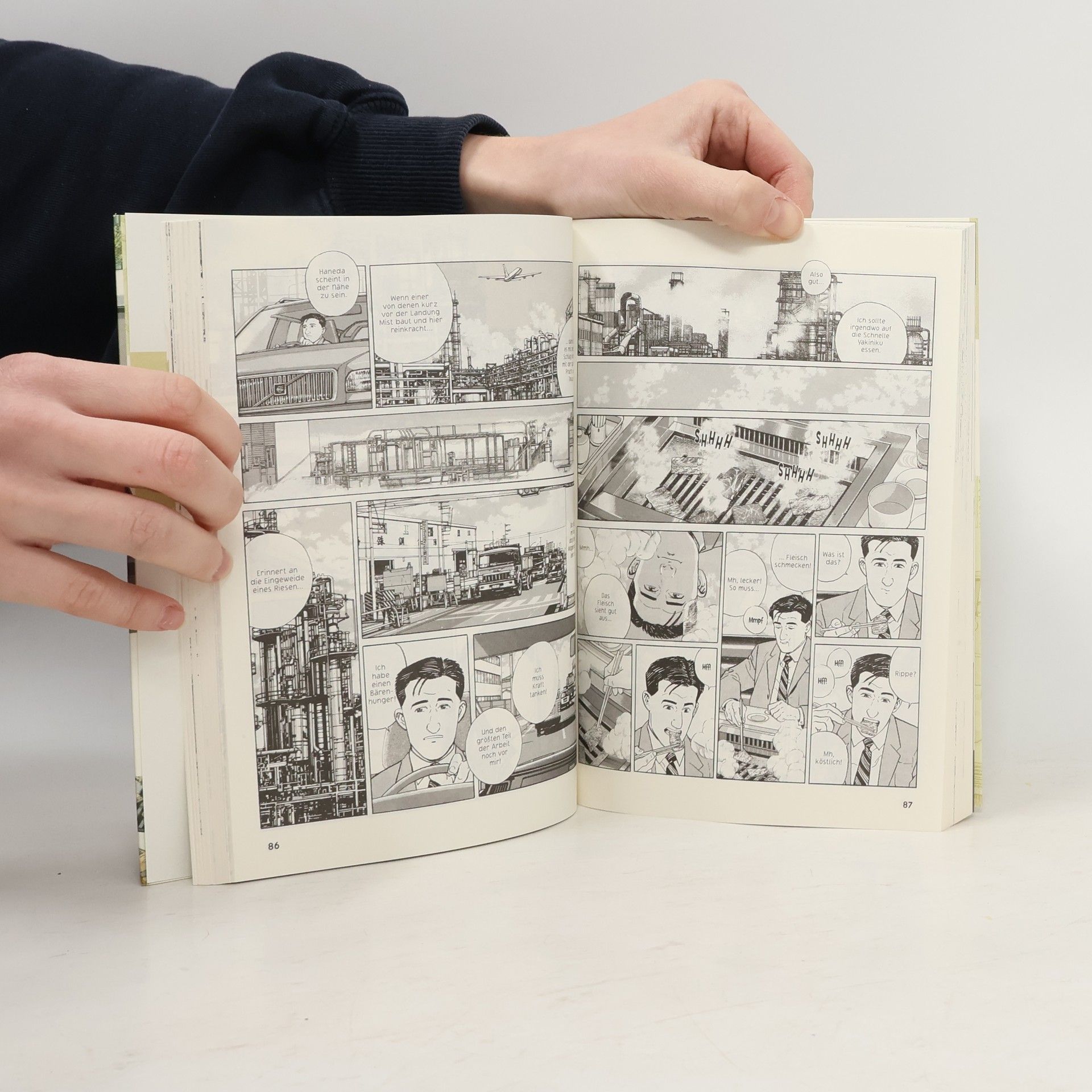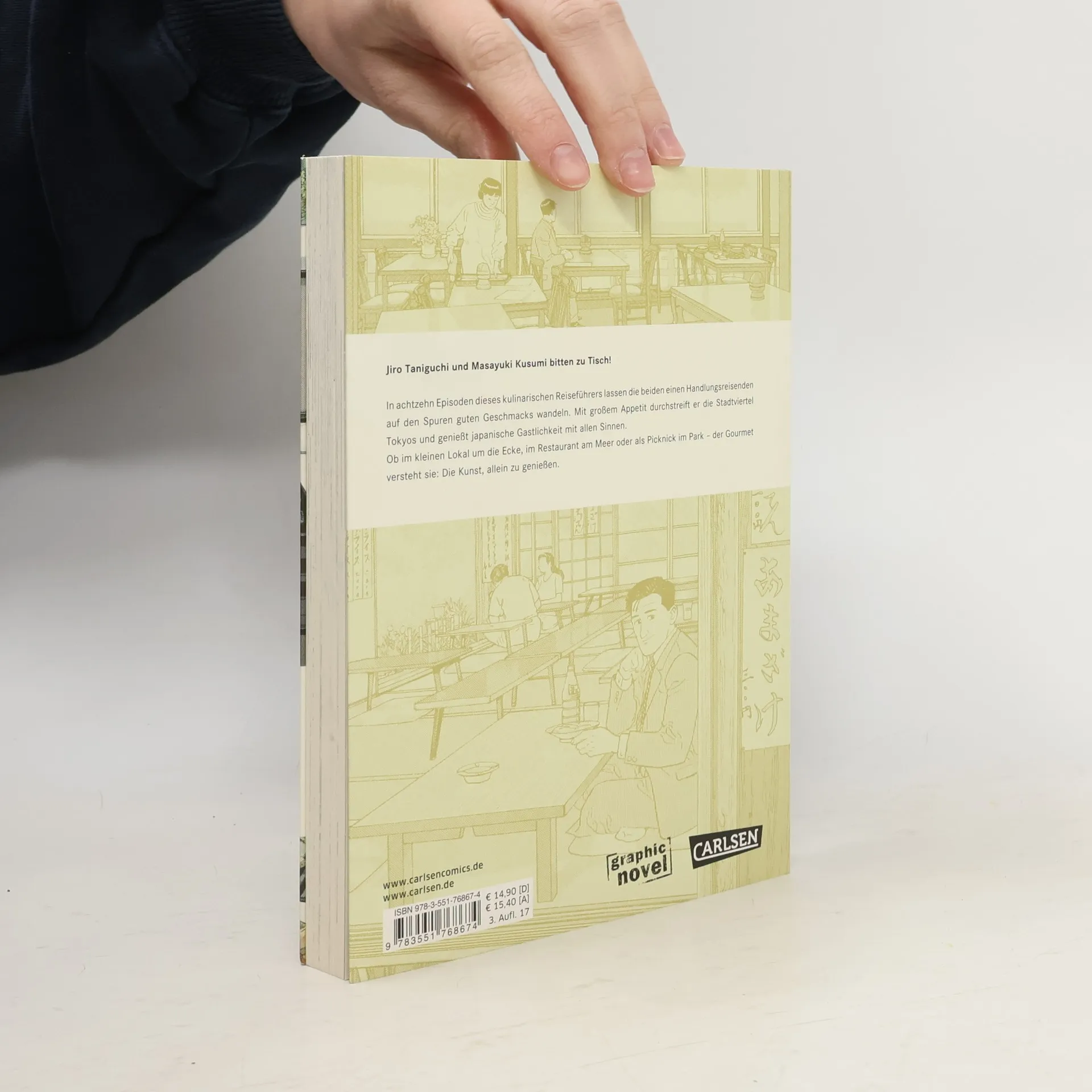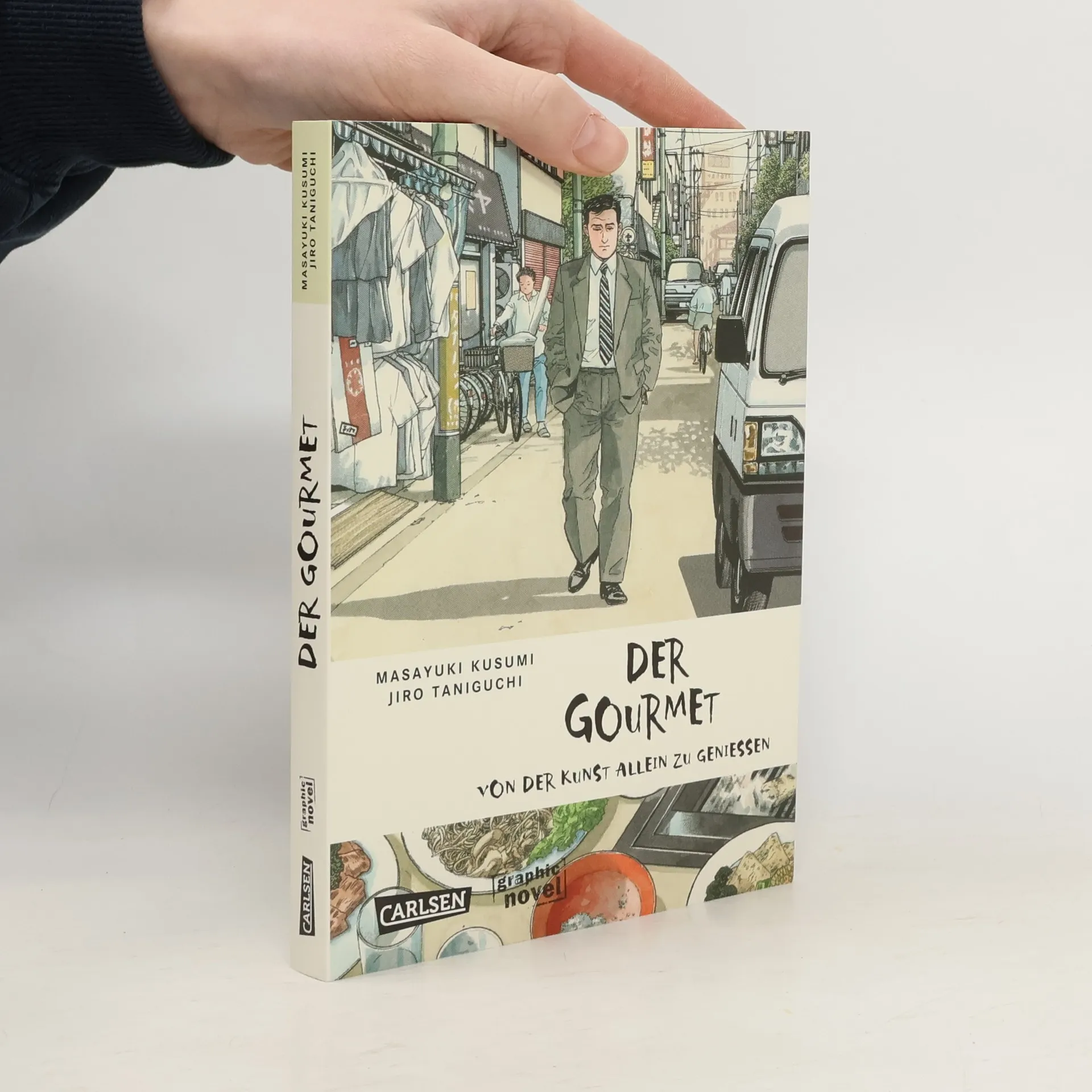 Jiro Taniguchi und Masayuki Kusumi bitten zu Tisch! Eine Sushi-Bar in Kichijoji, geröstete Manju in Takasaki, Oden mit Reis im Park von Shakujii, gedünstete Shumai im Shinkansen… Als Handlungsreisender kommt der Mann viel herum ‒ und er hat Hunger. Er schätzt die einfache, traditionelle Küche, lässt sich aber auch gern überraschen ‒ sowohl von der Mahlzeit, als auch vom Ort, an dem er sie zu sich nimmt. Allein, ungebunden und ohne konkretes Ziel durchstreift er die Stadtviertel und genießt japanische Gastlichkeit mit allen Sinnen. Jiro Taniguchi bittet zu Tisch! In achtzehn Episoden seines kulinarischen Reiseführers lässt er den Titelhelden auf den Spuren guten Geschmacks wandeln. An jedem Ort ein Essen, zu jedem Essen ein Ort. Ob in einem kleinen Lokal, im Sportstadion, im Restaurant am Meer oder als Picknick im Park ‒ der Gourmet versteht sie: Die Kunst, allein zu genießen.