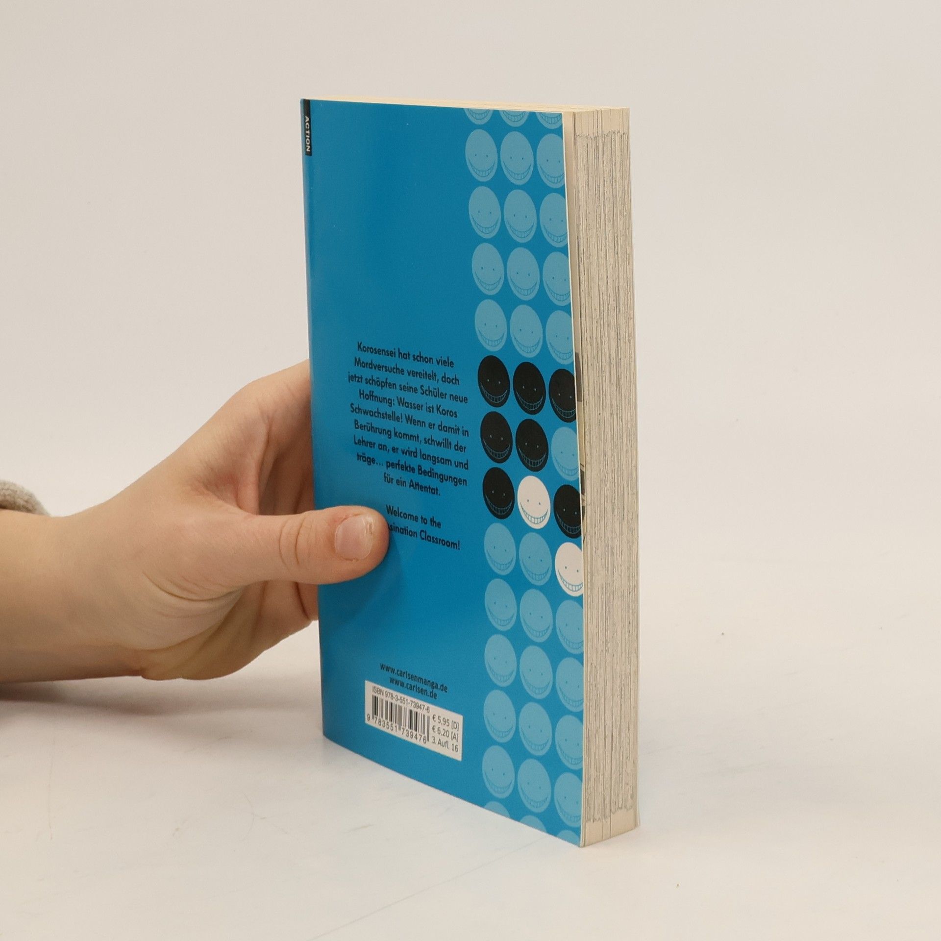 Die Erde wird von einer gelben Monsterkrake bedroht! Die letzte Hoffnung der Menschheit: Die Versagerklasse der Kunugigaoka Junior Highschool...! Korosensei hat schon viele Mordversuche vereitelt, doch jetzt schöpfen seine Schüler neue Hoffnung: Wasser ist Koros Schwachstelle! Wenn er damit in Berührung kommt, schwillt der Lehrer an, er wird langsam träge... Perfekte Bedingungen für ein Attentat. Absolut einzigartig und abgefahren mit einer Riesenportion Humor – Welcome to the Assassination Classroom! Weitere Infos: - abgeschlossen in 21 Bänden - empfohlen ab 12 Jahren - Anime-Adaption auf Crunchyroll - idealer Einstieg für Manga-Neulinge