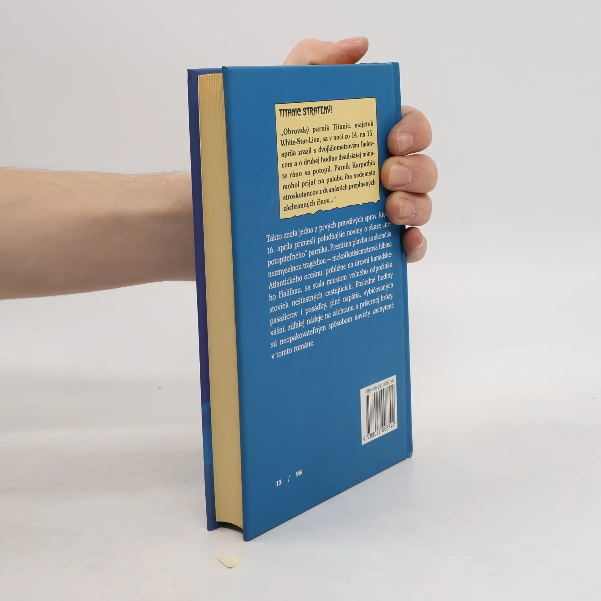 "TITANIC STRATENÝ! Obrovský parník Titanic, majetok White-Star-Line, sa v noci zo 14. na 15. apríla zrazil s dvojkilometrovým ľadovcom a o druhej hodine dvadsiatej minúte ráno sa potopil. Parník Karpathia mohol prijať na palubu iba sedemsto stroskotancov z dvanástich preplnených záchranných člnov." Takto znela jedna z prvých pravdivých správ, ktorú 16. apríla priniesli poludňajšie noviny o skaze "nepotopiteľného" parníka. Prestížna plavba sa skončila nezmyselnou tragédiou - niekoľkotisícmetrová hlbina Atlantického oceánu, približne na úrovni kanadského Halifaxu, sa stala miestom večného odpočinku stoviek nešťastných cestujúcich. Posledné hodiny pasažierov i posádky, plné napätia, vybičovaných vášní, zúfalej nádeje na záchranu a príšernej hrôzy, sú neopakovateľným spôsobom navždy zachytené v tomto románe.... celý text
