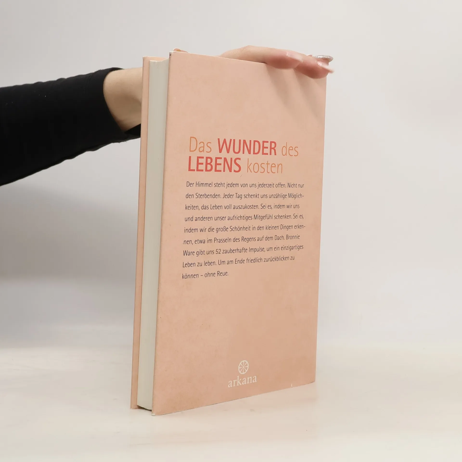 Der Erfolg von Bronnie Wares großem Bestseller „5 Dinge, die Sterbende am meisten bereuen“ zeigt, wie groß die Sehnsucht der Menschen ist, die wirklich wichtigen Dinge im Leben präsent zu halten. Die Quintessenz dieses Buchs: Folge deinem Herzen, so dass du am Ende friedlich und ohne Reue auf dein Leben zurückblicken kannst. In ihrem neuen Buch zeigt die Autorin, wie das gelingen kann. Den gegenwärtigen Augenblick genießen, das Lächeln einer unbekannten Person erwidern, dem Regen zuhören, wie er aufs Dach prasselt und die Dankbarkeit darüber spüren, dass er Wasser bringt – Bronnie Ware lässt uns in diesen 52 Inspirationstexten teilhaben am täglichen Wunder unseres Lebens.