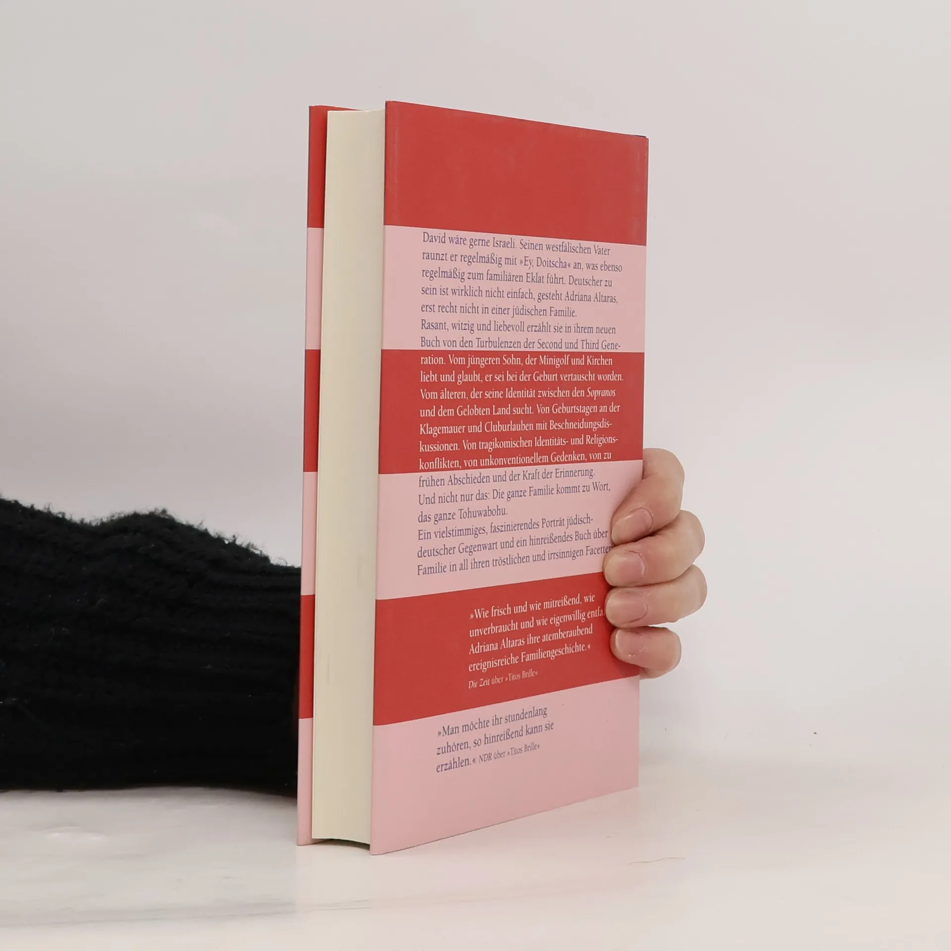 David ist nicht nur hochintelligent, sondern auch hochpubertär. Der Einzige, auf den er hört, ist sein Patenonkel Aron. Mit diesem ist Adriana Altaras seit ihrer Jugend befreundet. Sie überlegten damals, gemeinsam auszuwandern nach Israel, das für sie ähnlich verlockend war wie für die Surfer Hawaii. Doch sie blieben und nutzen das schlechte Gewissen der Deutschen, um umsonst Bahn zu fahren oder schulfrei zu bekommen. Als Aron stirbt, spitzt sich der Generationenkonflikt in der Familie Altaras zu. David hält nichts mehr in Berlin, er verabschiedet sich kurzerhand ins Gelobte Land, und die Mutter reist hinterher – auf der Suche nach dem verlorenen Sohn zwischen Klagemauer, See Genezareth und Kibbuz. In »Titos Brille«, von den Lesern geliebt und von der Presse gefeiert, hat sich die Autorin der Geschichte ihrer Vorfahren gewidmet. Mitreißend, witzig und herrlich turbulent erzählt sie nun mitten aus dem jüdischen Leben heute in Deutschland. Vom jüngeren Sohn, der lieber »Germany’s Next Topmodel« sähe, als zuzuschauen, wie sich seine Mutter in Talkshows über die »schönen Schmocks« ihrer Söhne äußert. Vom älteren, der die Pubertät in vollen Zügen auskostet, aber an Jom Kippur fastet wie ein Großer. Von Identitätskonflikten, die sich an einer rissigen Salatschüssel entzünden