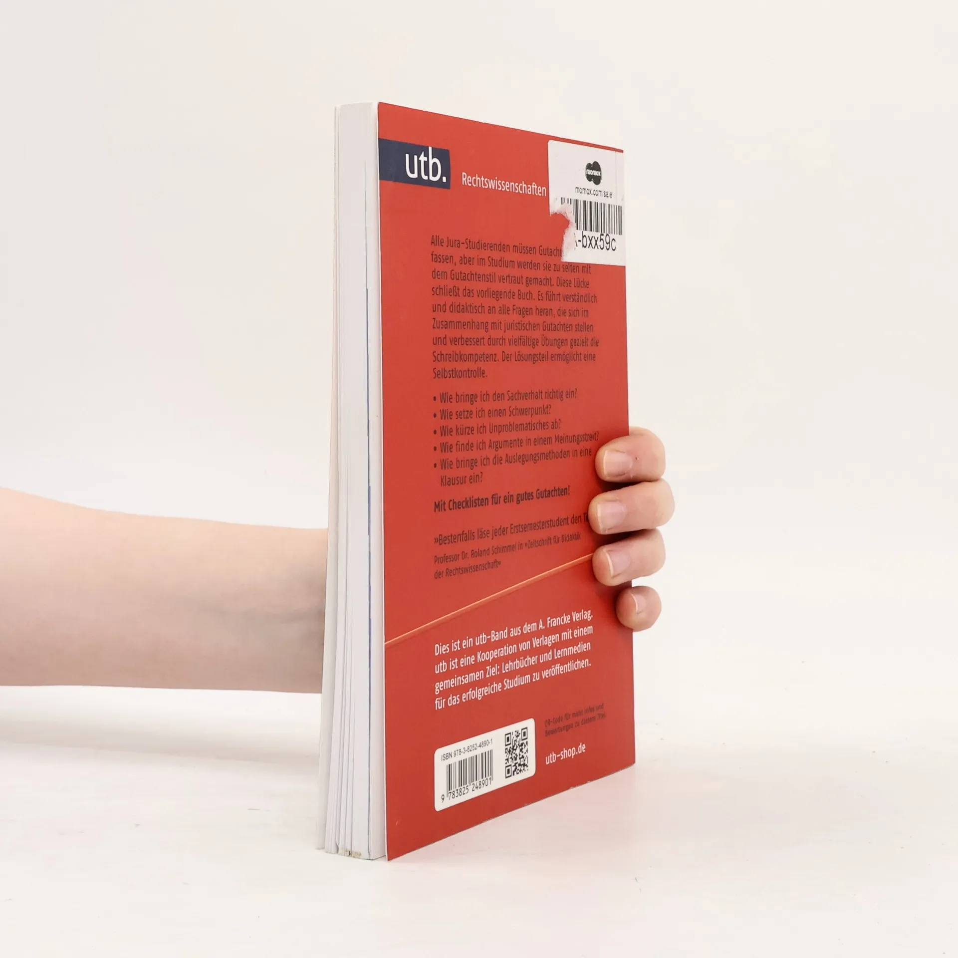 Neuauflage des erfolgreichen Leitfadens zur Erstellung juristischer Gutachten. Der Band hilft sowohl Einsteigern als auch Fortgeschrittenen, juristische Fallbearbeitungen in Seminaren und Klausuren sprachlich-stilistisch einwandfrei zu erstellen. Das Lehr- und Arbeitsbuch bietet neben theoretischen Ausführungen auch vielfältige Übungen sowie Checklisten für ein gutes Gutachten. „Bestenfalls läse jeder Erstsemesterstudent den Text.“ (Prof. Dr. Roland Schimmel in „Zeitschrift für Didaktik der Rechtswissenschaft“) Das Buch führt verständlich an alle Fragen heran, die sich im Zusammenhang mit juristischen Gutachten stellen und verbessert gezielt die Schreibkompetenz.