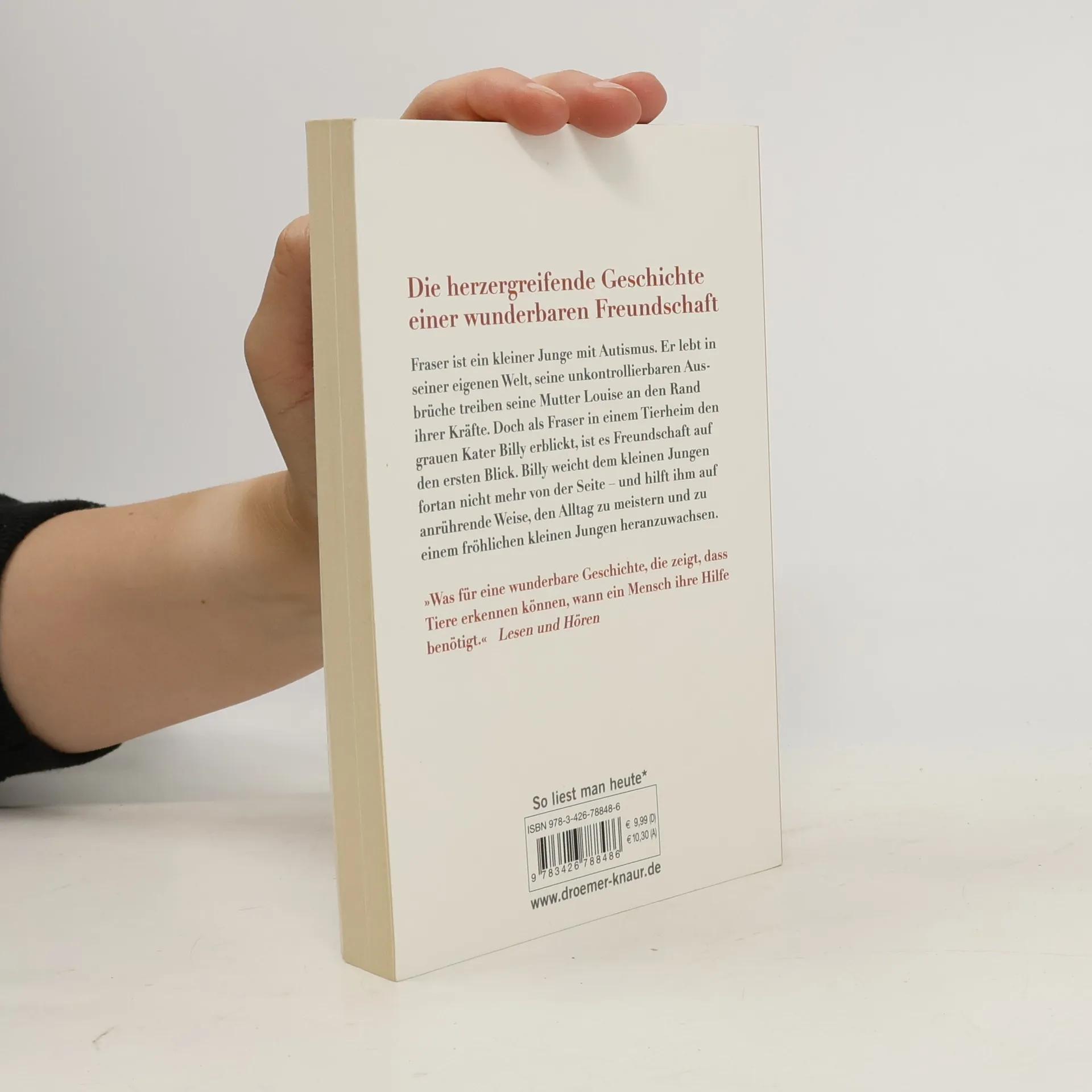 Als der scheue zweijährige Junge Fraser in einem Tierheim auf den grauen Kater Billy trifft, schmiegt das Tier sich schnurrend an ihn. Es ist der Beginn einer einzigartigen Freundschaft. Dabei leidet Fraser an Autismus und lebt sonst in seiner eigenen Welt, zu der niemand Zugang hat. Doch Billy, der Kater, hat ein magisches Gespür für die Nöte und Sorgen seines kleinen Freundes. Wann immer es dem Jungen schlecht geht, ist das Tier zur Stelle. Und abends bleibt es so lange bei Fraser, bis dieser endlich in den Schlaf gefunden hat. Dank Billy verwandelt sich Fraser von einem verzweifelten Kind, das zu unkontrollierten Ausbrüchen neigt, in einen vergnügten kleinen Vierjährigen, der es liebt, an der Seite seines vierbeinigen Freundes die Welt zu erkunden. Louise Booth ist Frazers Mutter und erzählt die rührende Geschichte einer Freundschaft zwischen Mensch und Tier, wie es sie so kein zweites Mal gibt.