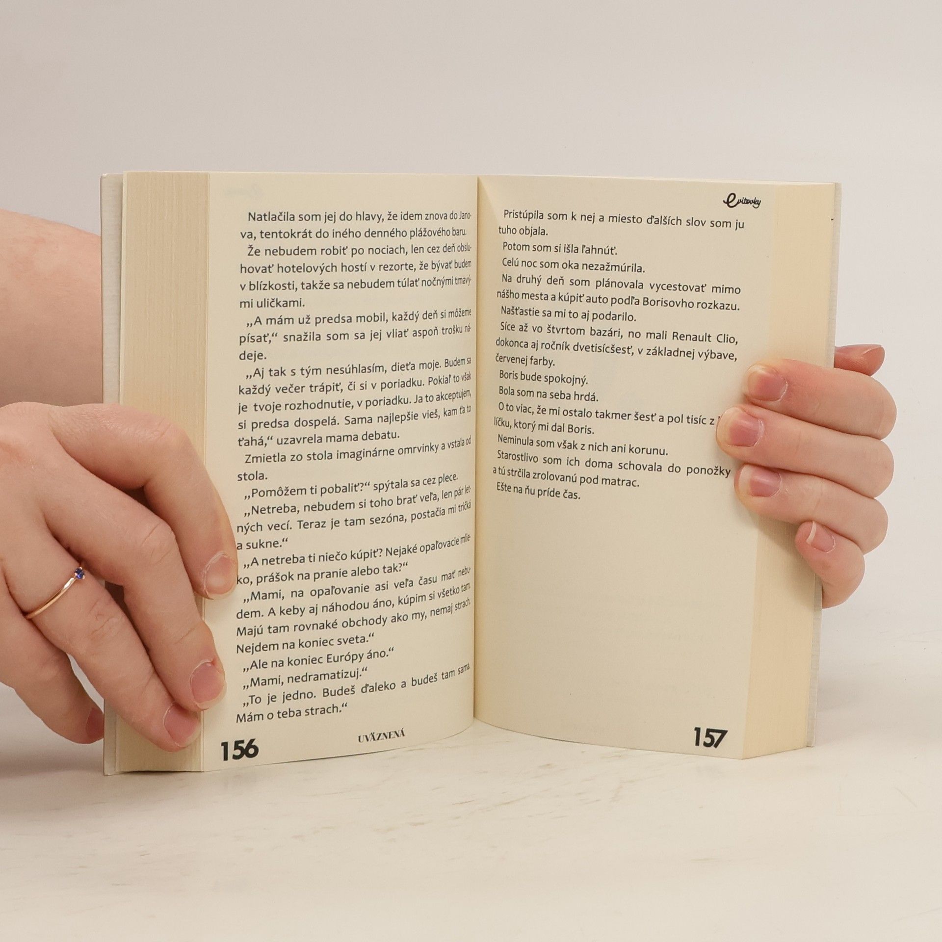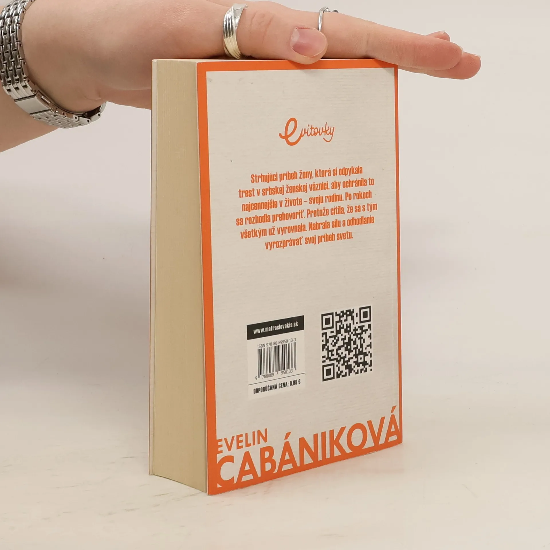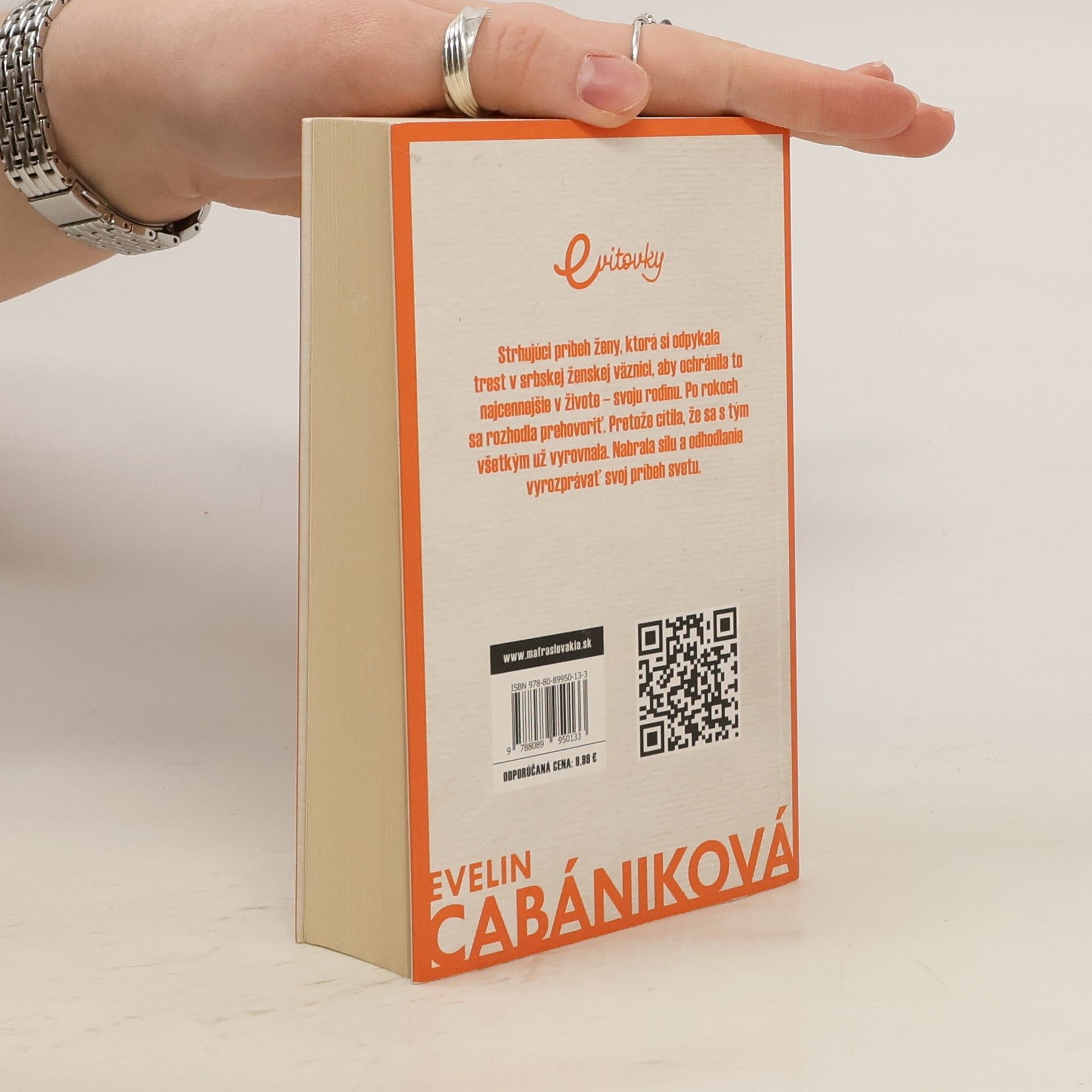 Ďalší skutočný príbeh z pera bývalej „Eviťáčky“. Pod menom Eva „Evelin“ Červienková jej vyšli tituly Melónová aféra, Luxusný prešľap a Ďalšia, prosím, z ktorým sa stali bestsellery. Novinka Uväznená vychádza po troch rokoch v novom vydavateľstve a vydáva ju pod menom Evelin Cabániková. Nikdy neprestávaj veriť svojej pravde. Aj keď sa ti všetci otočia chrbtom a nechajú ťa stáť pred problémom samu, zdvihni hrdo hlavu a nasaď úsmev. Dokáž všetkým, ako veľmi sa mýlili, keď ti neverili. Aj o tom je tento príbeh....