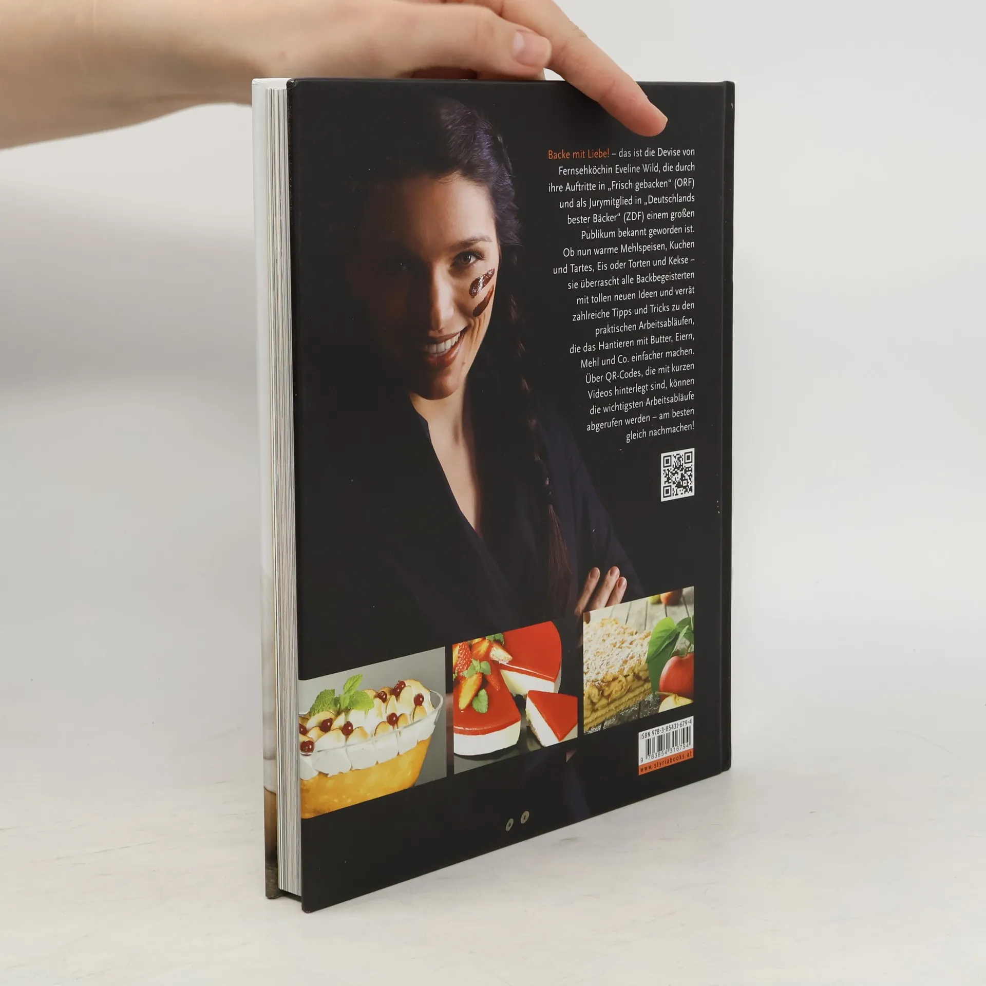 Das erste Buch von Fernsehköchin und Meister-Patissière Eveline Wild präsentiert zum einen köstliche Basisrezepte, mit denen man ohne viel Aufwand tolle Süßspeisen zaubern kann. Zum anderen kommen aber auch die Backfreaks nicht zu kurz – für sie werden die besagten Rezepte „auffrisiert“: Mit einigen Zutaten und Handgriffen mehr können sie sich einen Wow-Effekt nach dem anderen „erbacken“. Eveline Wild überrascht so alle Backbegeisterten mit neuen Ideen und gibt zahlreiche Tipps und Tricks zu den praktischen Arbeitsabläufen, die das Hantieren mit Butter, Eiern, Mehl und Co. einfacher machen. Kurze Step-by-step-Bildreihen animieren zum Nachmachen, fördern die Kreativität der Leserinnen und Leser und vermitteln das Gefühl „Das kann ich auch“. QR-Codes, die mit kurzen Video-Sequenzen hinterlegt sind, erlauben es, der Profi-Patissière genau auf die Finger zu schauen.