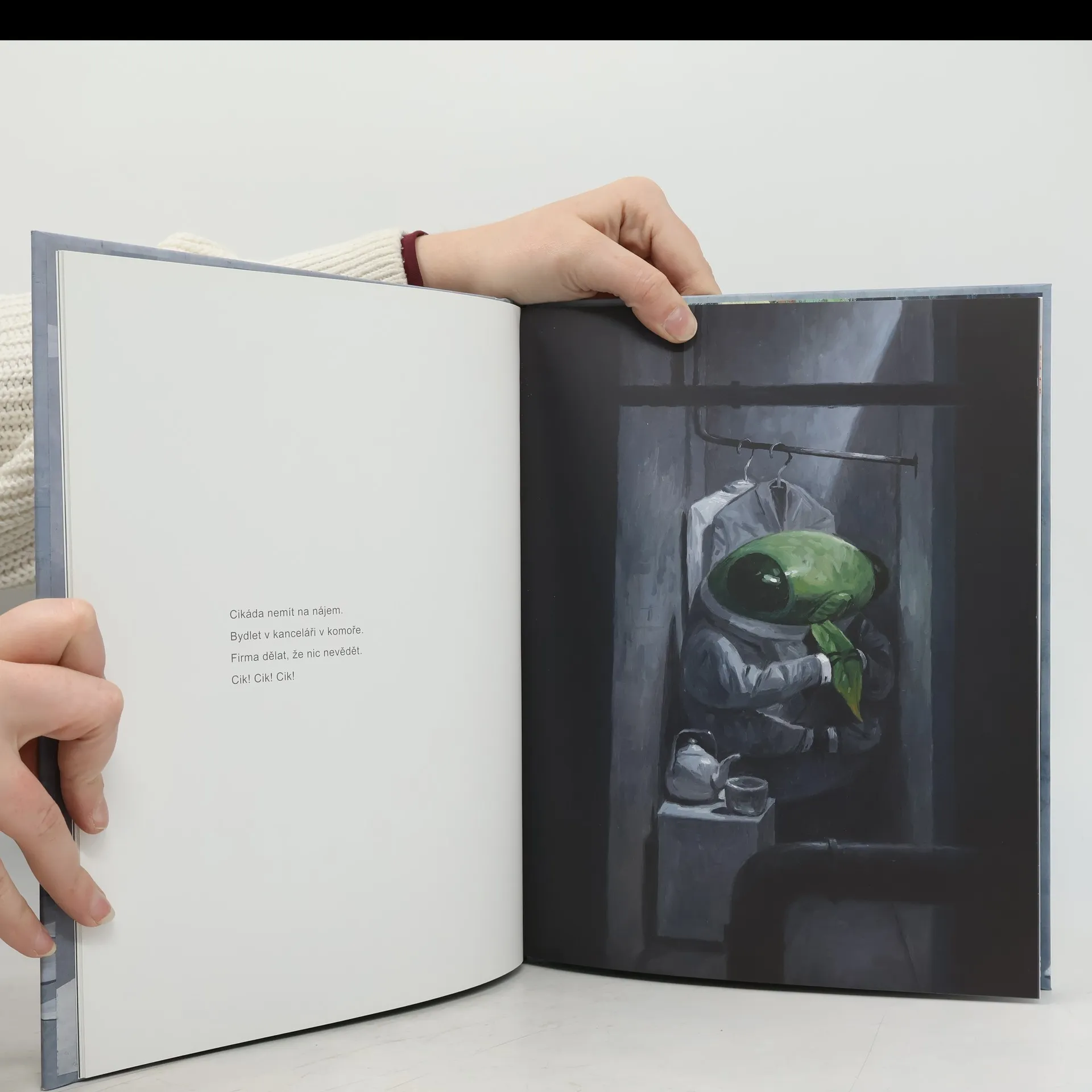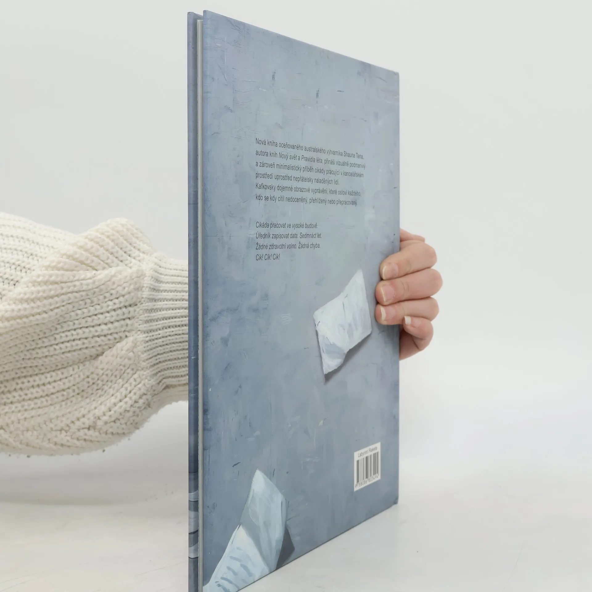 POZOR: Nejedná se o klasický komiks, ale o celostránkové barevné ilustrace, doprovozené vždy na protistraně krátkým textem! Nová kniha oceňovaného australského výtvarníka Shauna Tana, autora knih Nový svět a Pravidla léta, přináší vizuálně podmanivý a zároveň minimalistický příběh cikády pracující v kancelářském prostředí uprostřed nepřátelsky naladěných lidí. Kafkovsky dojemné obrazové vyprávění, které osloví každého, kdo se kdy cítil nedoceněný, přehlížený nebo přepracovaný.