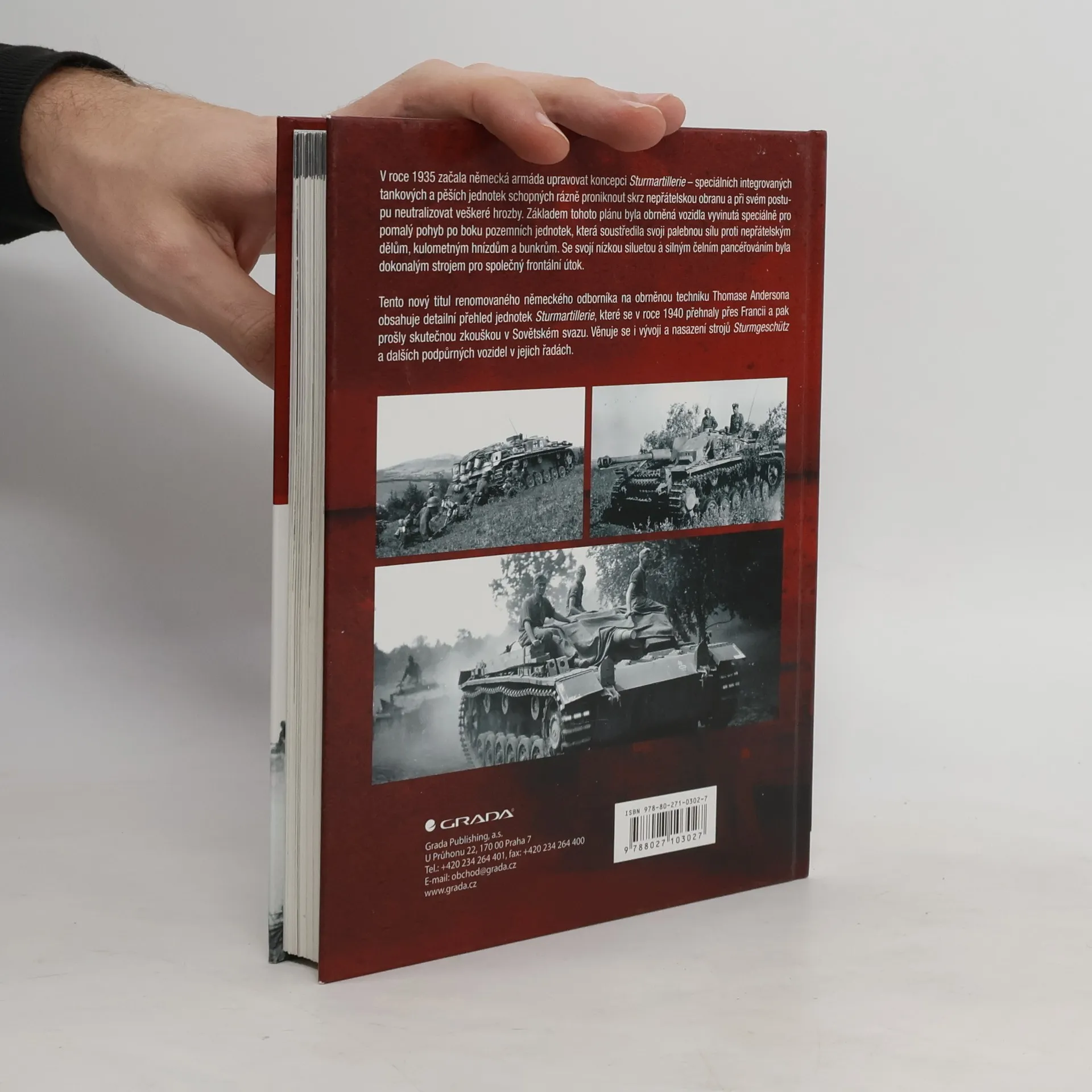 Samohybné útočné dělo neboli Sturmgeschütz bylo jednou z nejznámějších a nejúspěšnějších protitankových zbraní druhé světové války. Bojové skóre celé německé Sturmartillerie je jednoznačně pozitivní. Stála v čele útoku, následována pěchotou, jak při tažení Francií, tak na východní frontě, kde jí padlo za oběť neuvěřitelných více než 20 000 ruských tanků všech typů. Tato nejnovější kniha uznávaného zbrojního experta Thomase Andersona poskytuje detailní popis této významné složky wehrmachtu, zkoumá její vývoj od samého počátku a rozebírá způsob jejího nasazení. Autor opět zvolil osvědčený postup, kdy pasáže věnované technickému popisu střídají líčení přímých účastníků bojů o jejich vlastních zkušenostech, která získal na základě bádání zejména v německých archivech. Ke zvýšení věrohodnosti a názornosti používá jako vždy velké množství dosud nepublikovaných dobových fotografií. Pro zájemce o bojovou techniku druhé světové války tak nesporně přichystal skutečnou lahůdku!