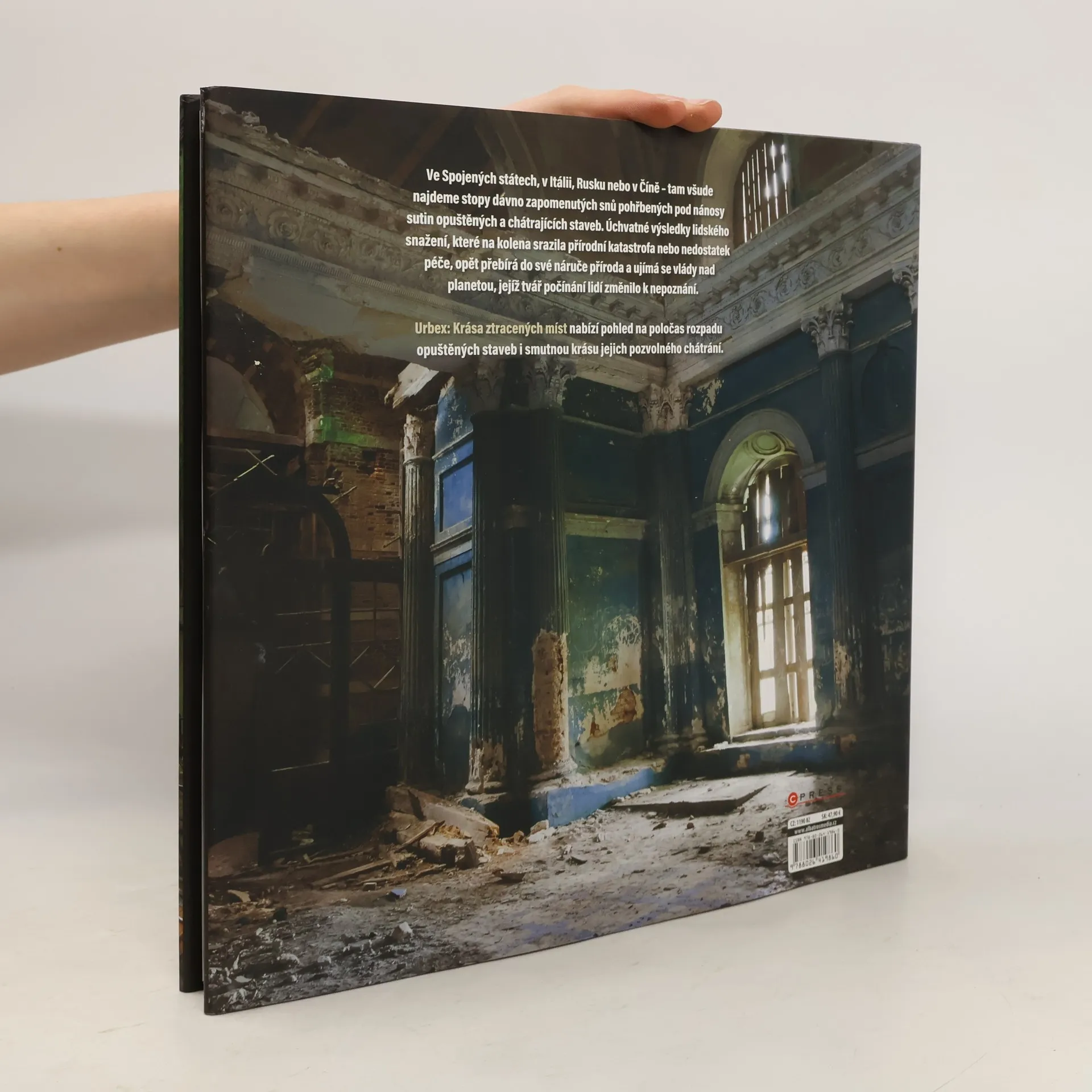 Vydejte se společně s námi za objevováním zmařených snů, které se ukrývají pod sutinami zapomenutých staveb. Mezi zdmi prázdného kostela, v útrobách rezivějící pouťové atrakce i rozlehlých skladových hal či prostých lidských příbytků se rozléhá hrobové ticho místa, které si z lidských rukou převzala zpět do správy Matka příroda. Prázdné skořápky osamocených a lehce děsivých továren i takzvaných měst duchů vytvářejí při svém návratu zpět do lůna přírody jedinečnou a neopakovatelnou krásu. Co zbude z podobného místa, když se lidé – ať už z ekonomických, politických nebo společenských důvodů či vlivem živelné katastrofy – rozhodnou přenést své úsilí jinam? Tato publikace mapuje poločas rozpadu staveb, které svému původnímu účelu dosloužily. Nahlédněte do polorozpadlého divadla, za jehož oponou se ještě vznáší slabá vůně líčidel, do zaprášeného obchodu, kde už si nikdo nic nekoupí, do opuštěné továrny, jejíž vybavení se pozvolna zavrtává do písku jako červ nebo do honosného panského sídla, z jehož zdí se staleté vrstvy historie odlupují společně s provlhlými tapetami. Fascinující nádheru opuštěných staveb z celého světa doplňuje kromě výjimečných fotografií také neméně strhující text. Na první pohled se může zdát, jako by se na mnoha místech zastavil čas, příroda ale pracuje bez oddychu, aby si pro sebe zabrala vše, co po sobě lidé zanechali.