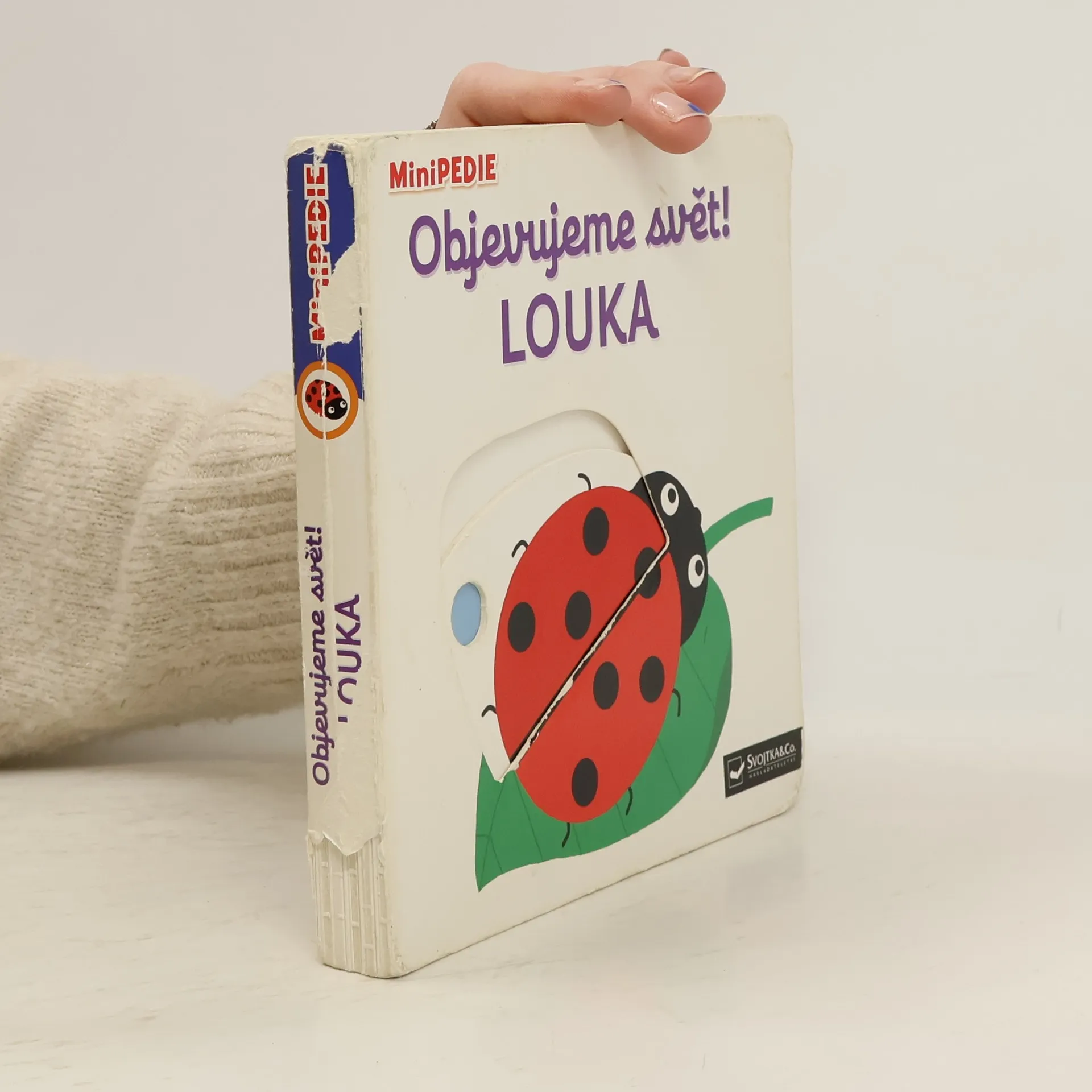 Objevovat, co všechno lze vidět na louce, je s tímto leporelem tak zábavné! Kdo žije v úlu? Kdo tká pavučinu? Kdo má rád lískové oříšky? Kdo má bodliny? Stačí jen vložit prstík do správného otvoru, lehce posunout nebo otočit ve směru šipky a hned bude váš malý objevitel nebo objevitelka znát odpovědi. Leporelo je určeno pro nejmenší děti od jednoho roku a má pevné stránky s posuvnými prvky, a tak si naši nejmenší mohou při prohlížení a pojmenovávání procvičit i jemnou motoriku.