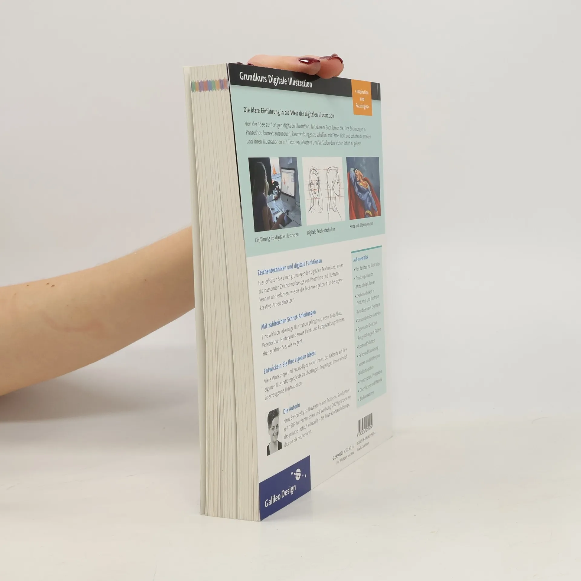 Dieses Buch führt Grafiker, Gestalter und alle, die gerne zeichnen, Schritt für Schritt in die Welt der digitalen Illustration ein: Nach einem kompakten digitalen Zeichenkurs erfahren Sie, wie Sie mit Grafiktablett sowie mit Photoshop und Illustrator eigenständig Ihre Ideen und Konzepte visualisieren: Sie lernen, Ihre Zeichnungen in Photoshop korrekt aufzubauen, Raumwirkungen zu schaffen, mit Farbe, Licht und Schatten zu arbeiten und Ihren Illustrationen mit Texturen, Mustern und Verläufen den letzten Schliff zu geben. Zahlreiche Workshops zum Mitmalen und inspirierende Beispiele machen das Lernen zum Vergnügen.