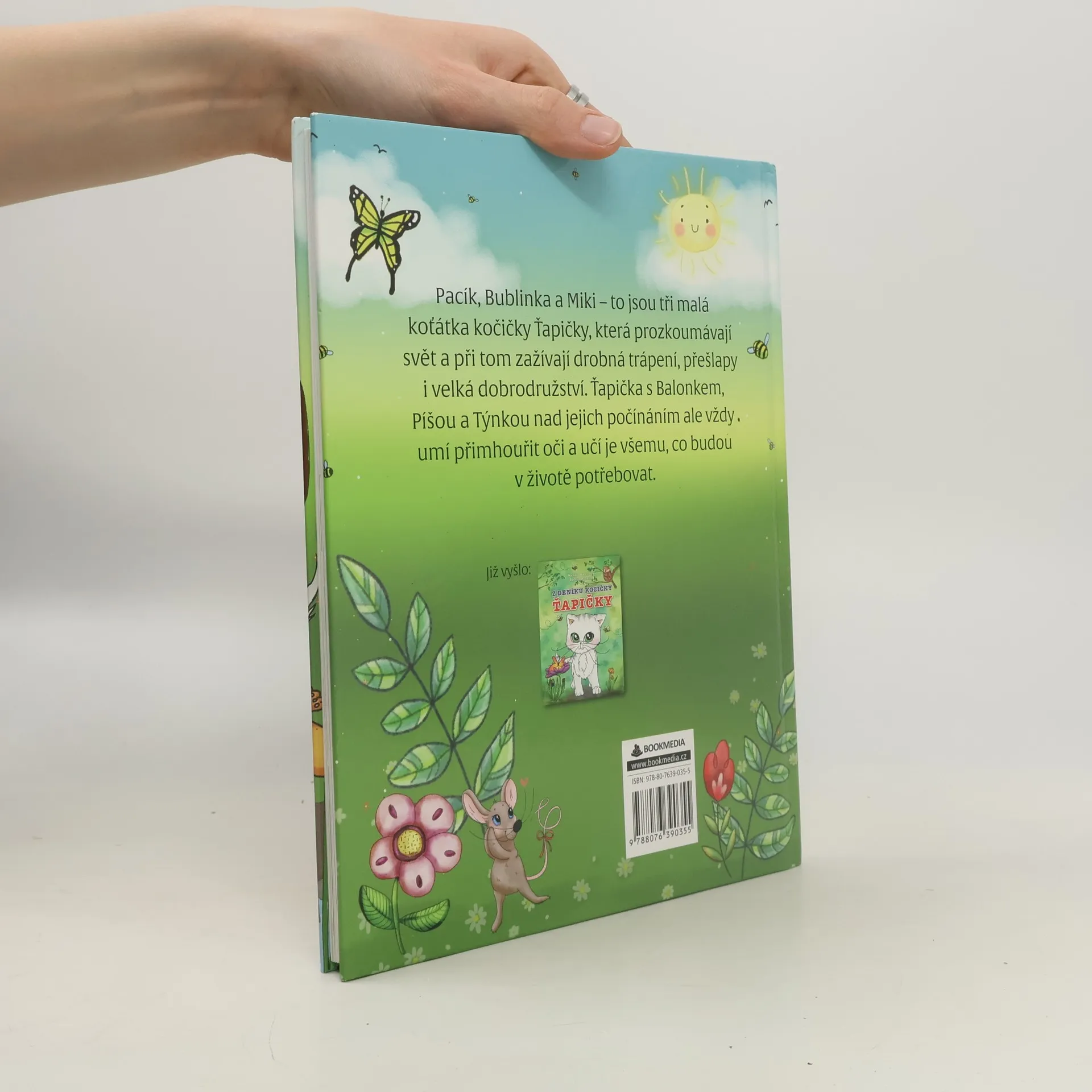 Kočičce Ťapičce se narodila tři roztomilá koťátka: Pacík, Bublinka a Miki. Ťapička je spolu s věrným kocourkem Balonkem a kočkami Píšou a Týnkou učí všemu, co budou v životě potřebovat. Ale protože jsou to koťata, je o zábavu postaráno, a tak všichni společně zažívají nejedno dobrodružství. Ťapička s Balonkem nad maléry koťátek ale vždy dokážou přimhouřit oči, protože ví, že byli jako malí úplně stejní. Příběhy volně navazují na knížku Z deníku kočičky Ťapičky. Kniha je interaktivní a děti v ní kromě příběhu najdou také úkoly, při jejichž plnění budou hledat rozdíly nebo luštit křížovku. Díky větším písmenům je knížka vhodná také pro první čtení malých školáků.