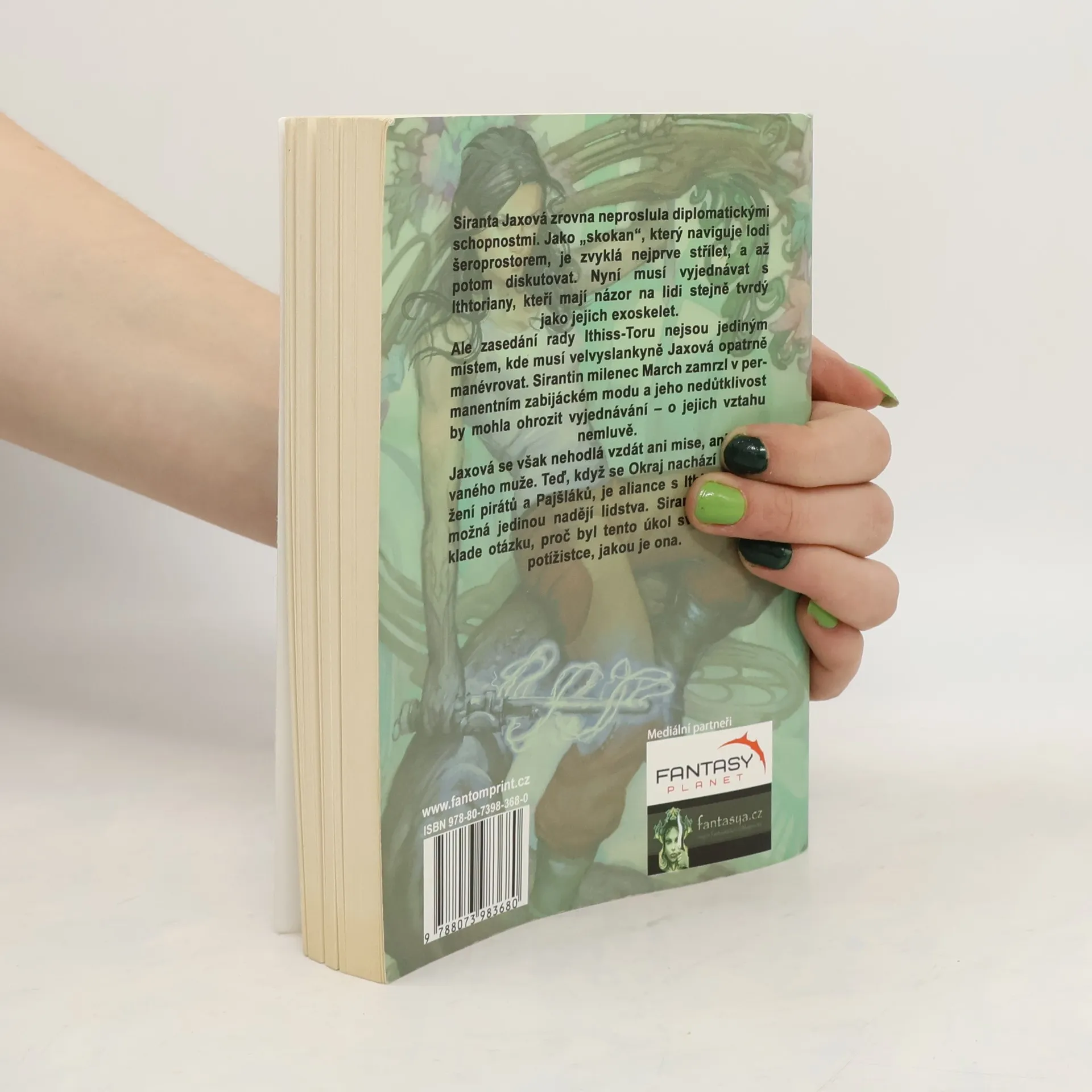 Není snadné lehce našlapovat v botách s ocelovou špičkou. Siranta Jaxová zrovna neproslula diplomatickými schopnostmi. Jako „skokan“, který naviguje lodi šeroprostorem, je zvyklá nejprve střílet, a až potom diskutovat. Nyní musí vyjednávat s Ithtoriany, kteří mají názor na lidi stejně tvrdý jako jejich exoskelet. Ale zasedání rady Ithiss-Toru nejsou jediným místem, kde musí velvyslankyně Jaxová opatrně manévrovat. Sirantin milenec March zamrzl v permanentním zabijáckém modu a jeho nedůtklivost by mohla ohrozit vyjednávání – o jejich vztahu nemluvě. Jaxová se však nehodlá vzdát ani mise, ani milovaného muže. Teď, když se Okraj nachází v obležení pirátů a Pajšláků, je aliance s Ithiss-Torem možná jedinou nadějí lidstva. Siranta si proto klade otázku, proč byl tento úkol svěřen právě potížistce, jakou je ona.