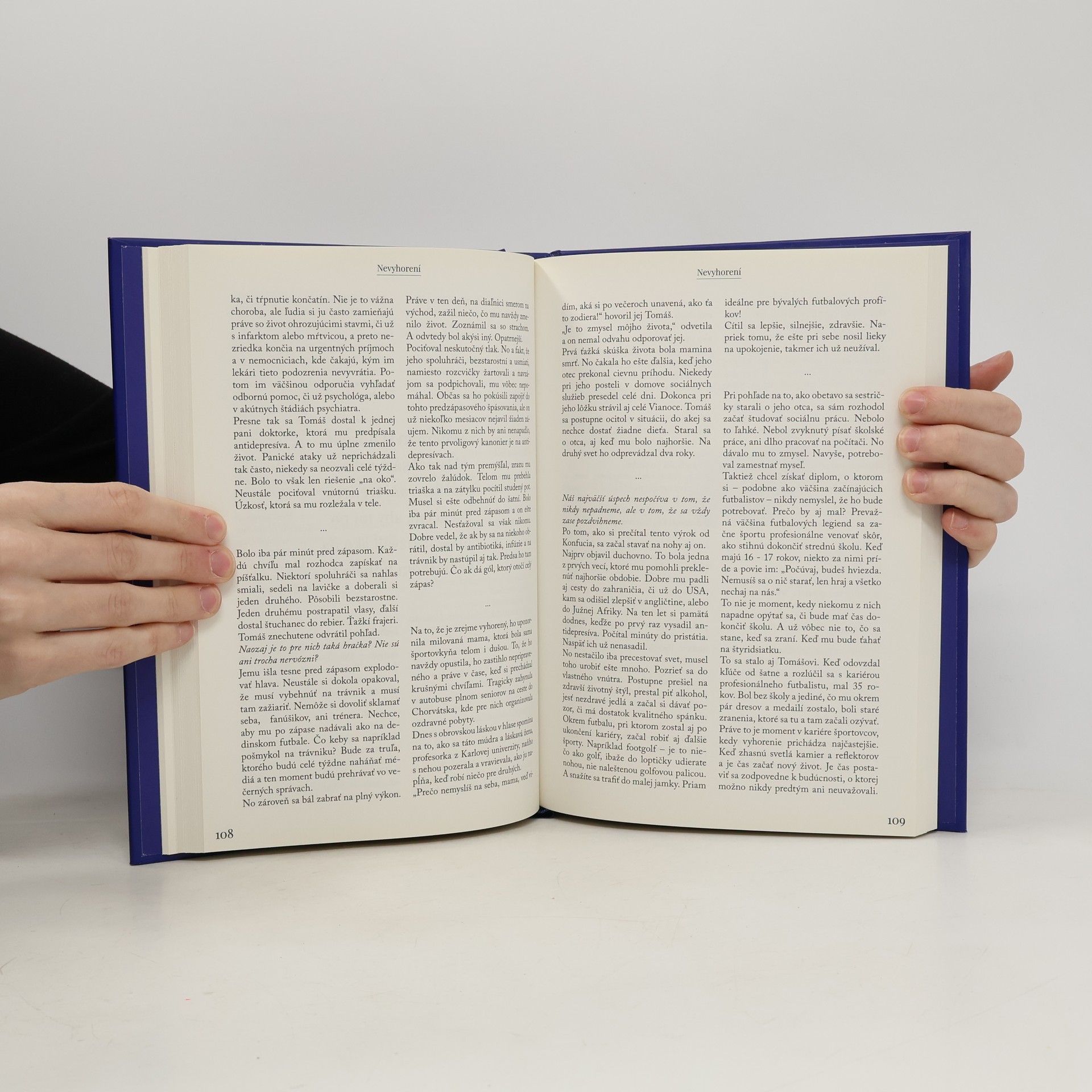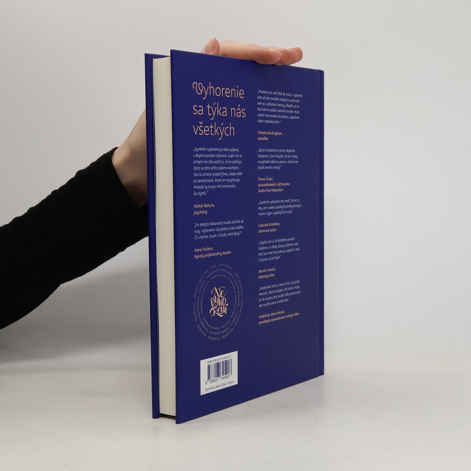 Dokážete si predstaviť, že by niekto bežal celý maratón šprintérskym tempom? Takýto výkon by bol nezvládnuteľný, rovnako ako dlhodobé fungovanie v bežnom živote pod tlakom dlhých zoznamov úloh a termínov. Tento stres vedie k syndrómu vyhorenia, ktorý niektorí opisujú ako „infarkt" duše. Kniha ukazuje príbehy 21 ľudí, ktorí si prešli vyhorením a rozhodli sa podeliť o svoje ťažké chvíle. Skúsenosti týchto Slovákov a Sloveniek dokazujú, že aj keď ide o vážnu diagnózu, existuje cesta von. Ich príbehy inšpirujú a kniha nesie názov Nevyhorení. Téma duševného zdravia a syndrómu vyhorenia sa dotýka nás všetkých, od pomáhajúcich profesií, ako sú psychiatri a učitelia, po manažérov, športovcov a umelcov. Medzi tými, ktorí sa podelili o svoje skúsenosti, sú podnikateľ roka 2018 Šimon Šicko, bývalá tenisová šestka Karol Kučera a speváčka Celeste Buckingham. Kniha tiež skúma, prečo diskusiu o vyhorení vedú často mileniáli, a ponúka množstvo vedeckých poznatkov a štatistík. Na záver je zahrnutý hĺbkový rozhovor s psychológom Matúšom Bakytom, ktorý odpovedá na odborné aj praktické otázky o tejto problematike.