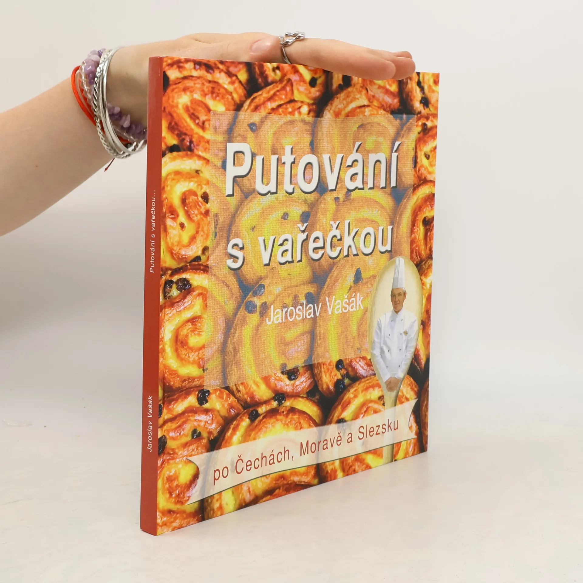 V kuchařské knize Putování s vařečkou po Čechách, Moravě a Slezsku vás mistr kuchař Jaroslav Vašák zavede do všech krajů České republiky. V každém regionu Vám představí tradiční produkty, pokrmy i nápoje, které jsou dodnes vyráběny a připravovány podle historických receptur. Dozvíte se, jaký mají původ Chodské koláče nebo Valašské frgály, odkud pochází recept na Hořické trubičky, čemu se v Praze říkalo Podskalské grundle, co je to Císařský trhanec, jaké perníky se pečou v Pardubicích, a jaké v Českém Krumlově, a mnoho dalších zajímavostí. V kuchařské knize najdete také 166 receptů na tradiční jídla z jednotlivých krajů, i recepty na pokrmy moderní kuchyně. Recepty jsou rozděleny do kapitol podle typu, od předkrmů, polévek, přes drůbež, různé druhy mas až po moučníky. Kuchařská kniha o rozsahu 160 stran obsahuje více než pět set fotografií.