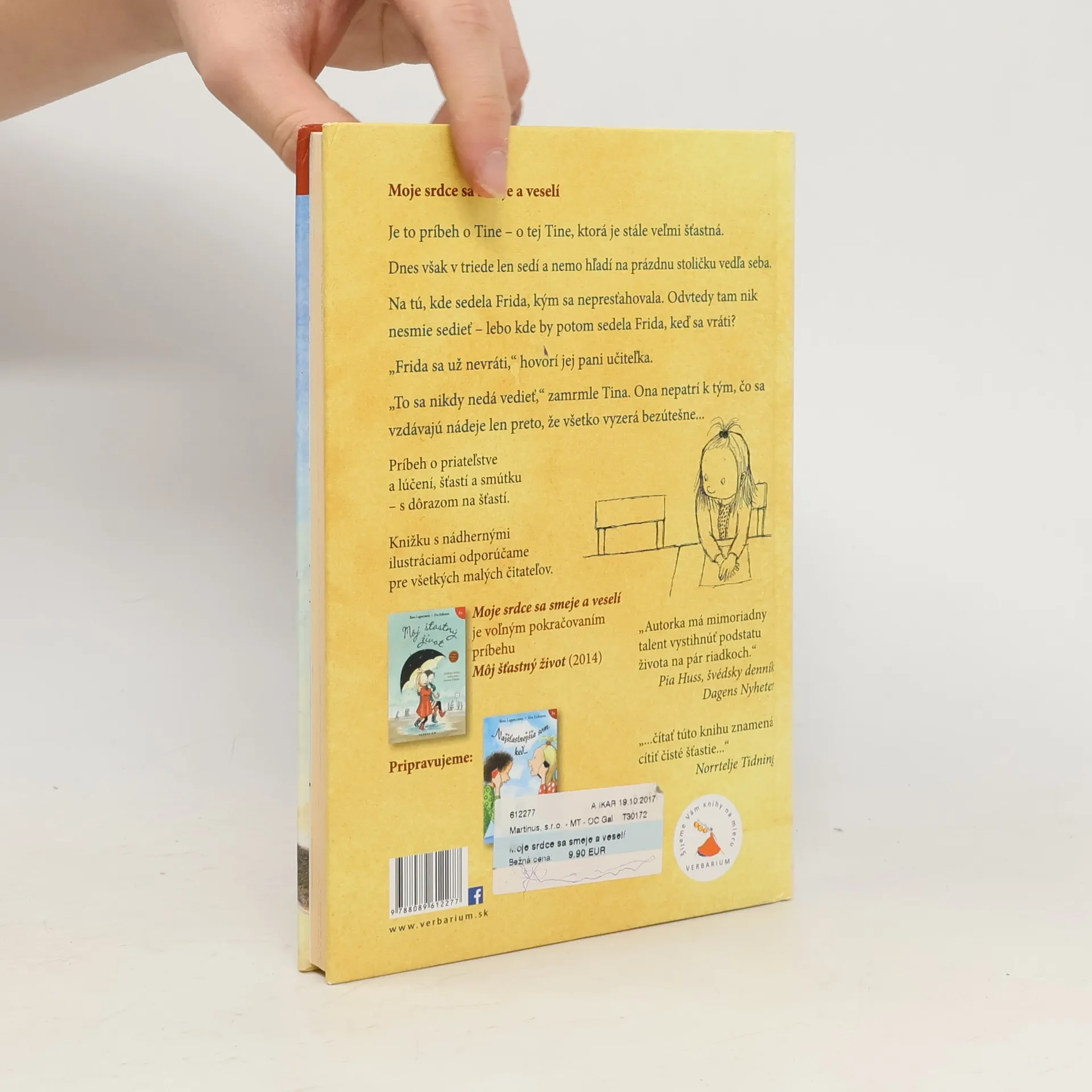 Pokračovanie príbehu " Môj šťastný život". Je to príbeh o Tine – o tej Tine, ktorá je stále veľmi šťastná. Dnes však v triede len sedí a nemo hľadí na prázdnu stoličku vedľa seba. Na tú, kde sedela Frida, kým sa nepresťahovala. Odvtedy tam nik nesmie sedieť – lebo kde by potom sedela Frida, keď sa vráti? „Frida sa už nevráti,“ hovorí jej pani učiteľka. „To sa nikdy nedá vedieť,“ zamrmle Tina. Ona nepatrí k tým, čo sa vzdávajú nádeje len preto, že všetko vyzerá bezútešne...