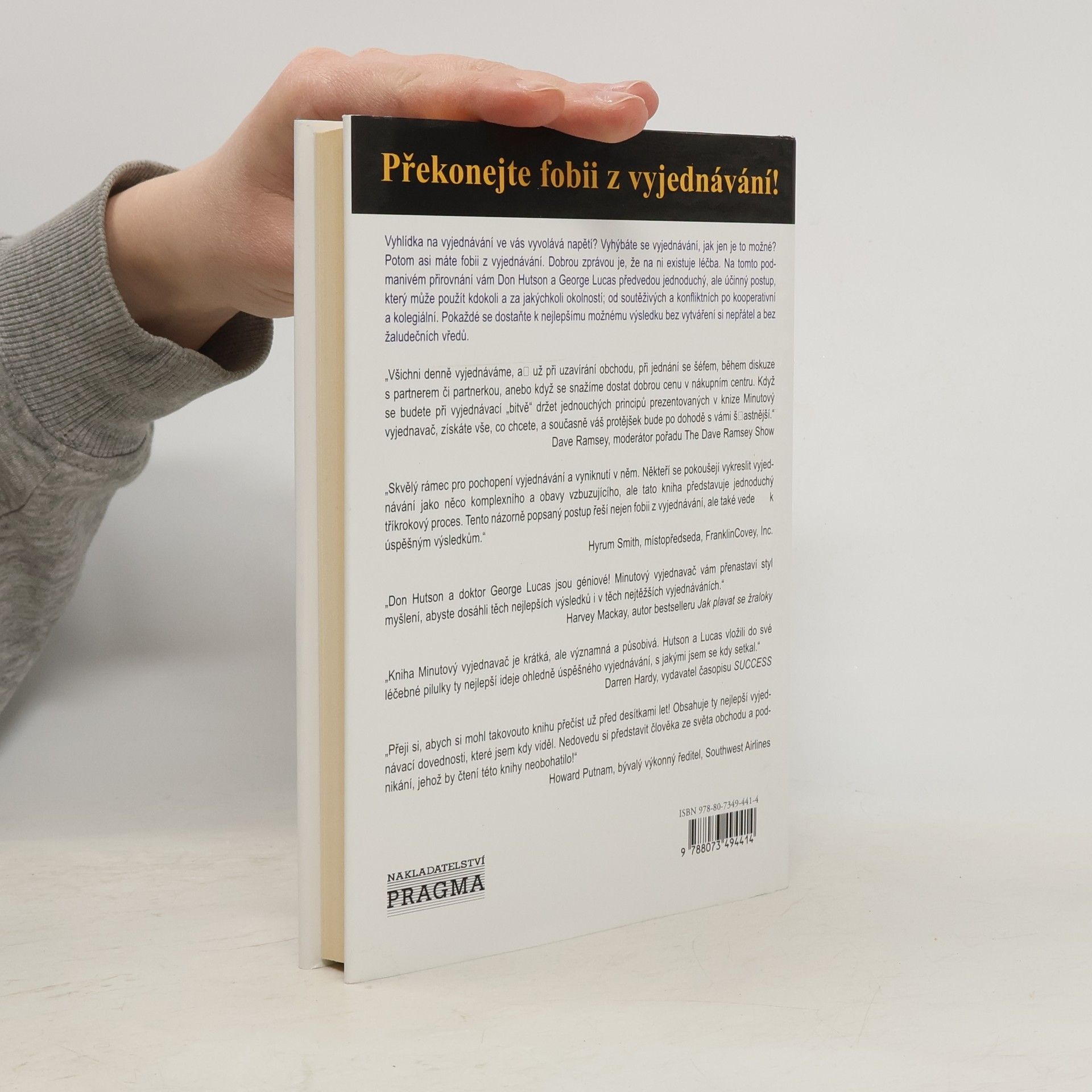 Vyhlídka na vyjednávání ve vás vyvolává napětí? Vyhýbáte se napětí, jak jen je to možné? Potom asi máte fobii z vyjednávání. Léčbou na ni je právě tato kniha. Don Hutson, George Lucas a Ken Blanchard vám předvedou jednoduchý, ale účinný postup, který může použít kdokoli a za jakýchkoli okolností, od soutěživých a konfliktních jedinců až po ty kooperativní a kolegiální. Pokaždé se dostanete k nejlepšímu výsledku bez vytváření si nepřátel a bez žaludečních vředů.