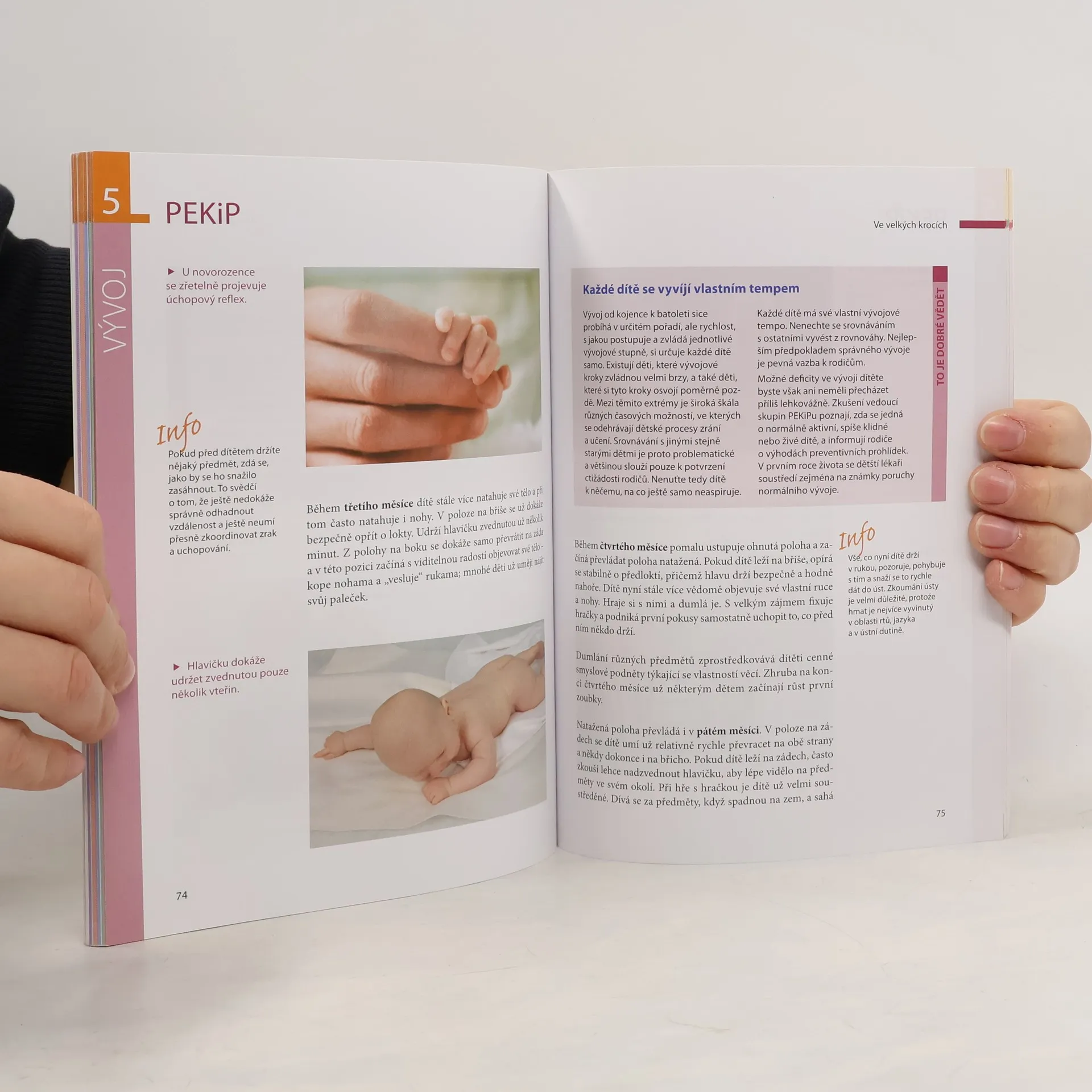 Nejoblíbenější kurzy pro miminka v jedné knize! Jen to nejlepší pro vás a vaše dítěV tomto rádci najdete nabídku nejoblíbenějších kurzů - klasické kurzy jako masáže kojenců, vodní hrátky a první zážitky s hudbou pro malé děti, PEKiP, náměty na hry a zábavné cvičení s vaším děťátkem. Zcela aktuální jsou kurzy znakové řeči miminek: Zde se vaše dítě naučí vyjadřovat svá přání pomocí pohybů rukou. Přehledné informace o kurzech vás seznámí s obsahy a cíli speciálních kurzů, o jejich délce a nákladech. Tak zjistíte, co vám oběma bude vyhovovat nejlépe. Podněty pro každý den - jednoduše i domaVyužijte nejlepší podněty jednoduše u vás doma. Jasné návody, fotografie a mnohé praktické tipy vám ukážou, jak můžete zábavně prožít první rok s vaším děťátkem. Tato příručka vás bude doprovázet během vývoje vašeho dítěte a nabídne vám, rodičům, i vašim dětem spoustu rozmanitých a zábavných podnětů.