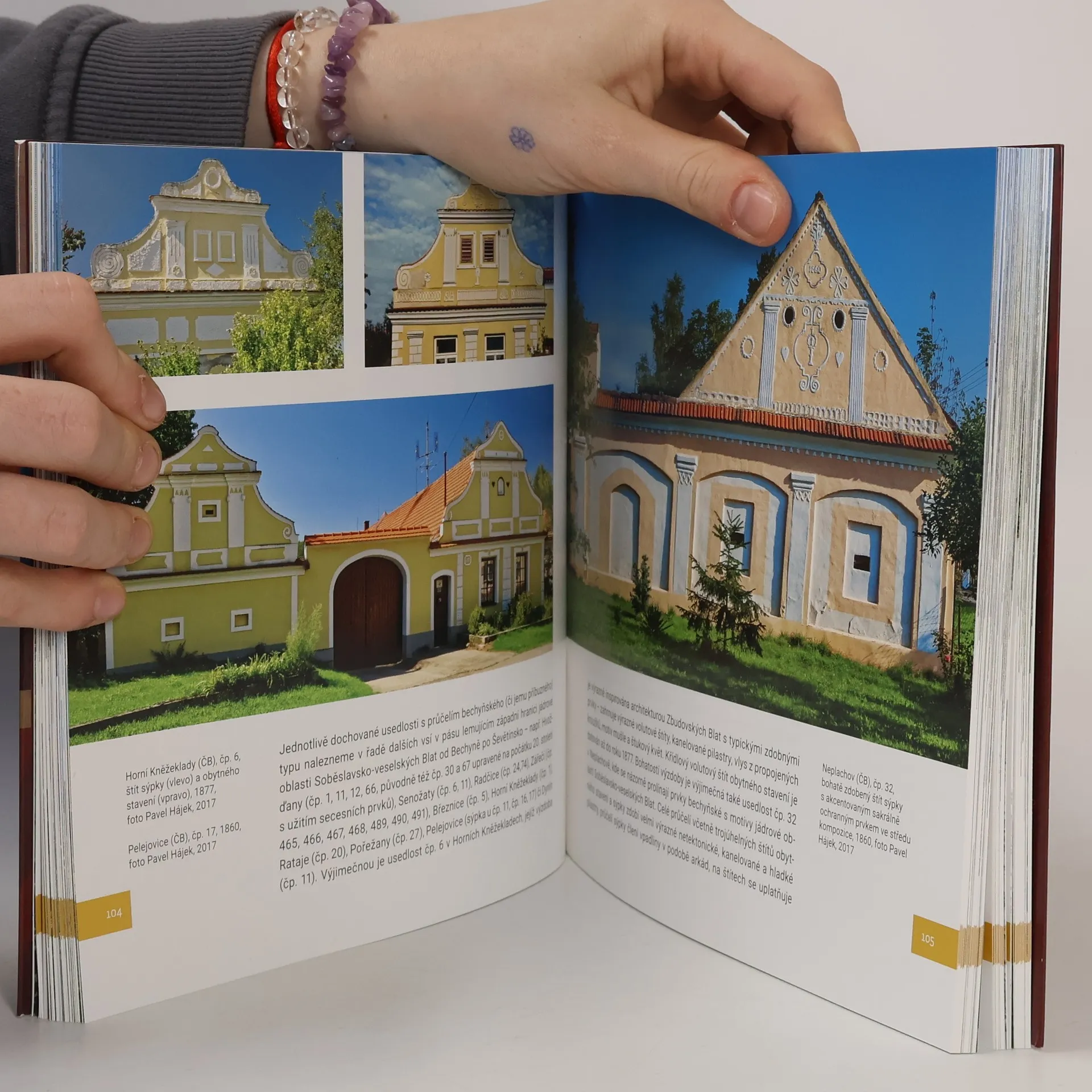 Obrazově bohatě vybavená publikace vychází k 20. výročí zápisu Holašovic na Seznam světového kulturního dědictví UNESCO. Kniha přináší ucelený přehled typové skladby jihočeské venkovské architektury. Představuje nejen Holašovice, ale i typické ukázky zděných staveb v dalších regionech, vycházejících z obdobných vývojových tendencí, odlišujících se však rozdílným výtvarným pojetím zdobných prvků. Průčelí těchto domů odrážejí individualitu venkovských zednických mistrů, z nichž jen velmi málo známe jménem. Samostatné kapitoly jsou věnovány oblasti Blanského lesa, vizuálně velmi atraktivní blatské architektuře spojené se zednickými rody Patáků a Šochů, tvorbě Jakuba Bursy i specifickým rysům venkovského stavitelství na Písecku, Strakonicku, Blatensku, Prachaticku, Třeboňsku, Jindřichohradecku či Mladovožicku. Kontext vesnických domů se zdobnými průčelími doplňuje výklad o středověkých a raně novověkých špýcharových domech na Doudlebsku, rozlehlých vierkantech na Novohradsku a Českokrumlovsku i různých typech roubených a poloroubených staveb na Šumavě i severu Písecka a Táborska.
