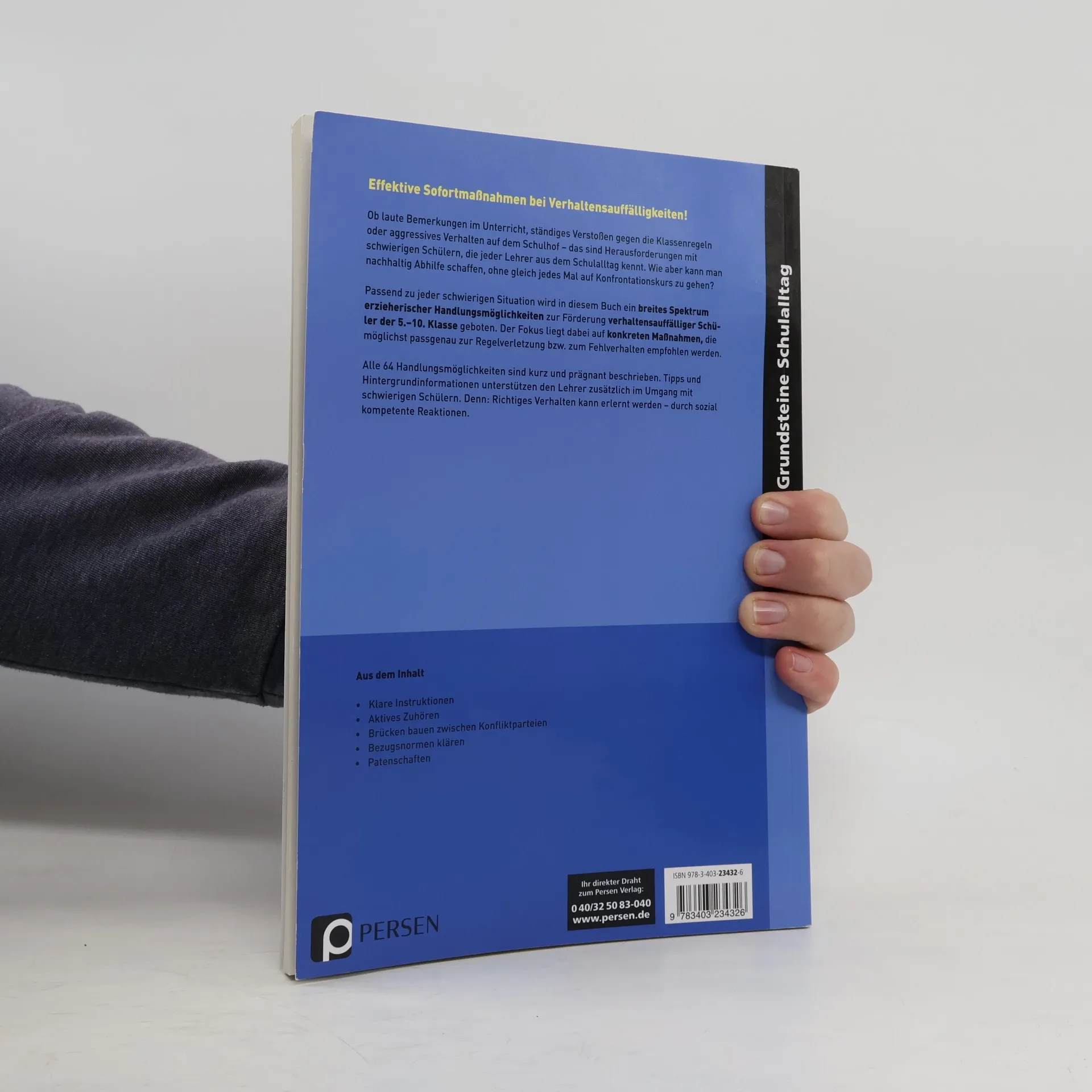 So bekommen Sie Verhaltensauffälligkeiten von Schülern der 5.-10. Klasse in den Griff! Laute Bemerkungen im Unterricht, ständiges Verstoßen gegen die Klassenregeln oder aggressives Verhalten auf dem Schulhof - das sind Probleme, die im Schulalltag mit schwierigen Schülern auftauchen. Passend für jede schwierige Situation wird in diesem Buch ein breites Spektrum erzieherischer Handlungsmöglichkeiten zur Förderung verhaltensauffälliger Schüler geboten: konkrete Maßnahmen wie geplantes Ignorieren, Verhaltensverträge, reflektierende Krisengespräche oder die Konfliktbewältigung ohne Niederlagen, die für die Jugendlichen nachvollziehbar und akzeptabel sind. Alle Handlungsmöglichkeiten sind kurz und prägnant beschrieben. Tipps und Hintergrundinformationen unterstützen Sie zusätzlich beim Umgang mit schwierigen Schülern!