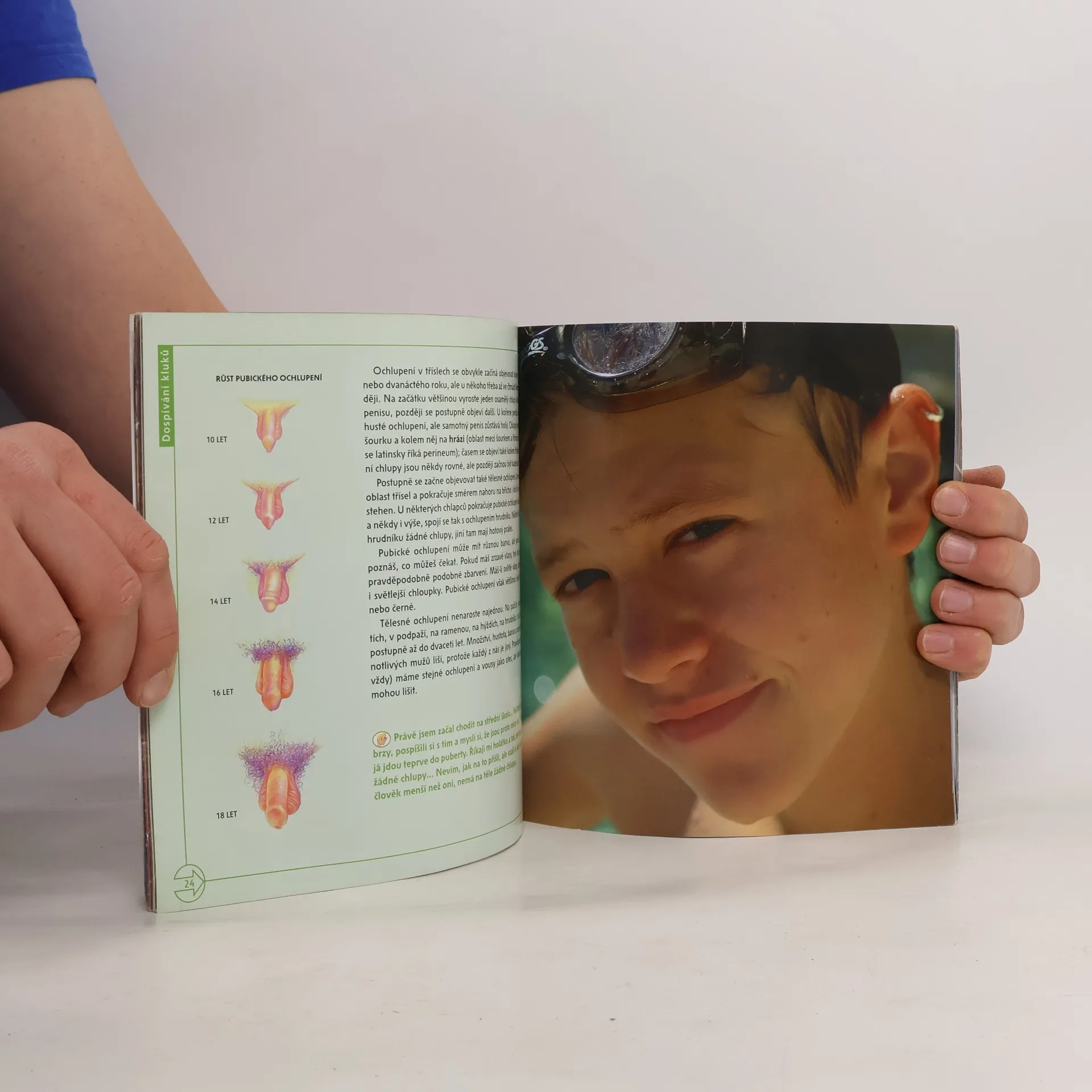 Knížka otvírá téma chlapecké puberty, období mnoha pozorovatelných i skrytých změn. Vede kluky k tomu, aby svou pubertu přijali bez předsudků a s otevřeností, která jim umožní mluvit s kamarády i důvěryhodnými dospělými o všech soukromých a někdy i velmi intimních problémech, které je právě trápí. Knížka vychází z drobných příběhů kluků i dnes již dospělých mužů, kteří se svěřují se svými pubertálními pocity a zážitky. Autor si všímá i tělesných znaků dívčí puberty a naznačuje klukům, jaké psychické změny pravděpodobně prožívají jejich stejně staré kamarádky. Geoff Price vnímá pubertu jako jedno z velkých dobrodružství života, které nabízí každému klukovi velkou šanci, jak se postupně stát sám sebou a dospět ke zralé dospělosti. Tuto barevně ilustrovanou publikaci věnoval autor především klukům na prahu puberty, ale bude jen dobře, když do ní nahlédnou i jejich rodiče, učitelé a vychovatelé