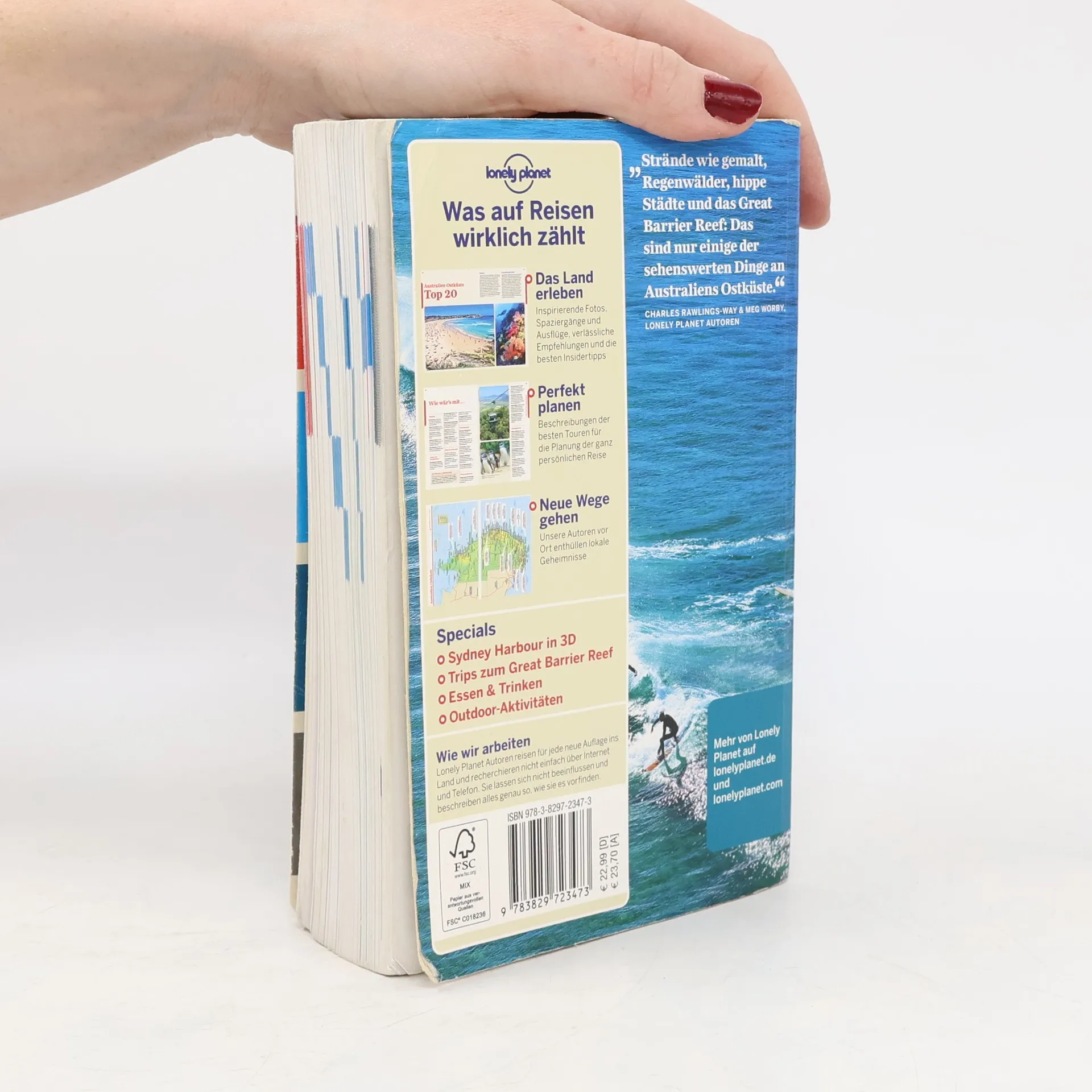 Mit dem Lonely Planet Australien Ostküste auf eigene Faust immer der Küste entlang! Etliche Monate Recherche stecken im Kultreiseführer für Individualreisende. Autoren geben sachkundige Hintergrundinfos zum Reiseland, liefern Tipps und Infos für die Planung der Reise, beschreiben alle interessanten Sehenswürdigkeiten mit aktuellen Öffnungszeiten und Preisen und präsentieren ihre persönlichen Entdeckungen und Tipps. Und auch Globetrotter, die abseits der ausgetretenen Touristenpfade unterwegs sein möchten, kommen auf ihre Kosten: Unberührte Nationalparks, spektakuläre Küstenstraßen, schräge Museen und einsame Stränden. Wo übernachten und essen? Für jedes Reiseziel gibt es eine Auswahl an Unterkünften und Restaurants für jeden Geschmack und Geldbeutel. Abgerundet wird der Guide durch Übersichts- und Detailkarten, einem Farbkapitel zu den 20 Top-Highlights, Themen-Specials, Reiserouten, fundierte Hintergrundinformationen und - damit Sie gut durch´s Land kommen - einen Sprachführer. Der Lonely-Planet-Reiseführer Australien Ostküste ist ehrlich, praktisch, witzig geschrieben und liefert inspirierende Eindrücke und Erfahrungen. Sie möchten nach Down Under? Ob Backpacker, Pauschalreisender oder 5-Sterne-Tourist - mit dem Lonely Planet im Gepäck sind Sie garantiert bestens gerüstet. Willkommen am Küstenstreifen der Träume!