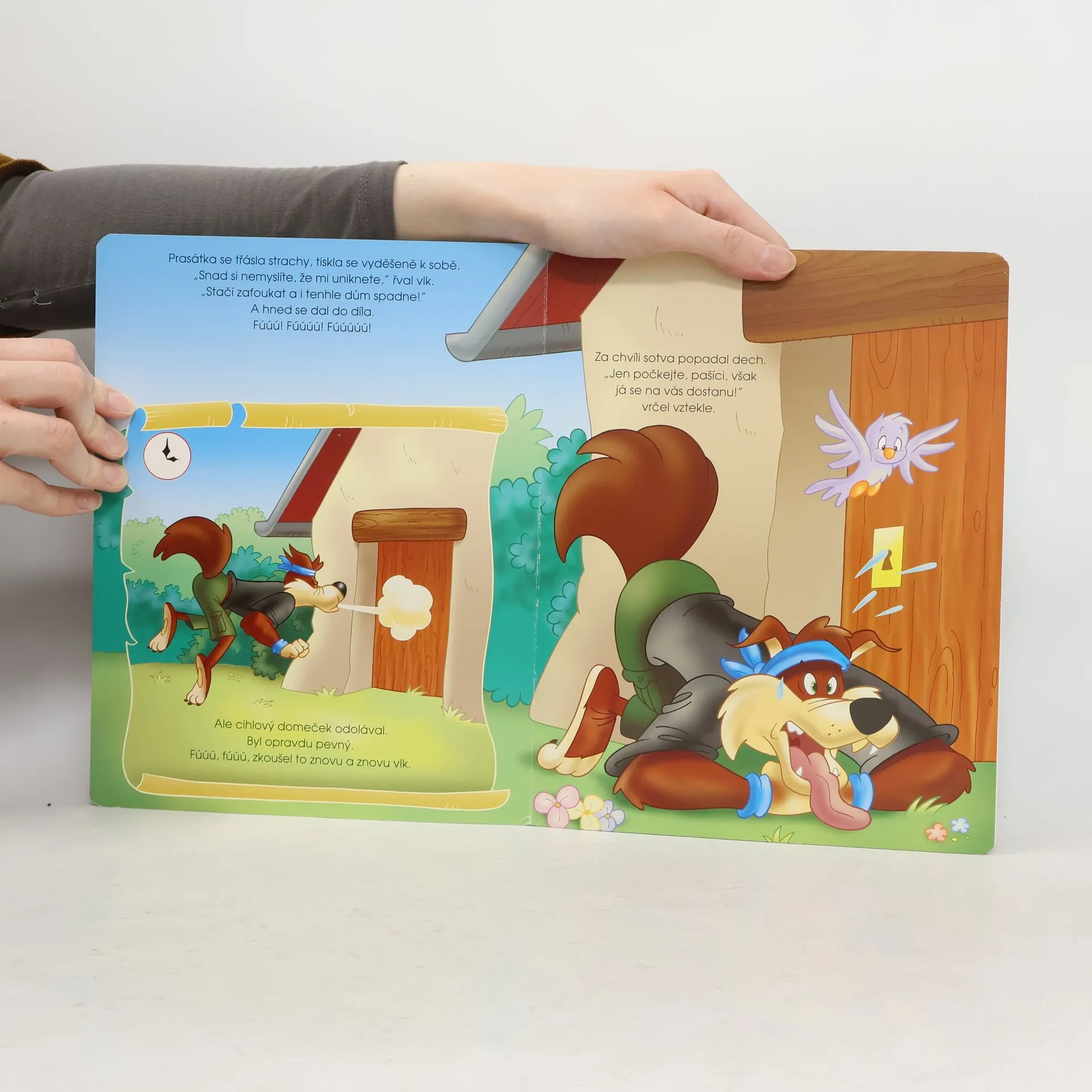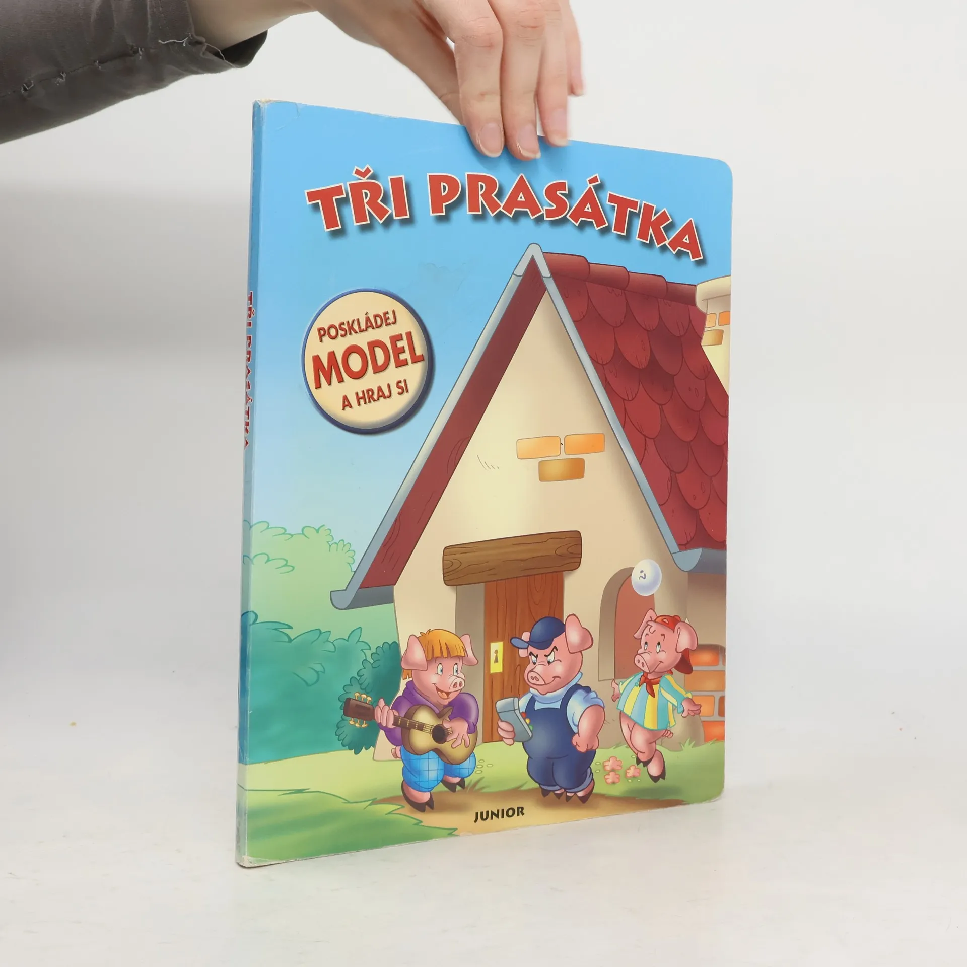 Tahle pohádková knížka je opravdu mimořádná. Nejenom že se dítě doví, jak se prasátka přesvědčila, že každá práce se má dělat důkladně, a jak vyzrála na zlého vlka, ale také poslouží jako báječná hračka. Stačí, když bude mít šikovné ruce a vyloupne jednotlivé dílky. Může pak podle návodu postavit domeček tří prasátek, rozestavit jejich figurky i vlka a celou pohádku si znovu zahrát.