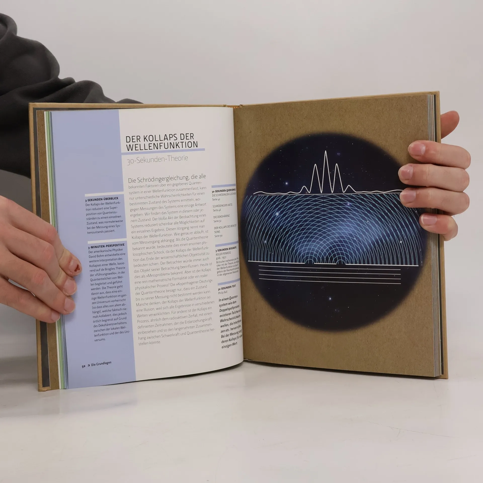 Quantentheorie in 30 Sekunden führt mit der Präsentation der 50 bedeutsamsten Erkenntnisse und Ideen zur Quantentheorie in einen atemberaubend komplexen Bereich der Physik. In einer Zeit, in der die Quantenphysik in der Elektronik allgegenwärtig ist und neue Forschungserkenntnisse für Schlagzeilen sorgen, werden Sie in Parallelwelten eintauchen und damit alles erfahren, um die Unbestimmheitsrelation verstehen und die Geheimnisse der Quantenverschränkung enthüllen zu können.