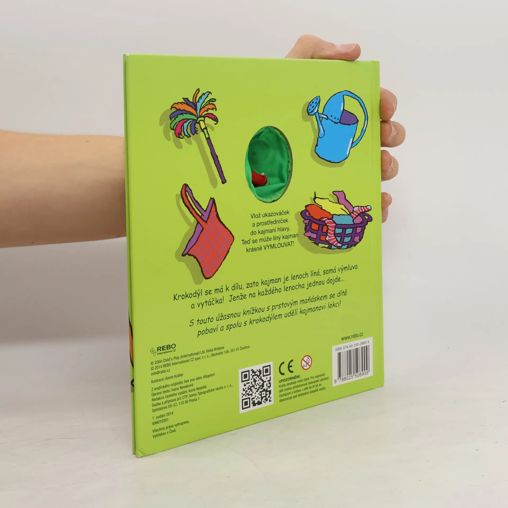 Edice Prstových knížek s jednoduchým příběhem a veselými ilustracemi jsou opatřeny textilním návlekem na prsty – maňáskem. Stačí do něj vložit ukazováček a prostředníček a knížka rázem ožije! Krokodýl se má k dílu, zato kajman je lenoch líná, samá výmluva a vytáčka! Jenže na každého lenocha jednou dojde... S touto úžasnou knížkou s prstovým maňáskem se dítě pobaví a spolu s krokodýlem udělí kajmanovi lekci! Rozvíjeno je následující: slovní zásoba, řečové schopnosti, fantazie, jemná motorika