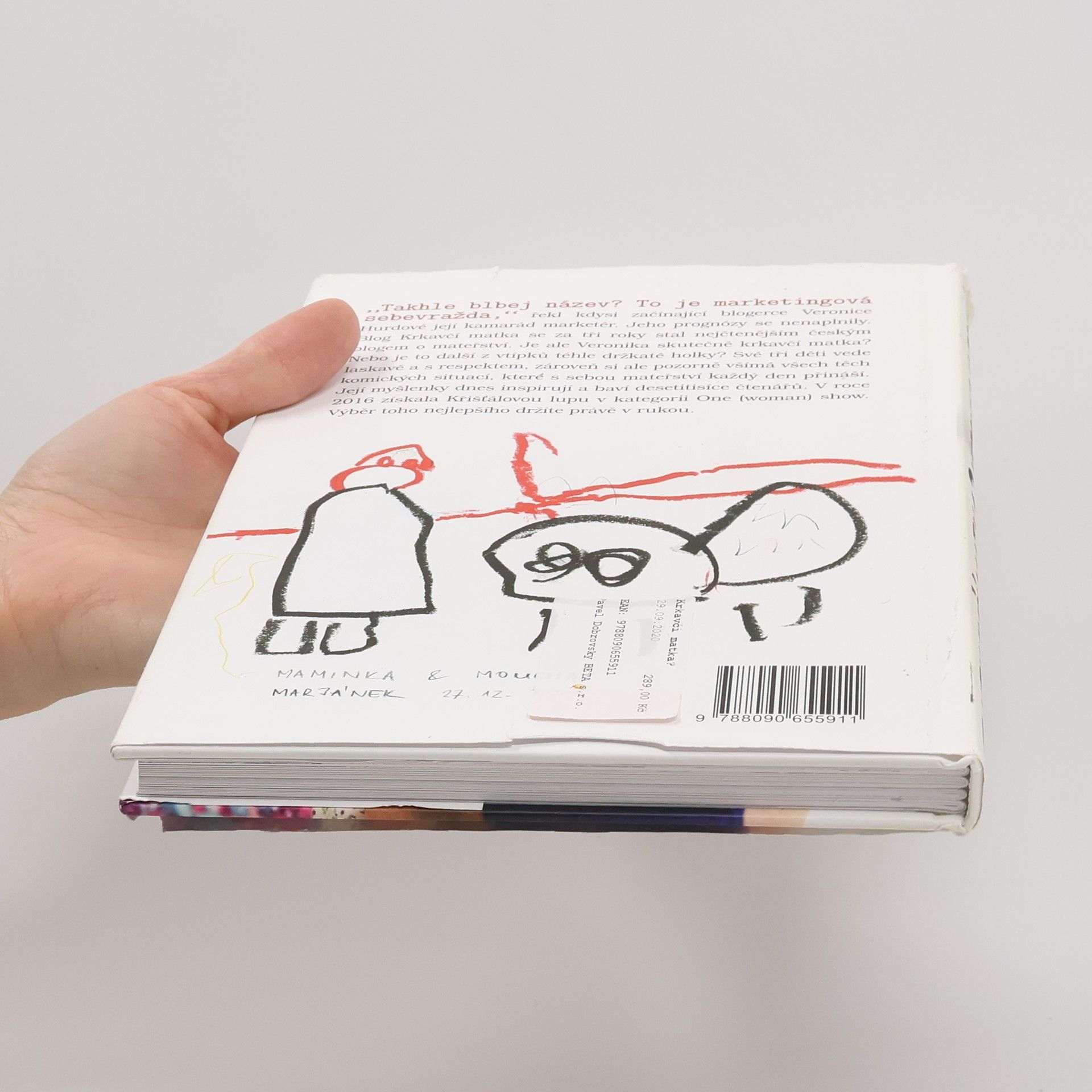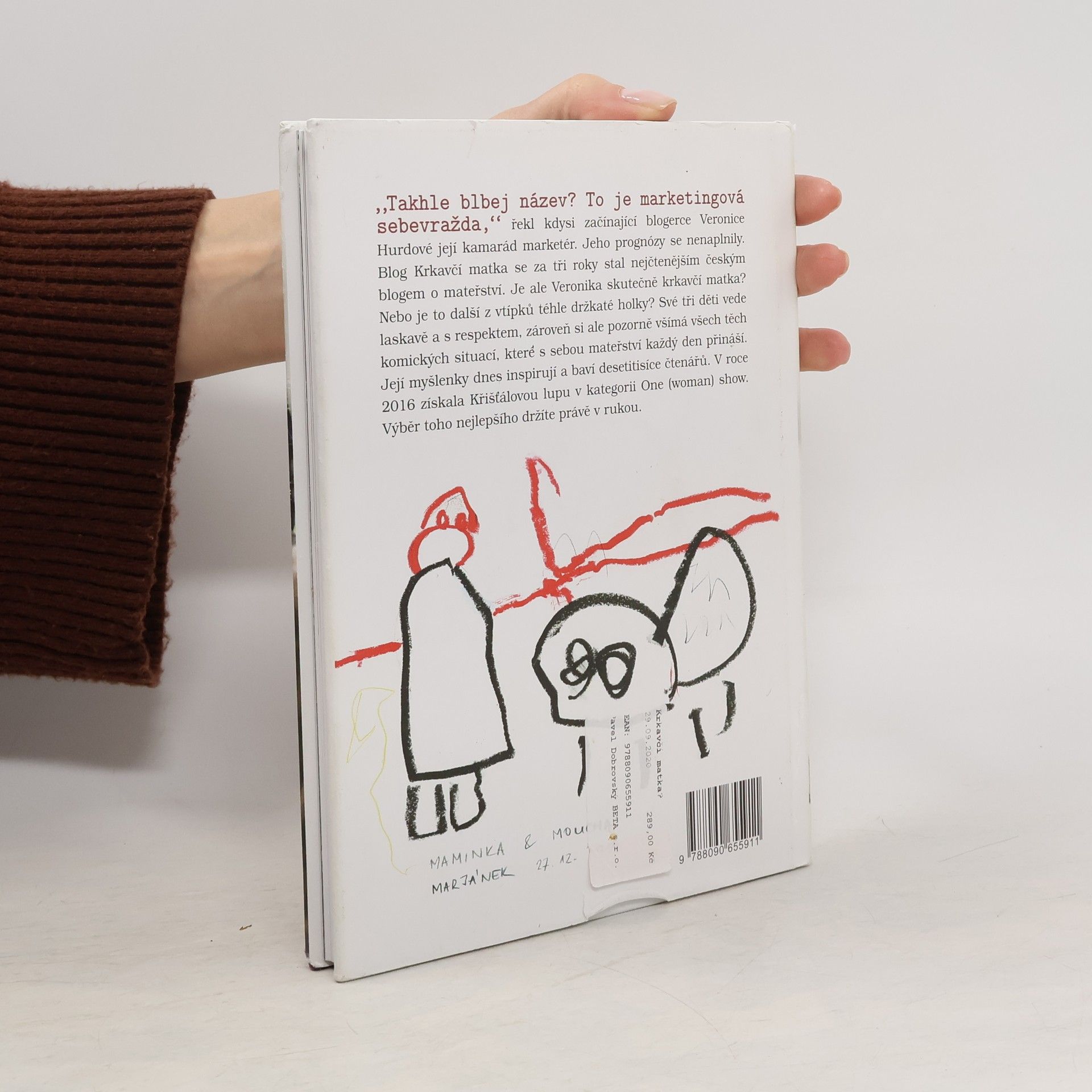 „Takhle blbej název? To je marketingová sebevražda,“ řekl kdysi začínající blogerce Veronice Hurdové její kamarád marketér. Jeho prognózy se nenaplnily. Blog Krkavčí matka se za tři roky stal nejčtenějším českým blogem o mateřství. Je ale Veronika skutečně krkavčí matka? Nebo je to další z vtípků téhle držkaté holky? Své tři děti vede laskavě a s respektem, zároveň si ale pozorně všímá všech těch komických situací, které s sebou mateřství každý den přináší. Její myšlenky dnes inspirují a baví desetitisíce čtenářů. V roce 2016 získala Křišťálovou lupu v kategorii One (woman) show. Výběr toho nejlepšího držíte právě v rukou. Aniž by v tom byl záměr, jdu celý život mimo hlavní proud. Na rozdíl od svého patnáctiletého já se za to dnes už nestydím. Mám víc dětí než rukou. Gréta, Marján a Janek se jmenují. Ty děti, ne ruce. Když děti spí, píšu blog a FB Krkavčí matka. Miluju les, nohy v teple a svého muže Honzu, který na mě čeká v nebi. Děsí mě pobytové zájezdy, snahy o škatulkování a nesmířliví lidé se zavřenými hlavami.