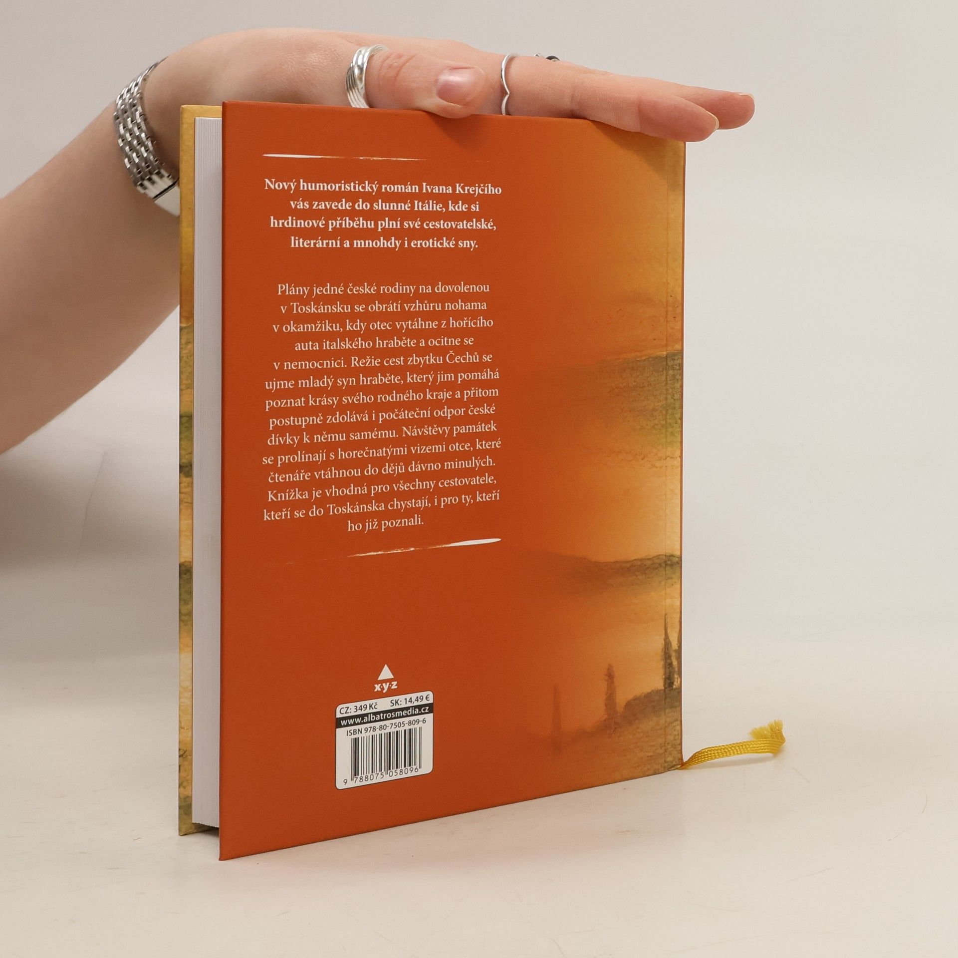 Nekonvenční průvodce místy a dějinami Toskánska. Nový humoristický román Ivana Krejčího vás zavede do slunné Itálie, kde si hrdinové příběhu plní své cestovatelské, literární a mnohdy i erotické sny. Plány jedné české rodiny na dovolenou v Toskánsku se obrátí vzhůru nohama v okamžiku, kdy otec vytáhne z hořícího auta italského hraběte a ocitne se v nemocnici. Režie cest zbytku Čechů se ujme mladý syn hraběte, který jim pomáhá poznat krásy svého rodného kraje a přitom postupně zdolává i počáteční odpor české dívky k němu samému. Návštěvy památek se prolínají s horečnatými vizemi otce, které čtenáře vtáhnou do dějů dávno minulých. Knížka vhodná pro všechny cestovatele, kteří se do Toskánska chystají, i pro ty, kteří ho již poznali.