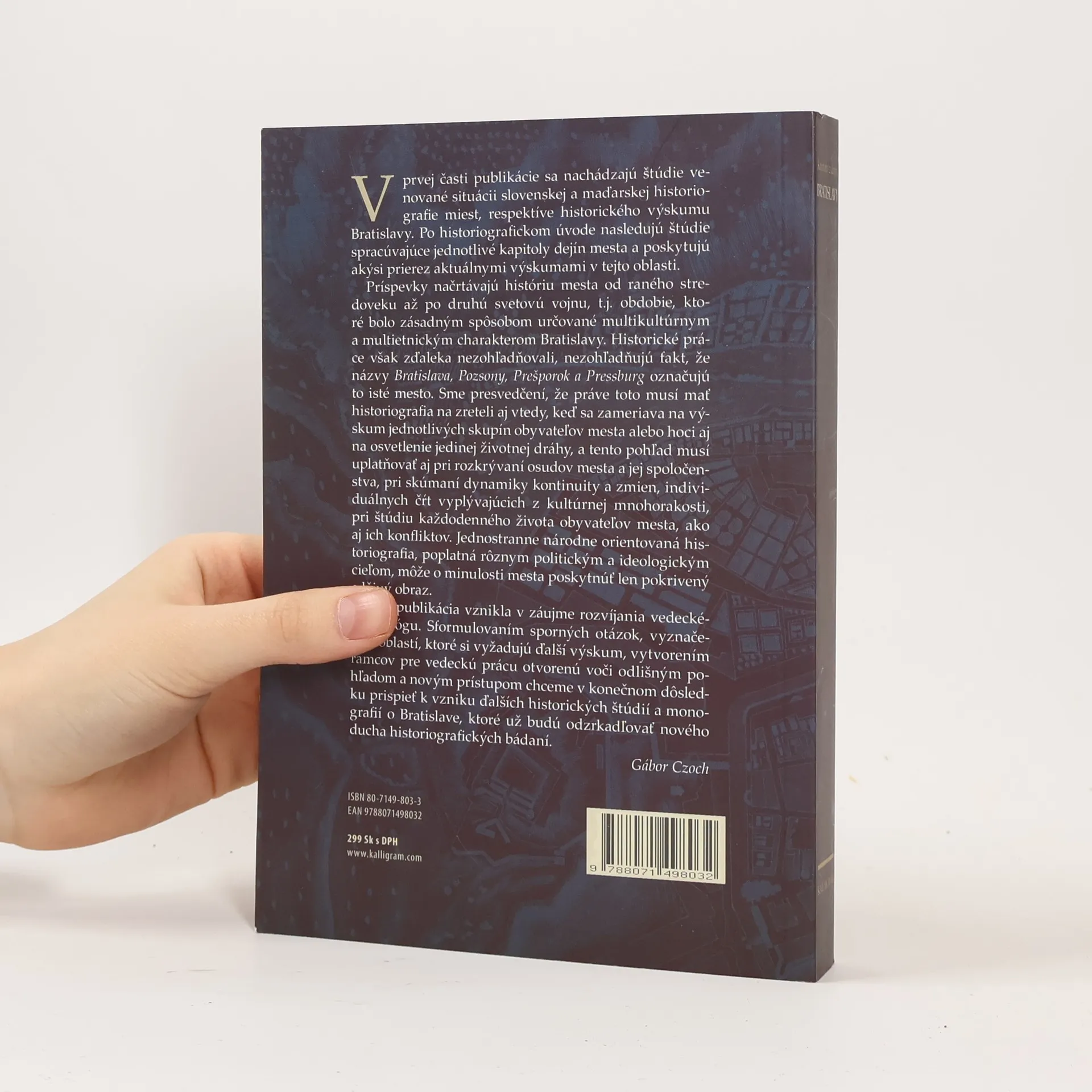Prvoradým cieľom tejto zbierky štúdií je ponúknuť širšej čitateľskej verejnosti modernú historickú a historiografickú prácu o Bratislave ako meste od štrnásteho do dvadsiateho storočia. Prvá časť práce sa zaoberá všeobecne teóriou písania o dejinách miest, druhá, širšia časť sa venuje výskumom dejín Bratislavy a všíma si život vo viacnárodnej Bratislave – každodenné spolužitie a konflikty, život mestskej elity a slávneho meštianstva. Zároveň sa zaoberá aj parlamentom, zástojom mesta v štátnej politike, ako i vzdelaním, úlohou umenia v živote mesta. Editori: Gábor Czoch (hlavný editor), Aranka Kocsis, Árpád Tóth Preklad: Juliana Szolnokiová, Eva Kroupová, Gizella Szabómihályová, Galina Sándorová Z obsahu: Historiografia miest Mestská správa v stredoveku a vo včasnom novoveku Prvá polovica 19. storočia a národné obrodenie Politika a etnicita v 20. storočí