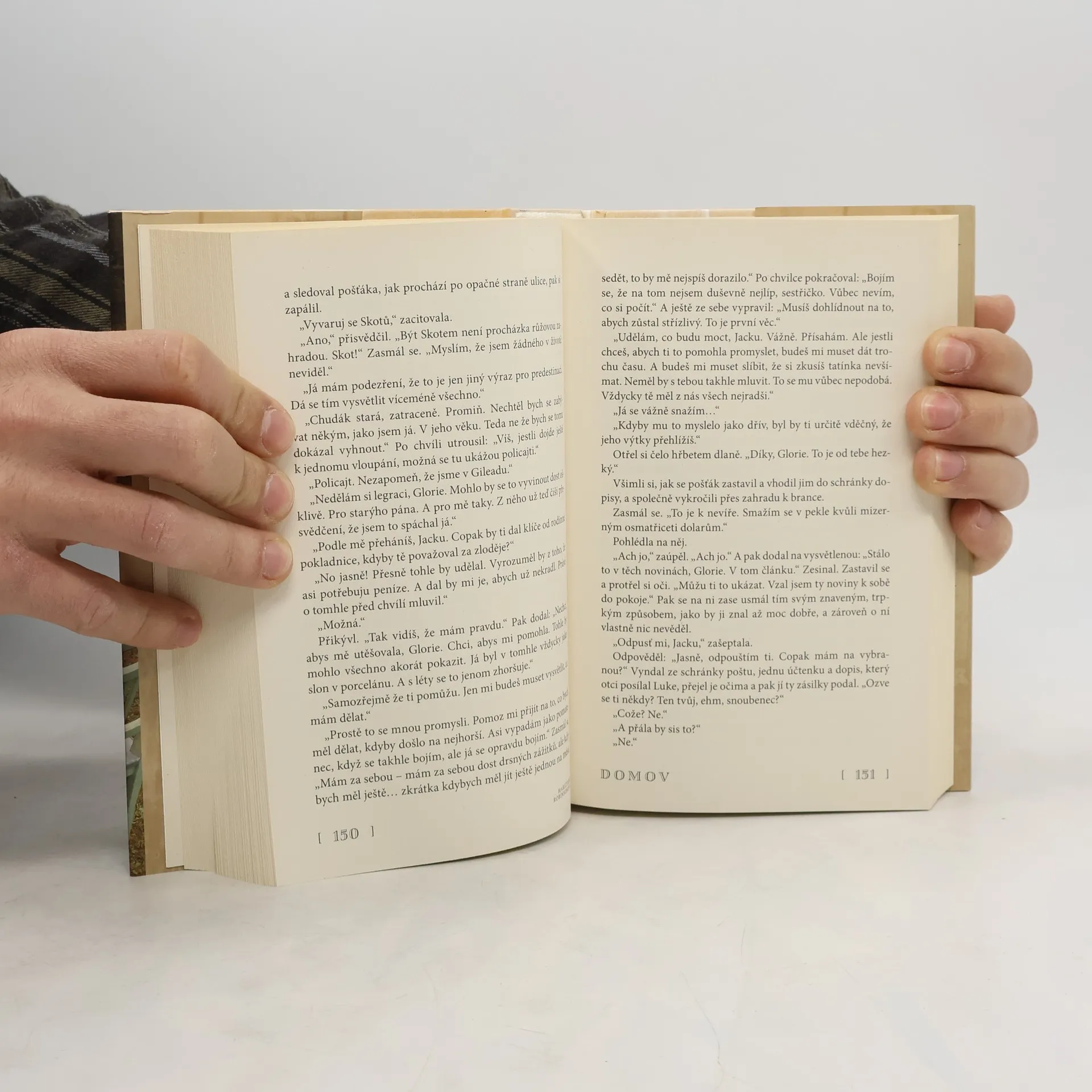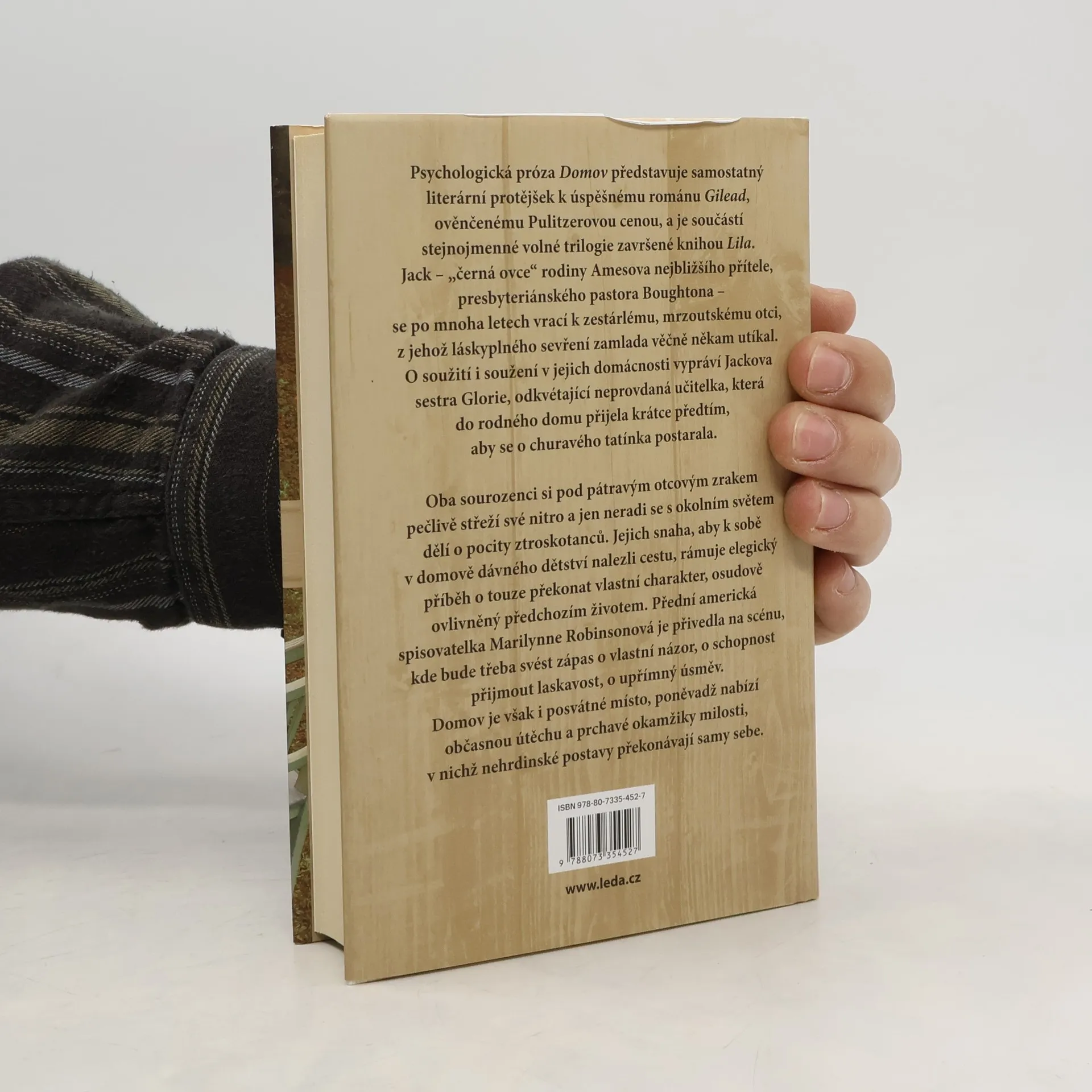 Psychologická próza Domov představuje samostatný literární protějšek k úspěšnému románu Gilead, ověnčenému Pulitzerovou cenou, a je součástí stejnojmenné volné trilogie završené knihou Lila. Jack – „černá ovce“ rodiny Amesova nejbližšího přítele, presbyteriánského pastora Boughtona – se po mnoha letech vrací k zestárlému, mrzoutskému otci, z jehož láskyplného sevření zamlada věčně někam utíkal. O soužití i soužení v jejich domácnosti vypráví Jackova sestra Glorie, odkvétající neprovdaná učitelka, která do rodného domu přijela krátce předtím, aby se o churavého tatínka postarala. Oba sourozenci si pod pátravým otcovým zrakem pečlivě střeží své nitro a jen neradi se s okolním světem dělí o pocity ztroskotanců. Jejich snaha, aby k sobě v domově dávného dětství nalezli cestu, rámuje elegický příběh o touze překonat vlastní charakter, osudově ovlivněný předchozím životem. Přední americká spisovatelka Marilynne Robinsonová je přivedla na scénu, kde bude třeba svést zápas o vlastní názor, o schopnost přijmout laskavost, o upřímný úsměv. Domov je však i posvátné místo, poněvadž nabízí občasnou útěchu a prchavé okamžiky milosti, v nichž nehrdinské postavy překonávají samy sebe.