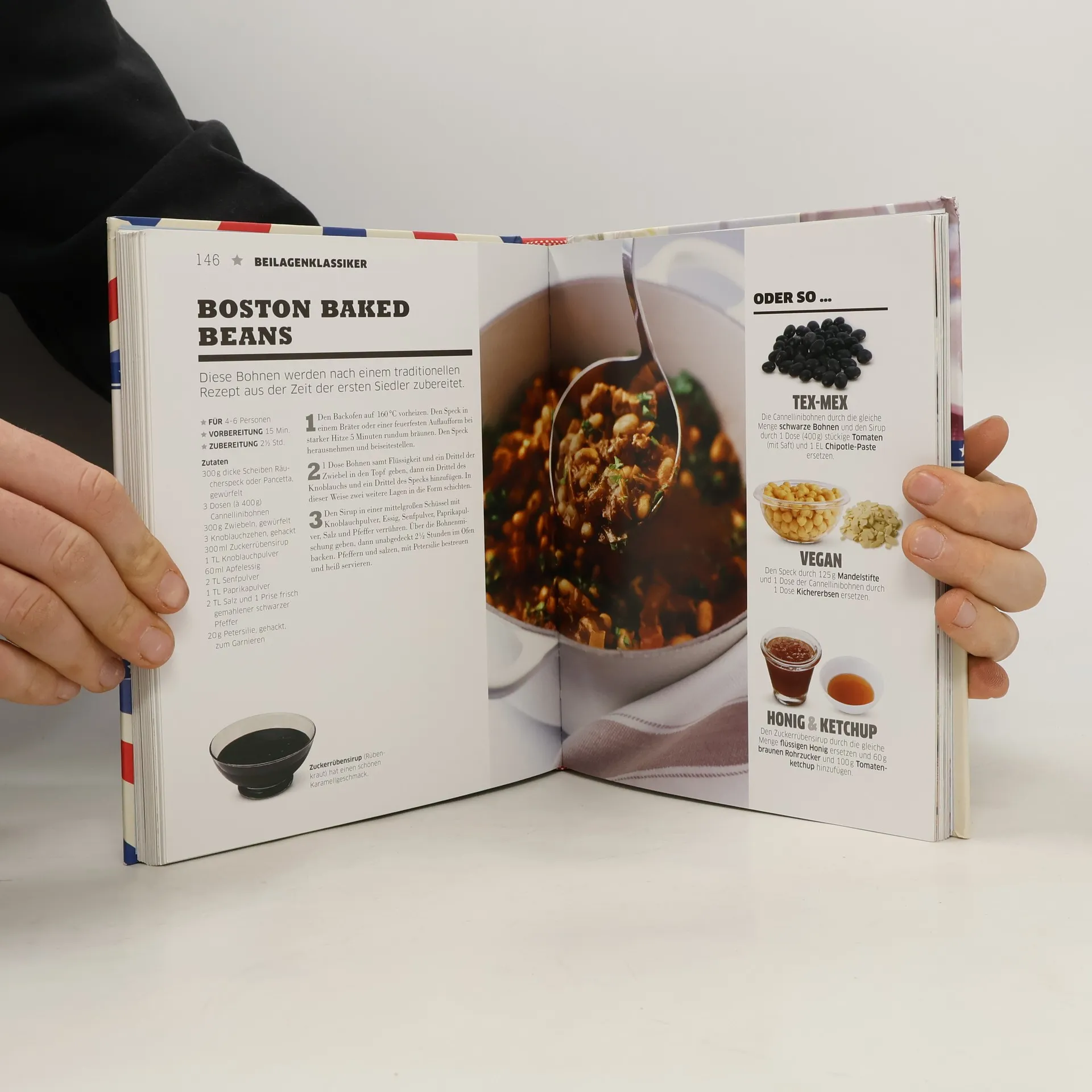 'Amerika: Das Kochbuch' räumt mit dem Vorurteil auf, dass die amerikanische Küche hauptsächlich aus Frittiertem und Gebackenem bestehe. Denn Amerikas Küche ist so abwechslungsreich und interessant wie seine Bewohner. Die riesige Nation hat unterschiedlichste Kochtraditionen. Sie lassen sich meist ganz einfach auf die Menschen zurückführen, die sich in einer Region als Erste ansiedelten. So zeigt sich in Louisiana im Süden der Einfluss der französischen Siedler, die Großstädte hingegen haben als Schmelztiegel der unterschiedlichsten Nationen spannende Fusion-Gerichte hervorgebracht. Ob Pfirsich-Salsa mit Tortillachips, French Toast mit Erdbeerfüllung, Schweinekotelett mit Apfel-Bacon-Kompott oder Boston Cream Trifle – hier werden über 150 Rezeptklassiker vorgestellt, denen man in amerikanischen Haushalten landauf, landab begegnet. Die Gerichte sind auf neue Weise interpretiert, moderner und leichter gemacht. Vorschläge für Rezeptvarianten sorgen für viel Abwechslung beim Kochen und liefern auch Tipps für kalorienärmere, aber geschmacklich gleichermaßen überzeugende Alternativen. Eingestreute bebilderte Schritt-für-Schritt-Anleitungen zeigen elementare Küchentechniken. Atmosphärisch gestaltete Doppelseiten zu einzelnen Regionalküchen wie 'So schmeckt der Nordosten' stellen kulinarische Wurzeln vor und machen Lust auf eine reiche Kochkultur. Enjoy!