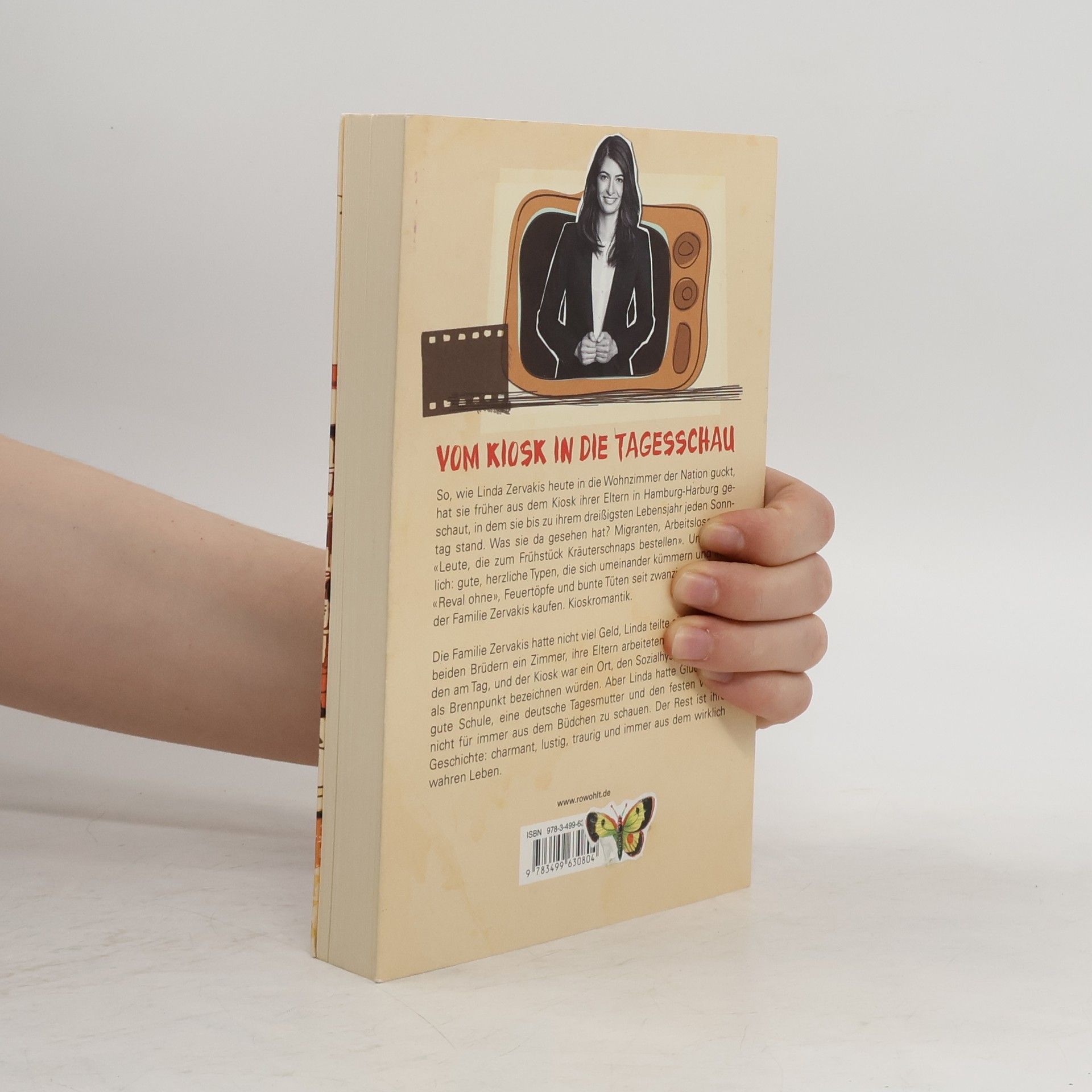 Vom Kiosk in die Tagesschau So, wie Linda Zervakis heute in die Wohnzimmer der Nation guckt, hat sie früher aus dem Kiosk ihrer Eltern in Hamburg-Harburg geschaut, in dem sie bis zu ihrem dreißigsten Lebensjahr jeden Sonntag stand. Was sie da gesehen hat? Migranten, Arbeitslose und «Leute, die zum Frühstück Kräuterschnaps bestellen». Und natürlich: gute, herzliche Typen, die sich umeinander kümmern und ihre Reval ohne, Feuertöpfe und bunte Tüten seit zwanzig Jahren bei der Familie Zervakis kaufen. Kioskromantik. Die Familie Zervakis hatte nicht viel Geld, Linda teilte sich mit ihren beiden Brüdern ein Zimmer, ihre Eltern arbeiteten fünfzehn Stunden am Tag, und der Kiosk war ein Ort, den Sozialhysteriker heute als Brennpunkt bezeichnen würden. Aber Linda hatte Glück, eine gute Schule, eine deutsche Tagesmutter und den festen Willen, nicht für immer aus dem Büdchen zu schauen. Der Rest ist ihre Geschichte: charmant, lustig, traurig und immer aus dem wirklich wahren Leben.