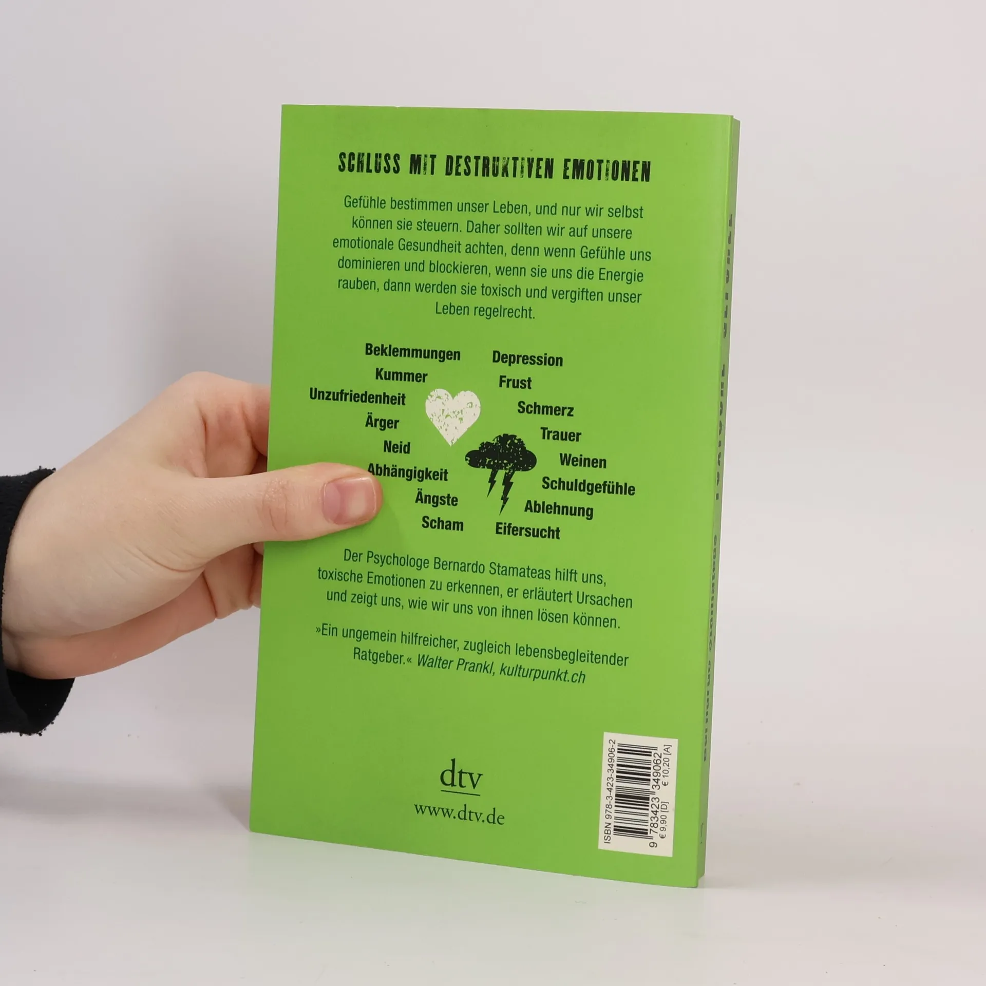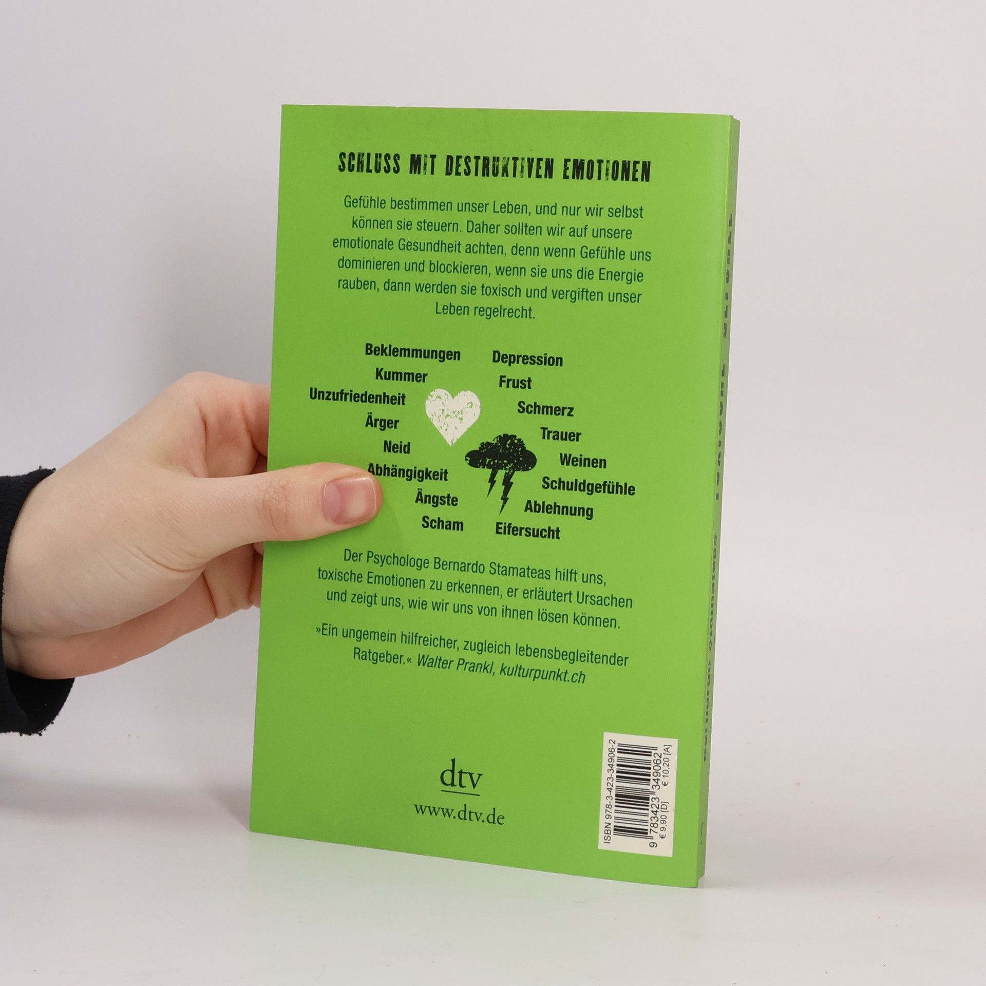 Schluss mit Frust Wenn Gefühle uns dominieren und blockieren, wenn sie uns die Energie rauben, dann vergiften sie unser Leben regelrecht. Der Psychologe Bernardo Stamateas hilft uns, solch toxische Emotionen zu erkennen und sie richtig einzuordnen. Es geht um Formen der Angst, chronische Unzufriedenheit, Co-Abhängigkeit, Ärger, Neid, Unsicherheit, depressive Verstimmungen, Frustration, Schmerz, Trauer und Schuldgefühle. Stamateas erläutert mögliche Ursachen und bietet Techniken und Strategien, wie man die destruktiven Emotionen überwinden kann, um ausgeglichener zu werden und freier zu leben.