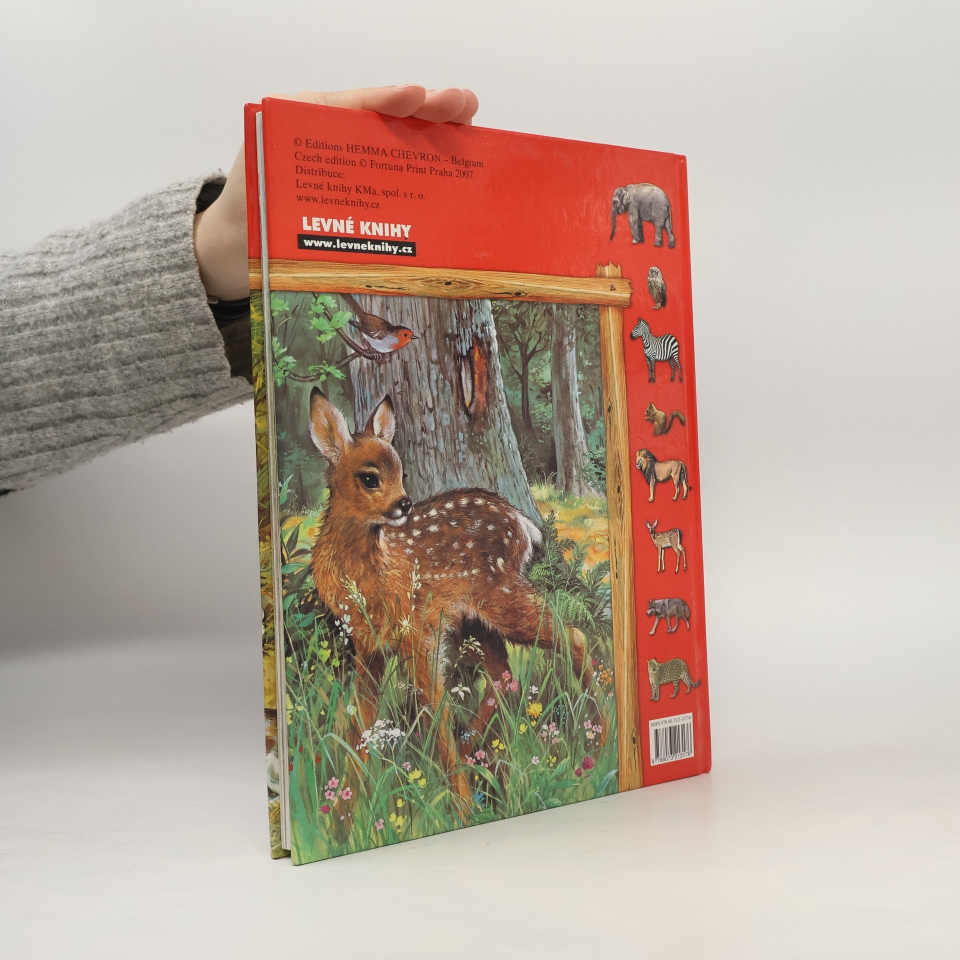 Krátké texty a veliké realistické ilustrace představí dětem zvířata: na statku, na venkově, lesní, africká, v horách, u vody a v lese. Převzato z vydání Emma Chevron Belgium.