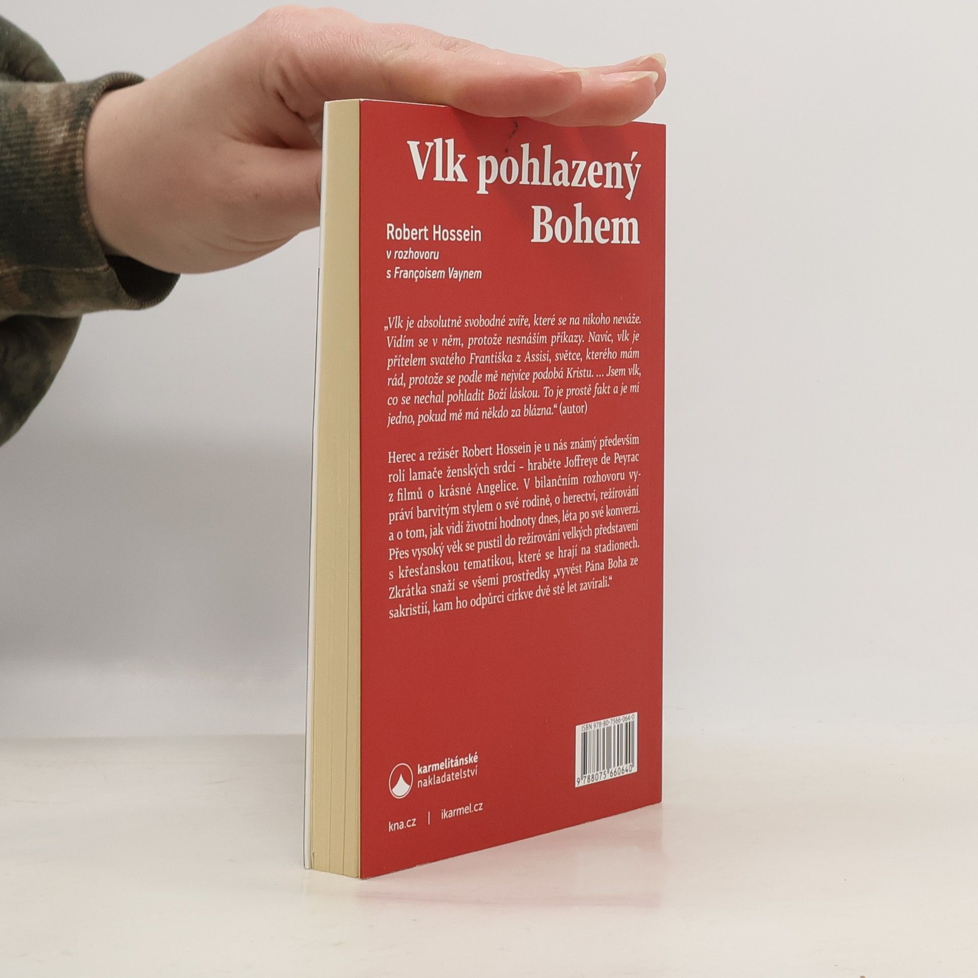 „Vlk je absolutně svobodné zvíře, které se na nikoho neváže. Vidím se v něm, protože nesnáším příkazy. Navíc, vlk je přítelem svatého Františka z Assisi, světce, kterého mám rád, protože se podle mě nejvíce podobá Kristu. …Jsem vlk, co se nechal pohladit Boží láskou. To je prostě fakt a je mi jedno, pokud mě má někdo za blázna.“ (autor) Herec a režisér Robert Hossein je u nás známý především rolí lamače ženských srdcí – hraběte Joffreye de Peyrac z filmů o krásné Angelice. V bilančním rozhovoru s Françoisem Vaynem vypráví barvitým stylem o své rodině, o herectví, režírování a o tom, jak vidí životní hodnoty dnes, léta po své konverzi. Přes vysoký věk se pustil do režírování velkých představení s křesťanskou tematikou, které se hrají na stadionech. Zkrátka snaží se všemi prostředky „vyvést Pána Boha ze sakristií, kam ho odpůrci církve dvě stě let zavírali.“