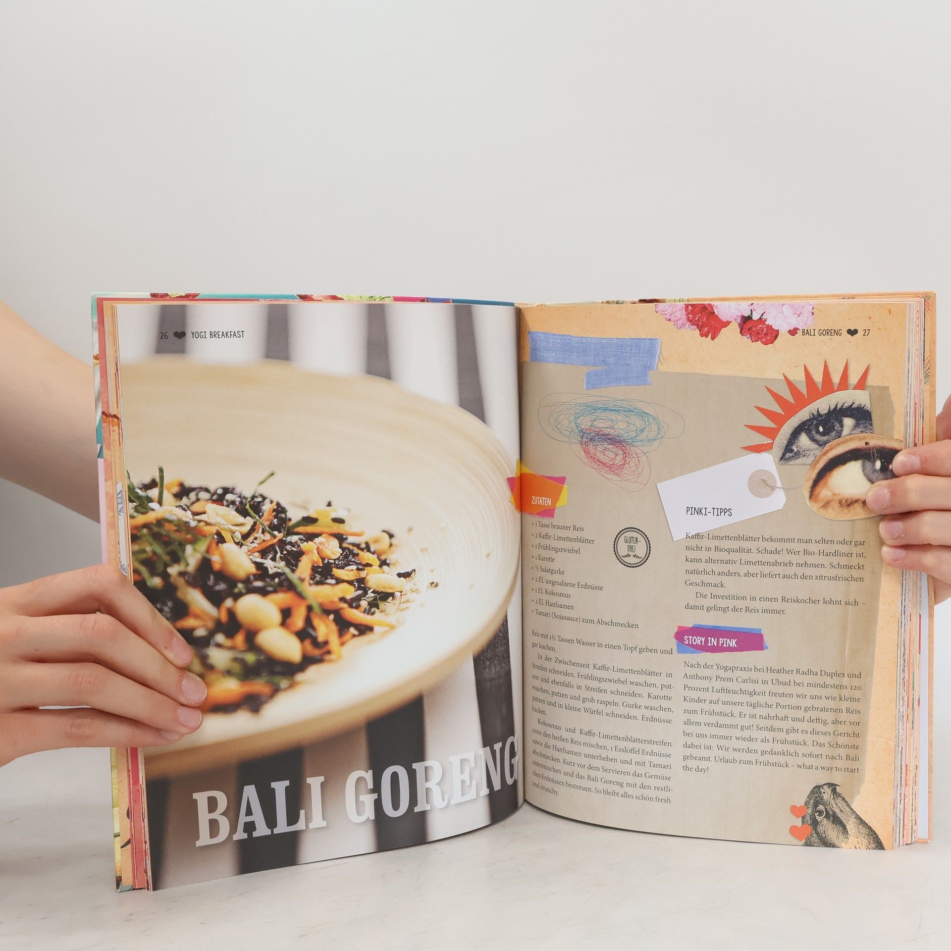 Mit Power durch den Tag Pink Elephant Cooking heißt Obst und Gemüse so zuzubereiten, dass es köstlich schmeckt und dem Körper Energie gibt. Die Rezepte von Pink Elephant sind: vegan, zuckerfrei, sojafrei, rohkostreich, Superfood-gespickt und Freestyle. Flippo und Heather, selbst Yoga-Trainer, führen mit ihren Gerichten durch den Yogi-Alltag: von Kitchen-Must-Haves wie Liebe, Öle, Gewürze, Kräuter, Pestos, Saucen und einer guten Vorratskammer zum Yogi-Breakfast aus Shakes, Fruit Smoothies und Green Smoothies bis hin zu Live Food und Raw Food. Leckere Gerichte für die Off Days sind genauso mit dabei wie göttlich Süßes und Menüs für Freunde. Fotografiert werden die Koch- und Yogasessions von Mike Meyer, einem bekannte Fotograf aus Berlin.