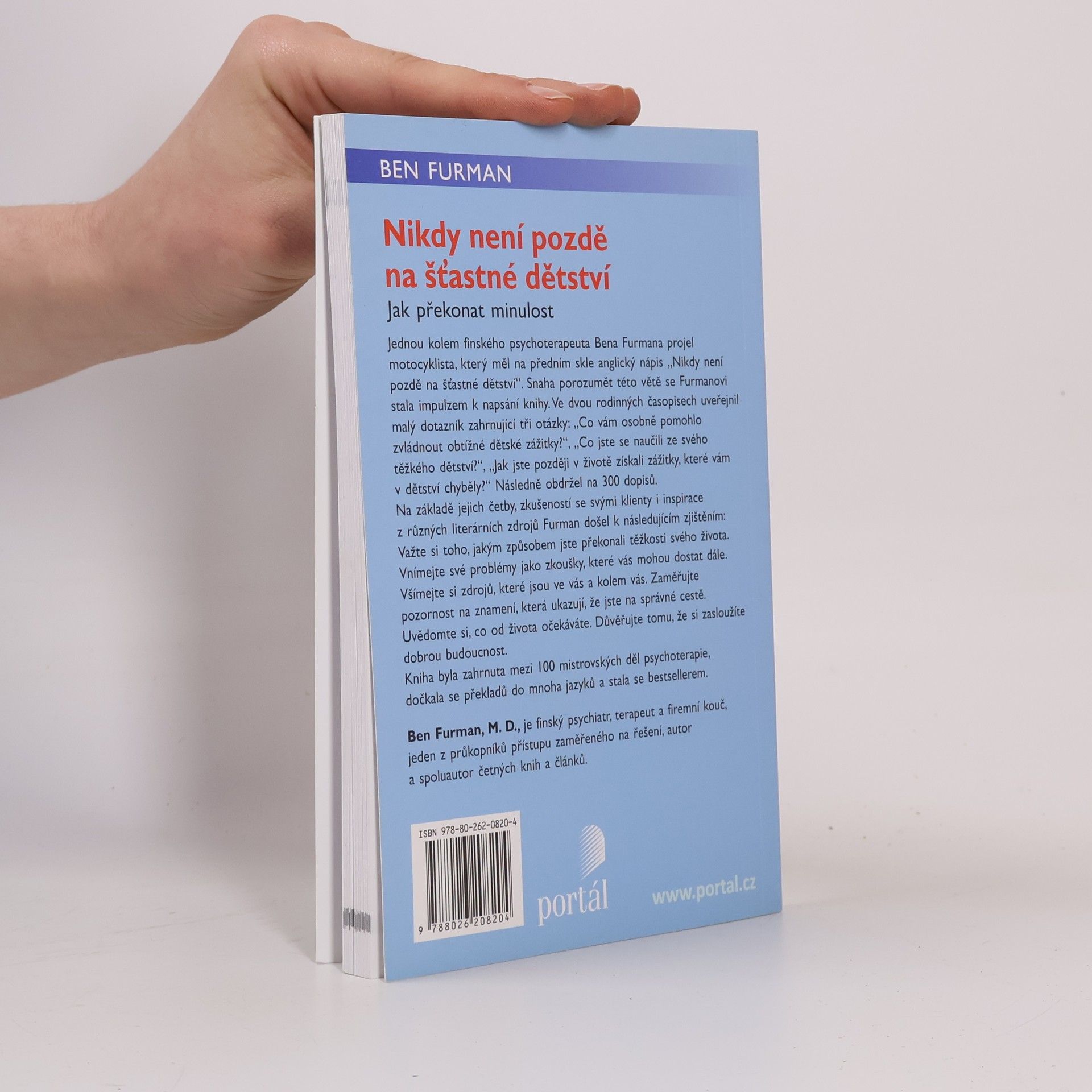 Jednou kolem finského psychoterapeuta Bena Furmana projel motocyklista, který měl na předním skle anglický nápis „Nikdy není pozdě na šťastné dětství“. Snaha této větě porozumět se Furmanovi stala impulzem k napsání knihy. Ve dvou rodinných časopisech uveřejnil malý dotazník zahrnující tři otázky: „Co vám osobně pomohlo zvládnout obtížné dětské zážitky?“, „Co jste se naučili ze svého těžkého dětství?“, „Jak jste později v životě získali zážitky, které vám v dětství chyběly?“ Následně obdržel na 300 dopisů. Na základě jejich četby a zkušeností se svými klienty i z různých literárních zdrojů Furman došel k následujícím zjištěním: Važte si toho, jakým způsobem jste překonali těžkosti svého života. Vnímejte své problémy jako zkoušky, které vás mohou dostat dále. Všímejte si zdrojů, které jsou ve vás a kolem vás. Zaměřujte pozornost na znamení, která ukazují, že jste na správné cestě. Uvědomte si, co od života očekáváte. Důvěřujte, že si zasloužíte dobrou budoucnost.